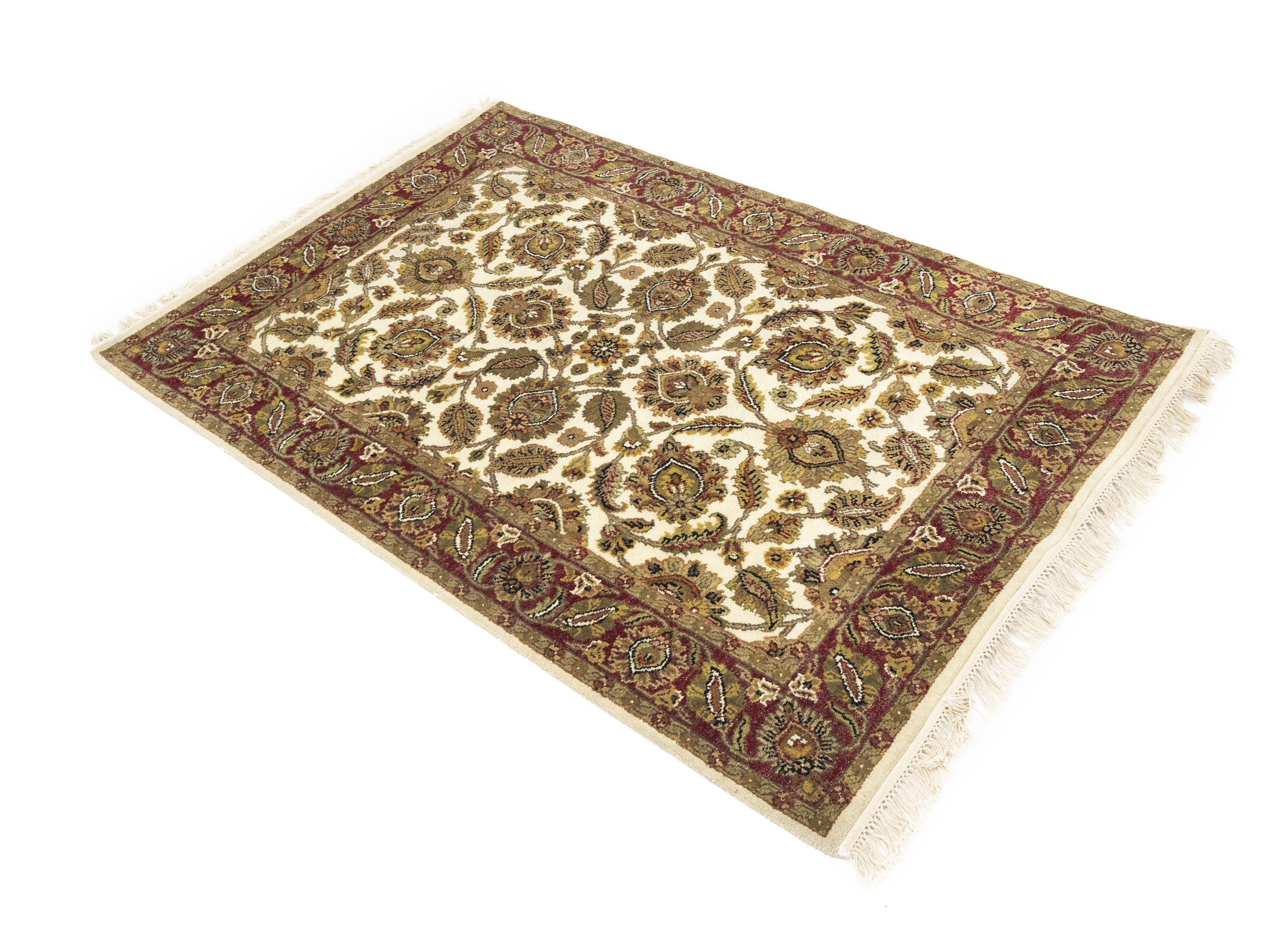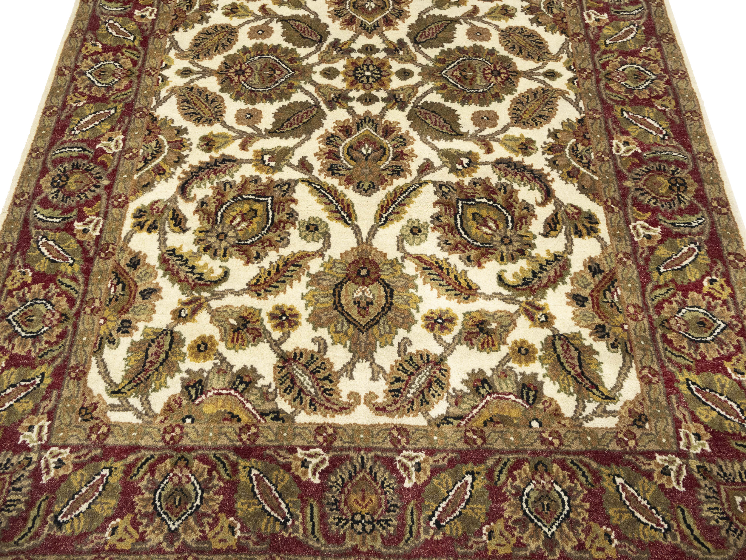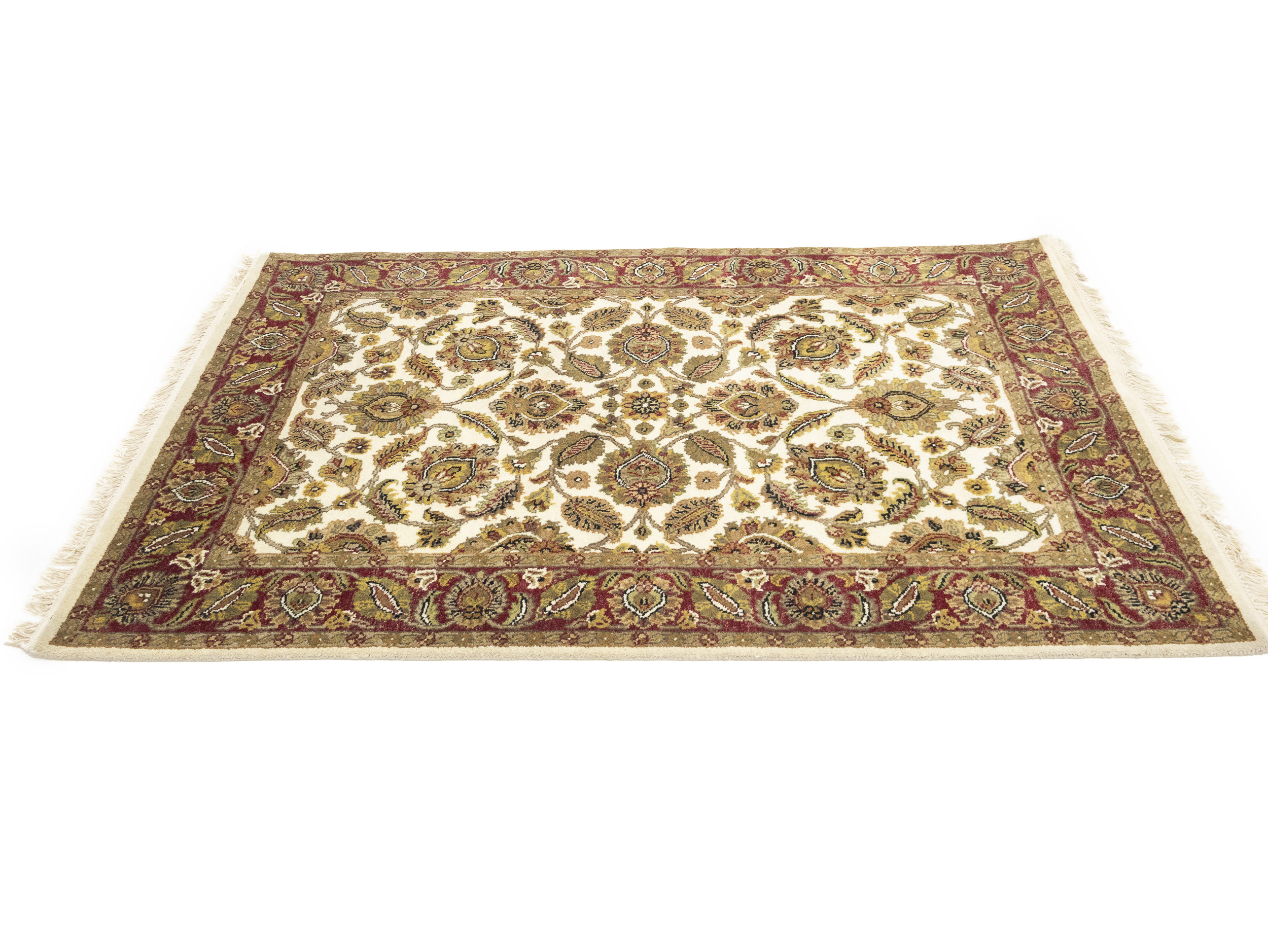 Handmade 4'5X6'2 Cream oriental rug made with vegetable dyes (fine wool pile and cotton foundation), exceptional knot count, and appealing ancient designs. This Oriental rug never will go out of style and would be among your most valuable treasures.