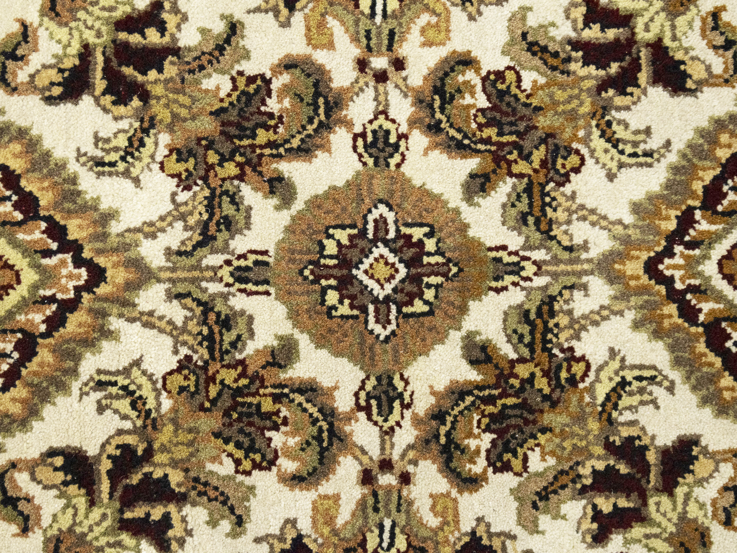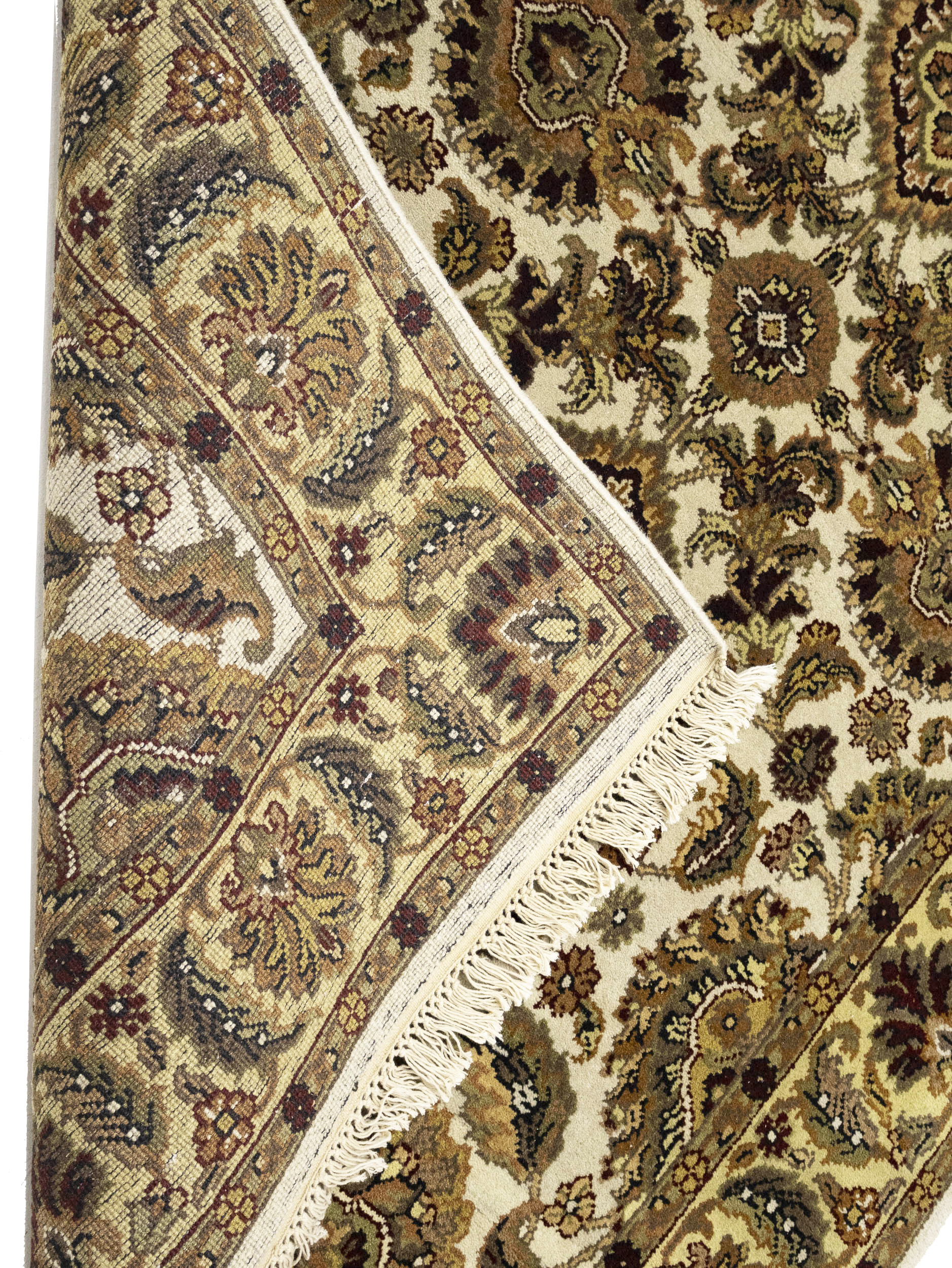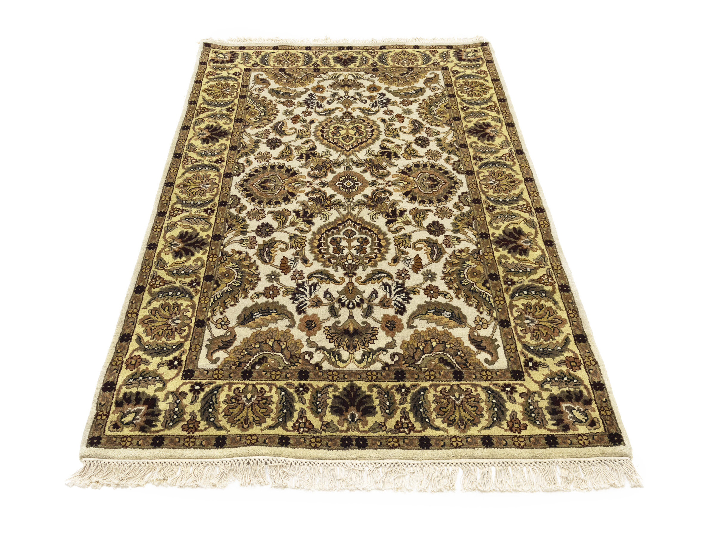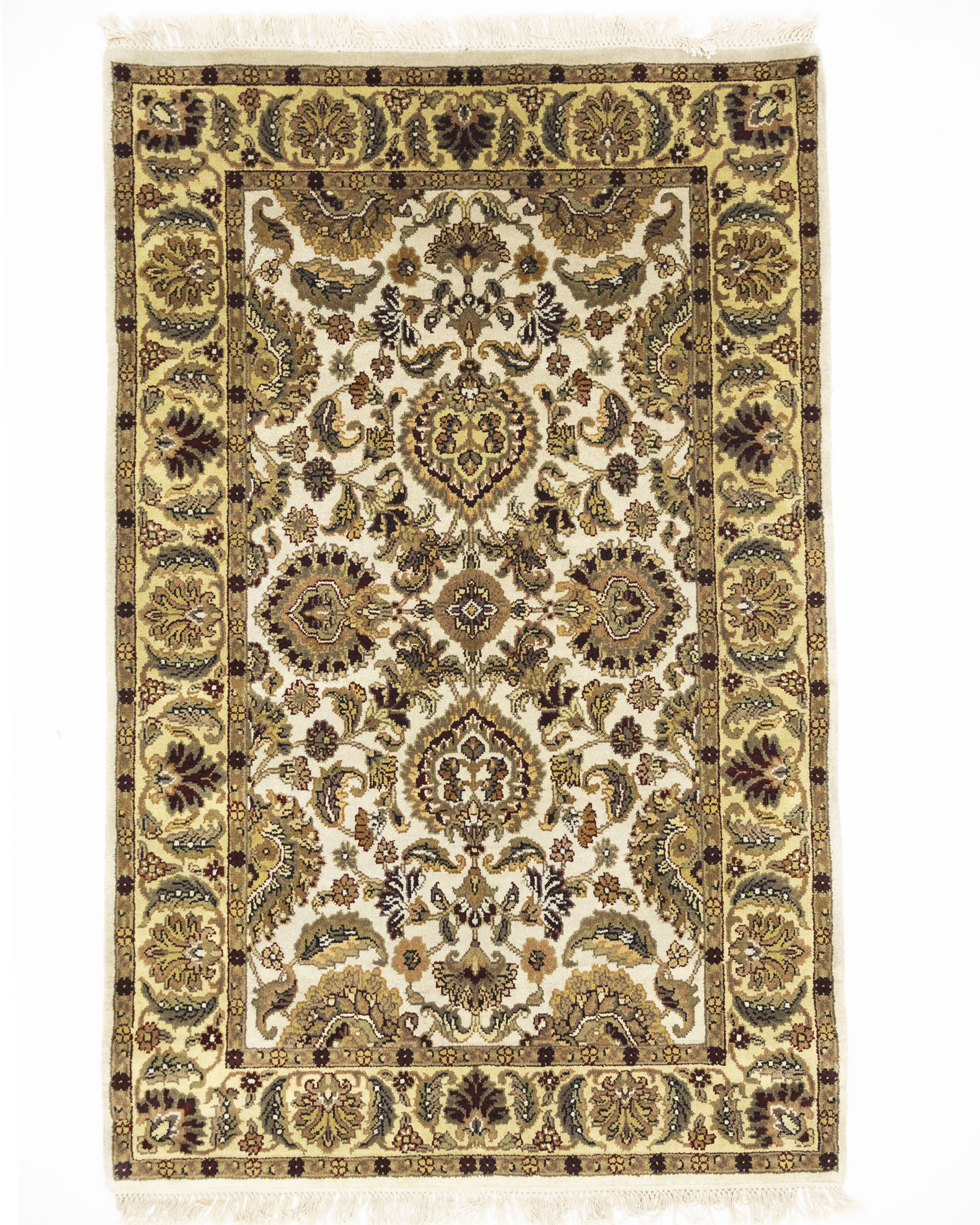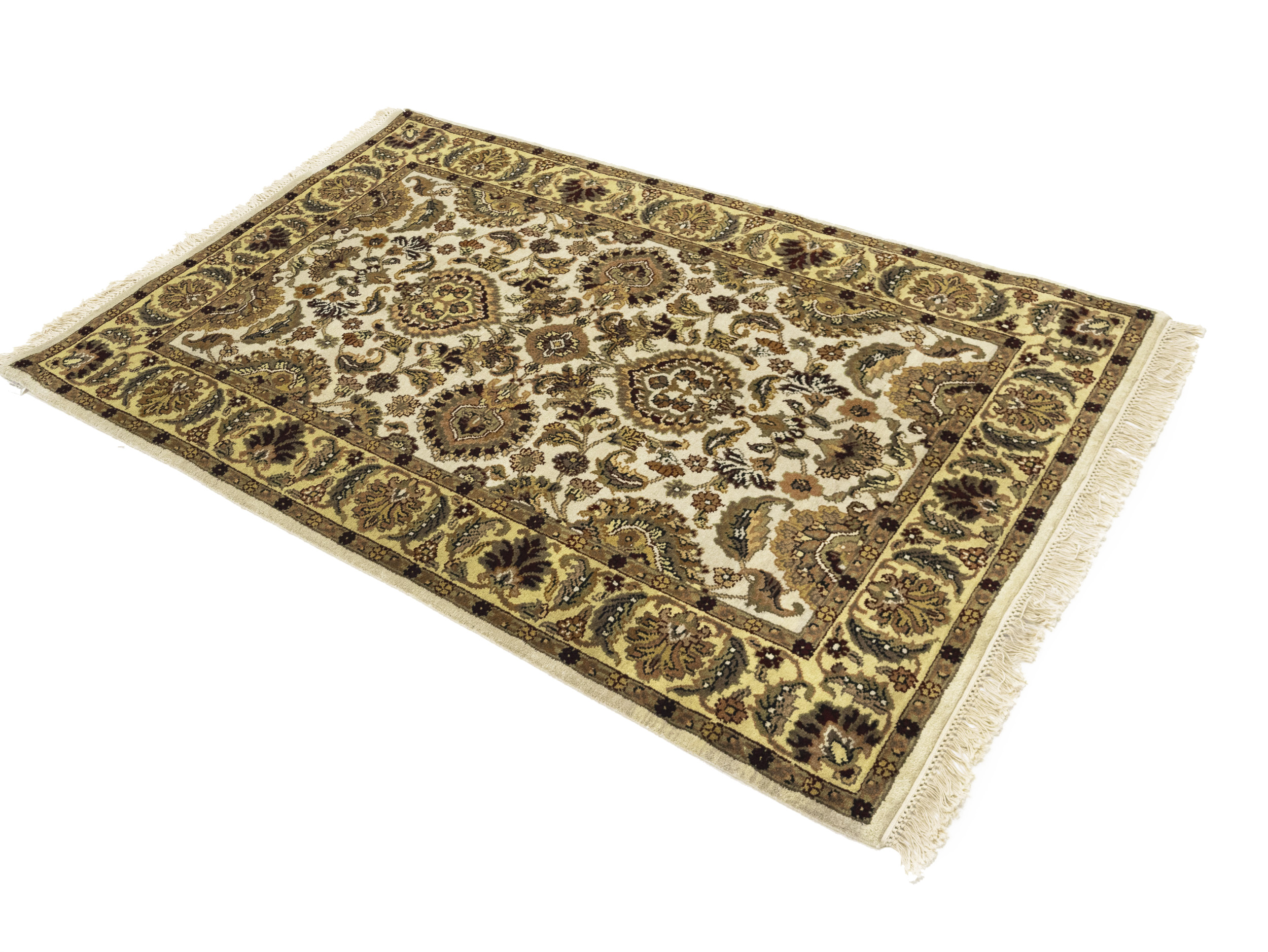 Handmade 4X6 cream oriental rug made with vegetable dyes (fine wool pile and cotton foundation), exceptional knot count, and appealing ancient designs. This Oriental rug never will go out of style and would be among your most valuable treasures.