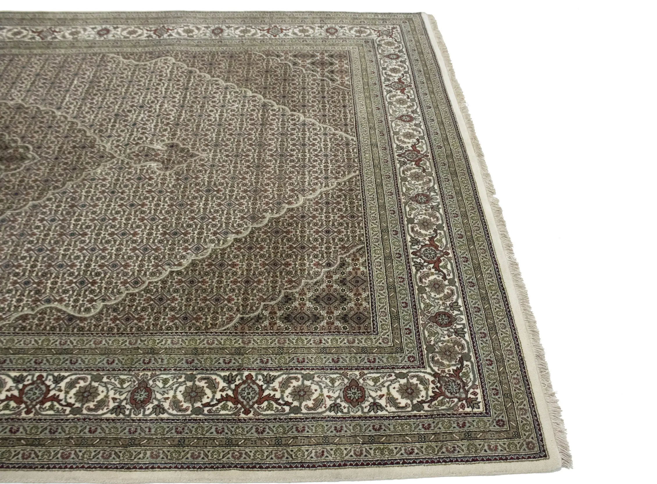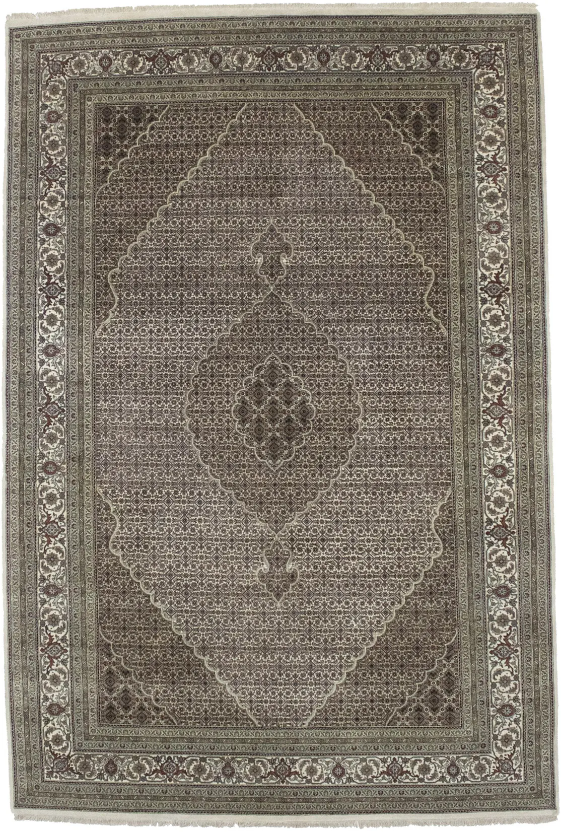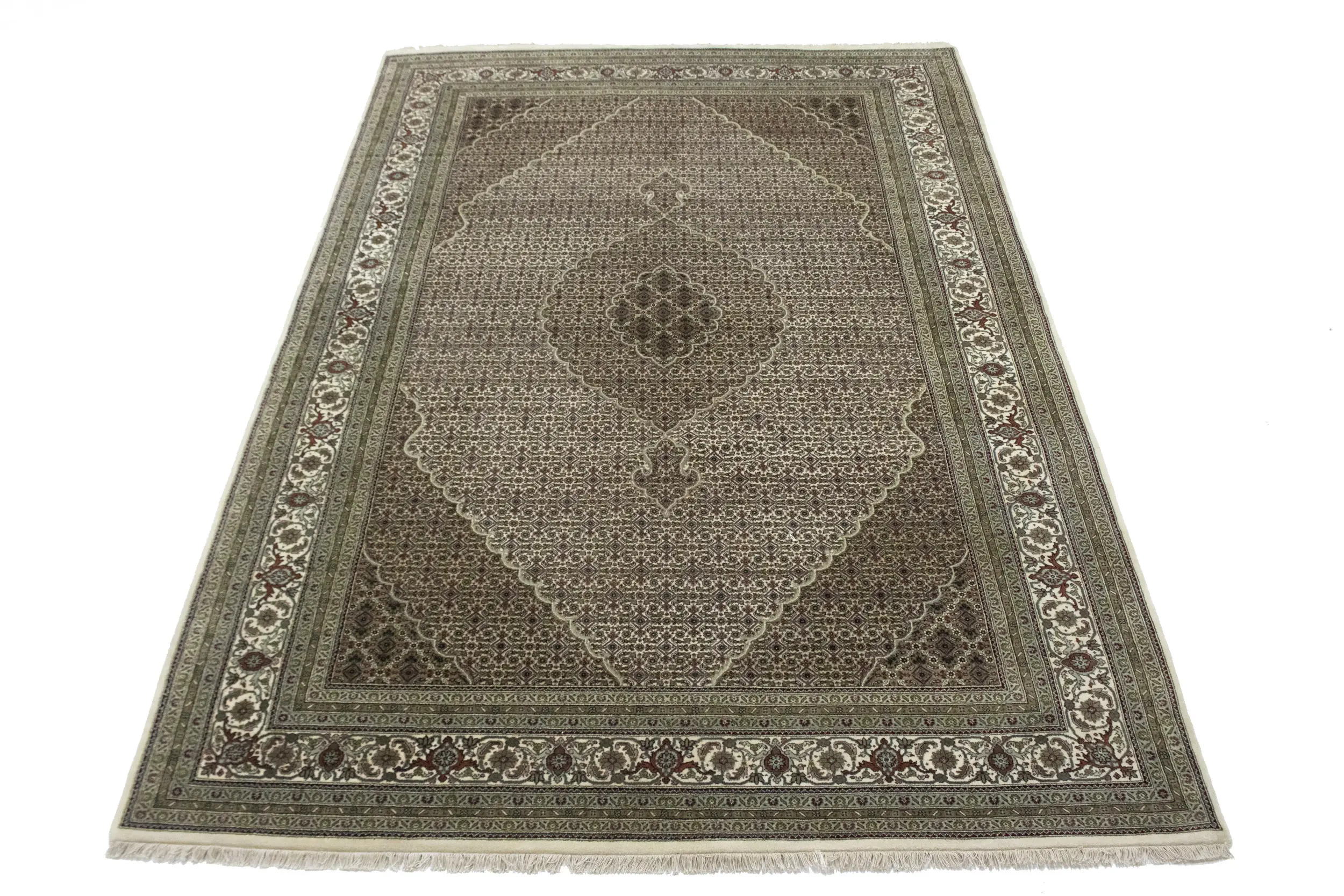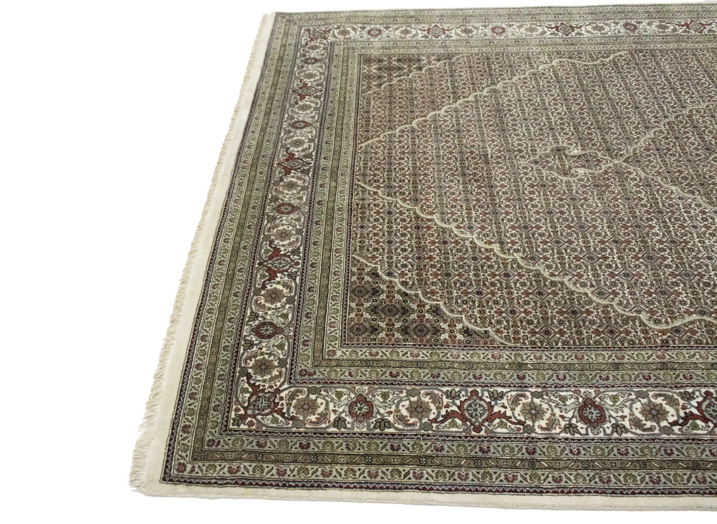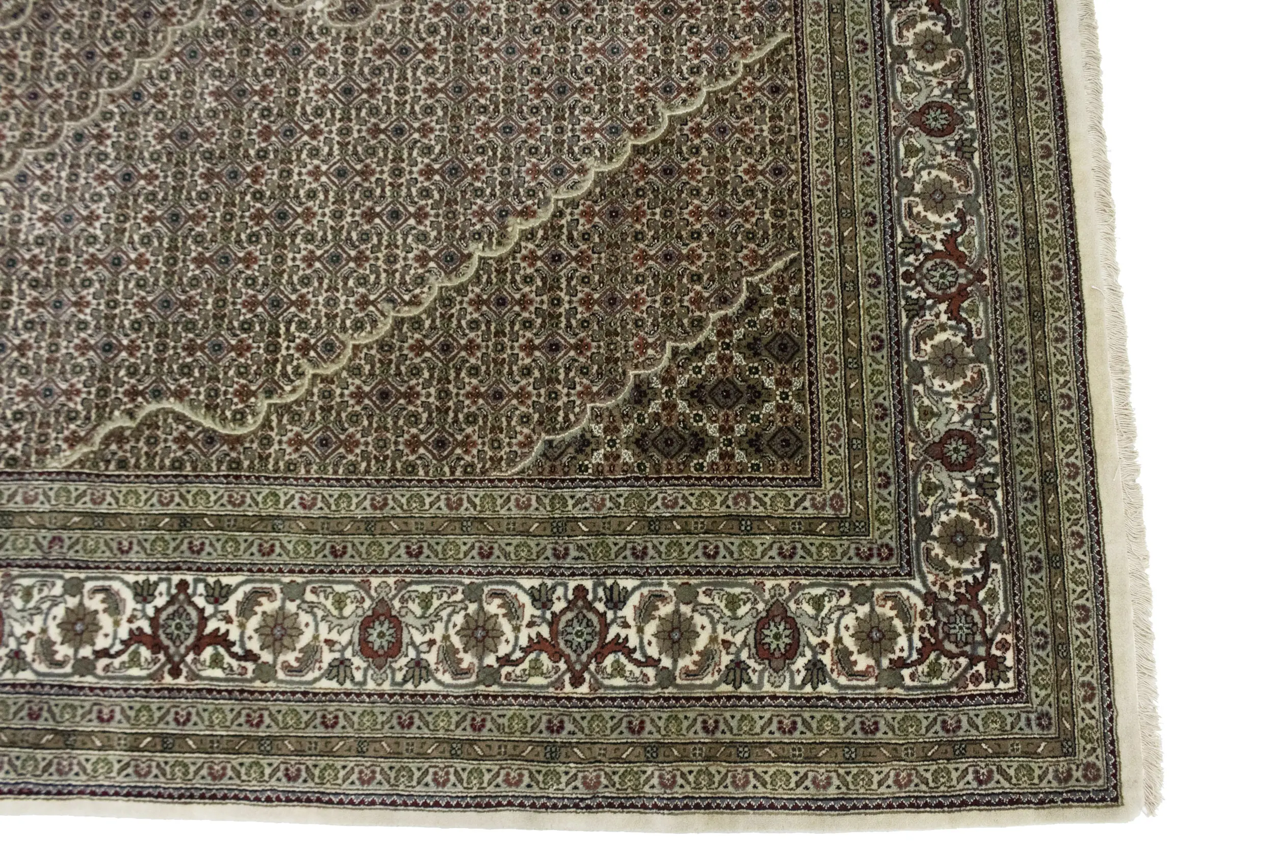 Cream Floral Geometric 7X10 Indo-Tabriz Fish Mahi Oriental Rug
