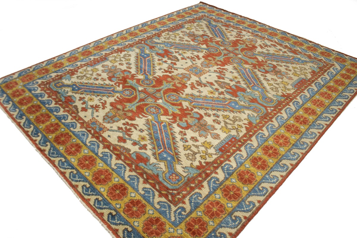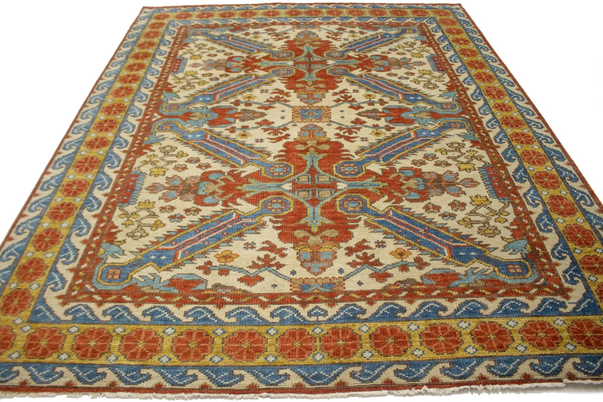 This original 8X10 cream new Oriental rug was made by the hands of talented weavers influenced by a variety of gorgeous symmetrical artistic designs, to recreate the aged look of the unique piece with a richness of color and very balanced background field. What set this vintage style Oriental area rug from the others are the material and dye used (wool pile and cotton foundation), knot count, antique designs, fantastic grades, and its regional historical connection: it has deep roots, from the story of the people who produced it to the meaning of the symbols and colors displayed across its canvas that have been praised for centuries. This Indian home décor carpet will be completely cozy and inviting that never will go out of style! Also, this Oriental rug would be among your most valuable treasures, it is a great investment that accrues value over time, and it will last a lifetime because was woven with high-quality, all-natural wool. Eco-friendly, opulent yet affordable; this rug will give you an extra pop of character to help define your home environment with sophistication and warmth that will capture the eyes and attention of your audience (homeowners, designers, decorators, family and friends). OT-3761