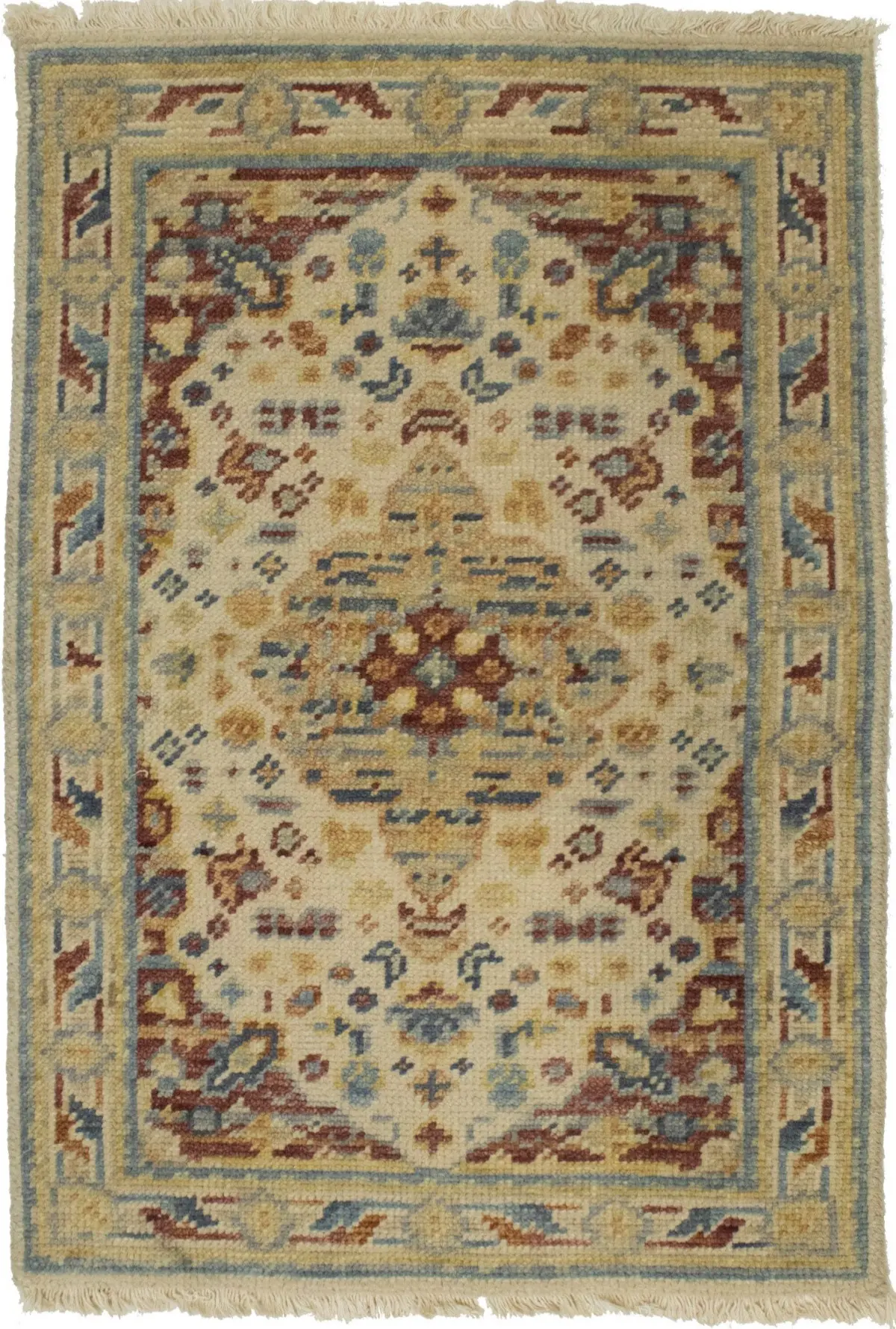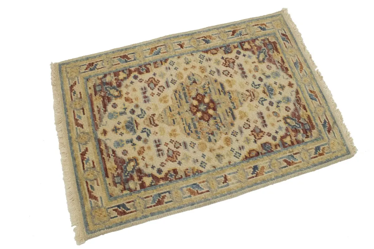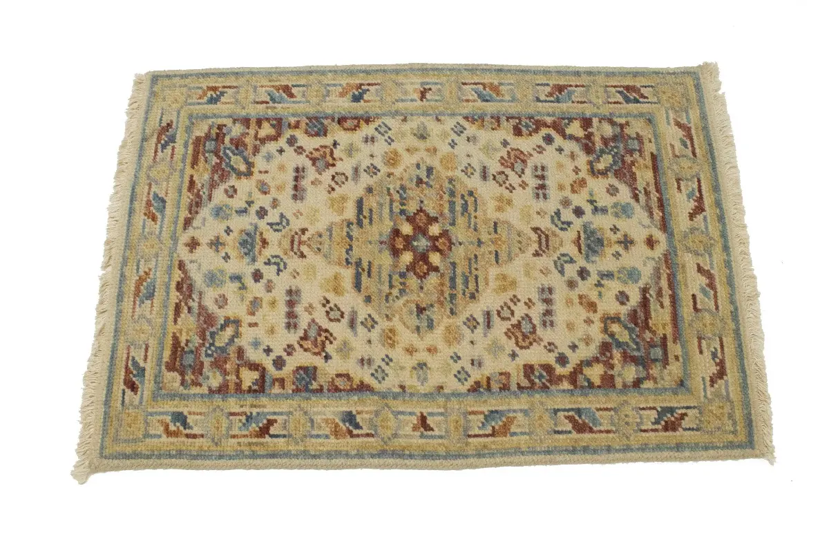 Handmade 2X3 cream Oriental rug made with natural dyes (fine wool pile and cotton foundation), superior knot count, and appealing ancient designs. This Oriental rug never will go out of style and would be among your most valuable treasures.