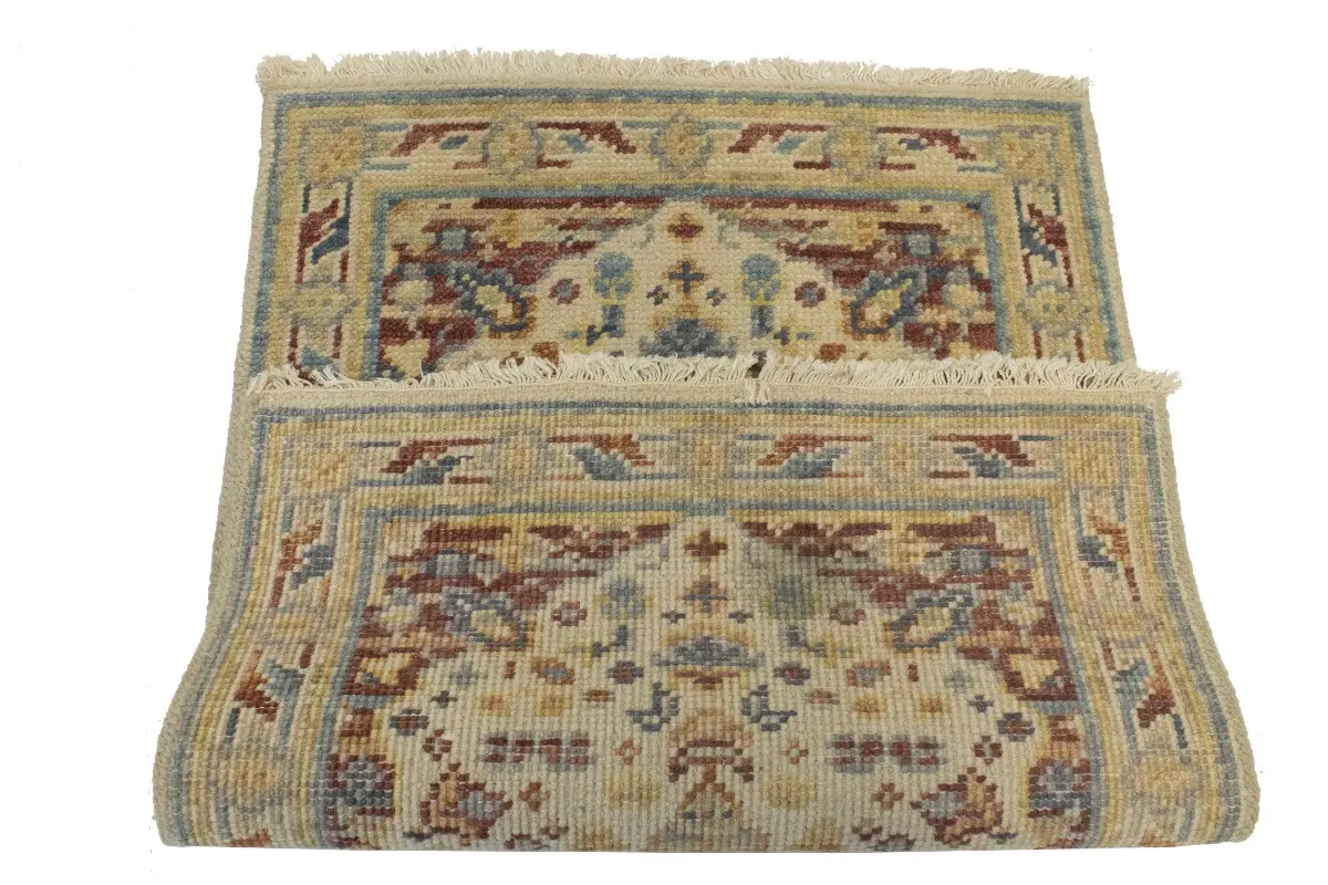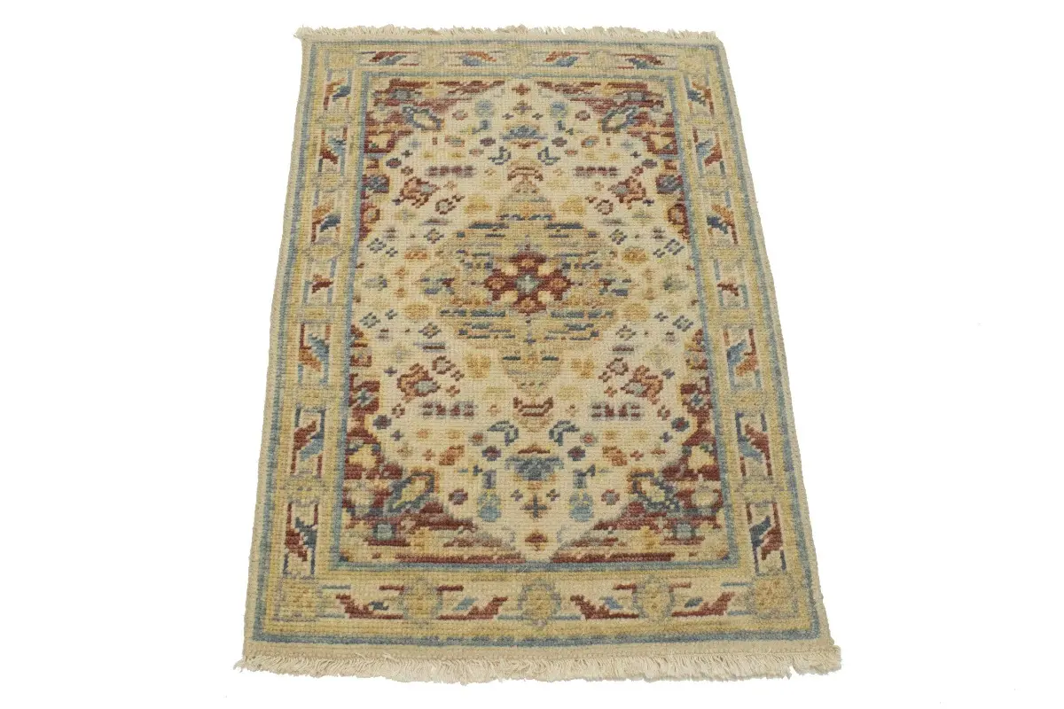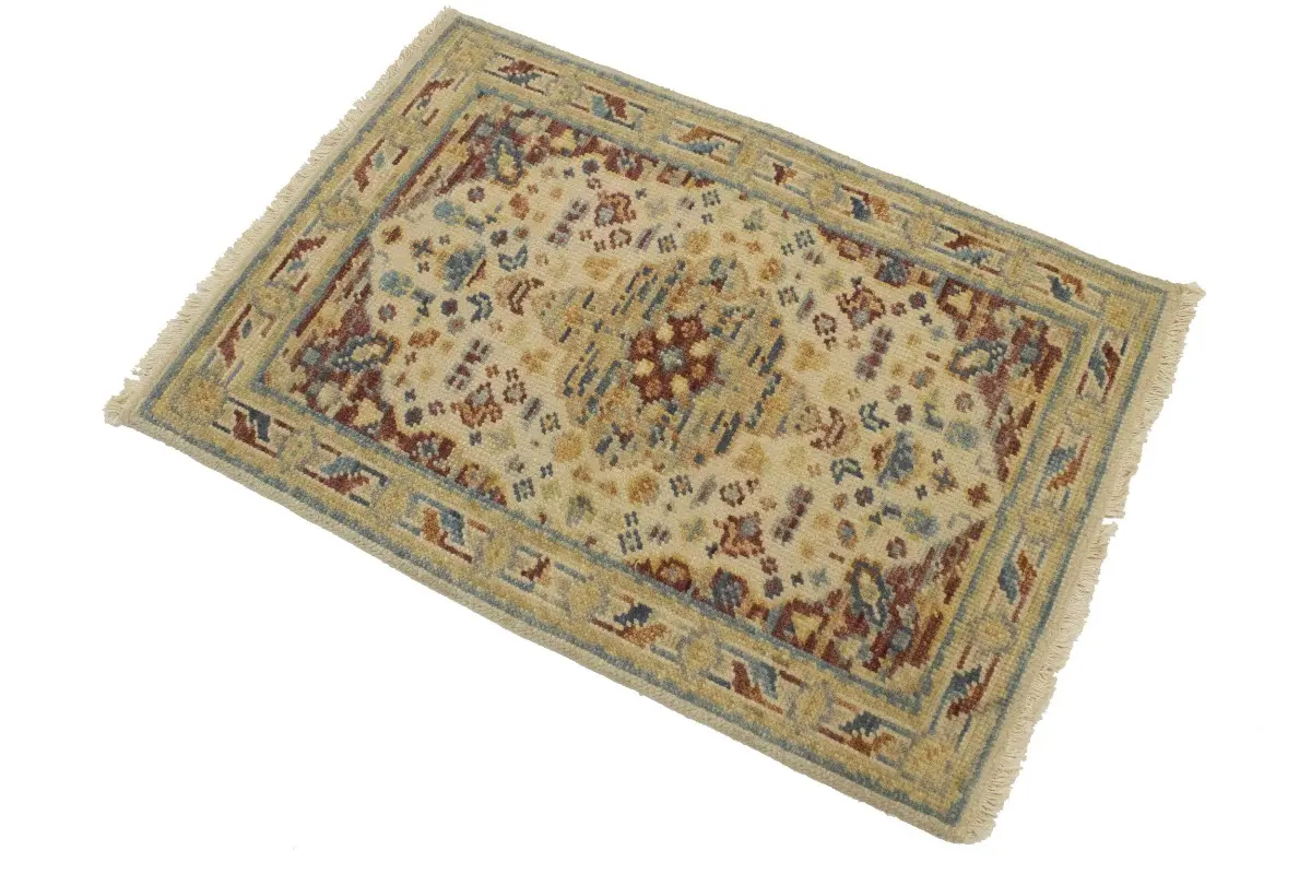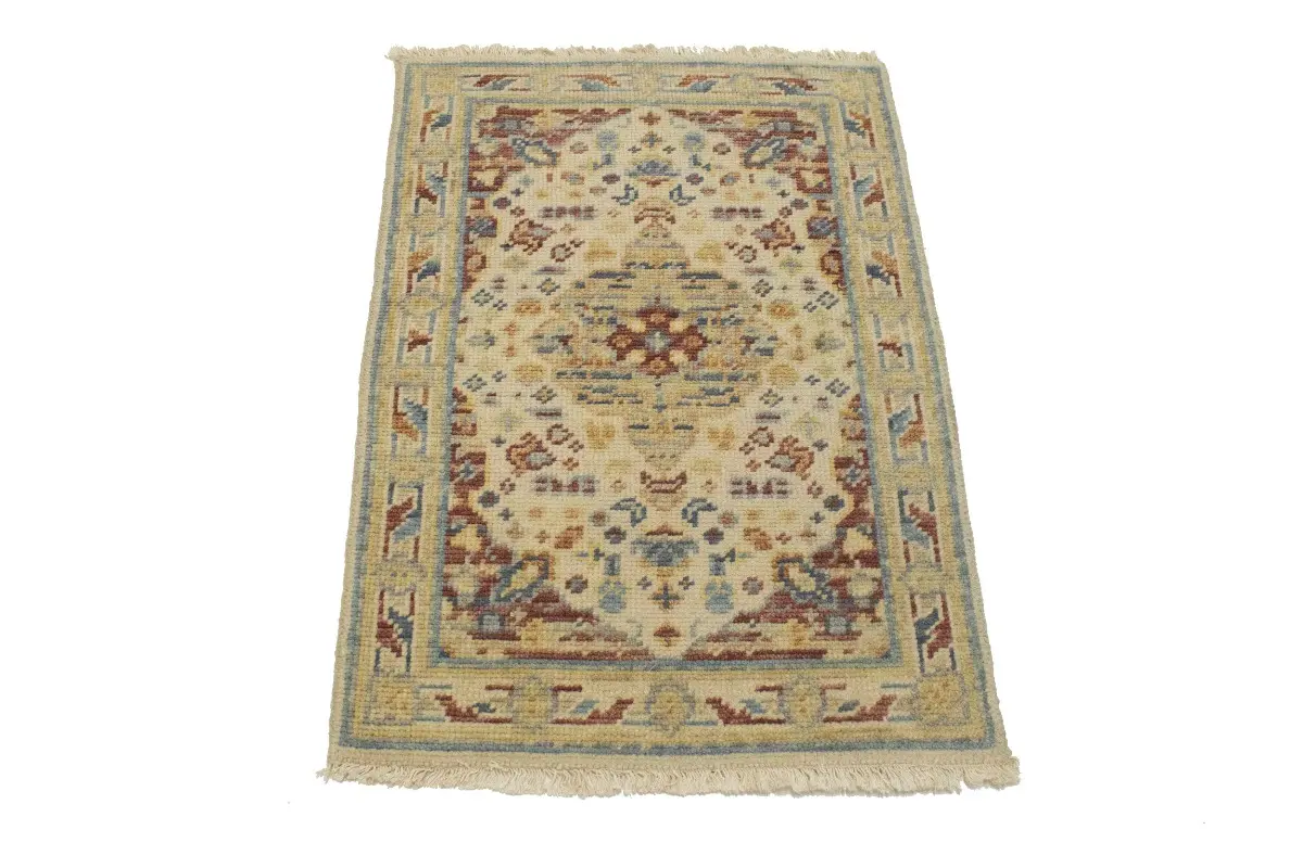 This original 2X3 cream new Oriental rug was made by the hands of talented weavers influenced by a variety of gorgeous symmetrical artistic designs, to recreate the aged look of the unique piece with a richness of color and very balanced background field. What set this vintage style Oriental area rug from the others are the material and dye used (wool pile and cotton foundation), knot count, antique designs, fantastic grades, and its regional historical connection: it has deep roots, from the story of the people who produced it to the meaning of the symbols and colors displayed across its canvas that have been praised for centuries. This Indian home décor carpet will be completely cozy and inviting that never will go out of style! Also, this Oriental rug would be among your most valuable treasures, it is a great investment that accrues value over time, and it will last a lifetime because was woven with high-quality, all-natural wool. Eco-friendly, opulent yet affordable; this rug will give you an extra pop of character to help define your home environment with sophistication and warmth that will capture the eyes and attention of your audience (homeowners, designers, decorators, family and friends). OT-6729