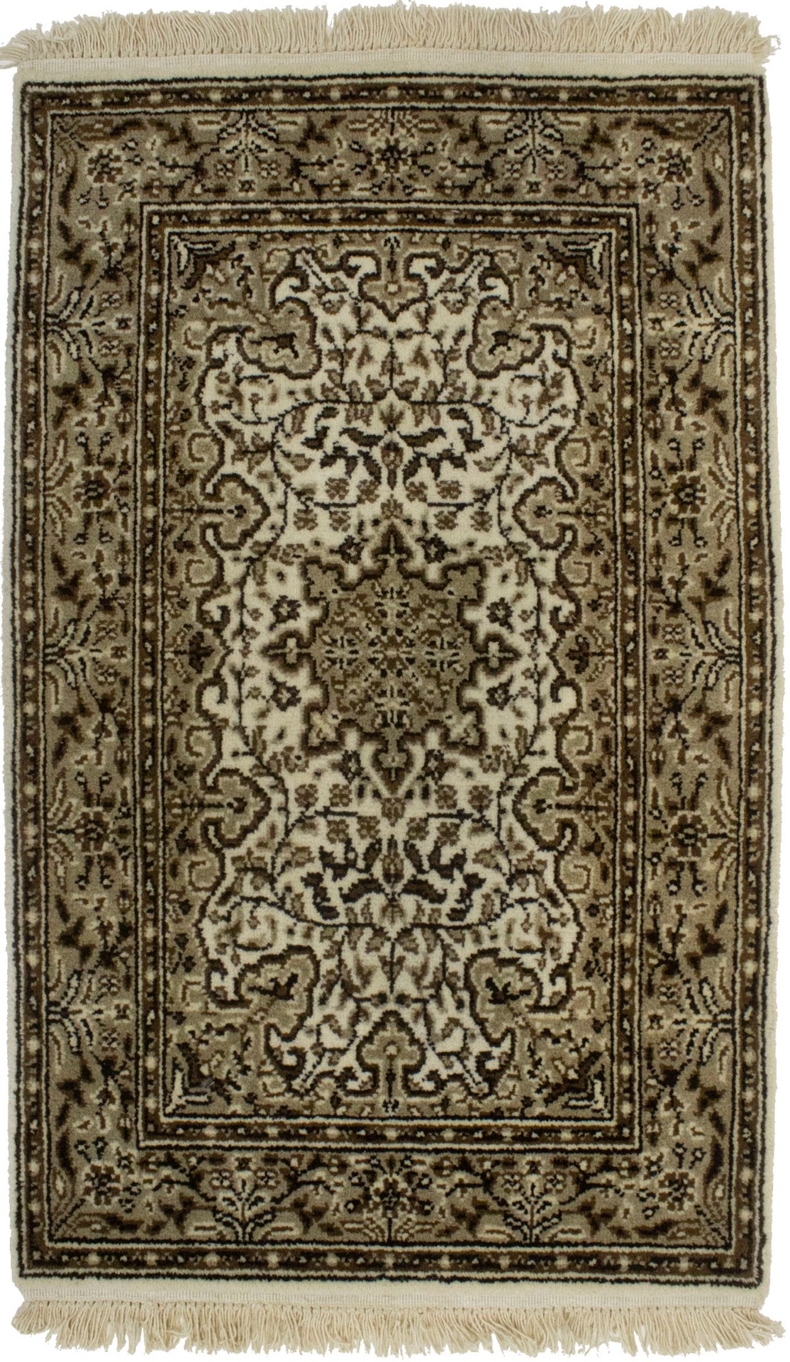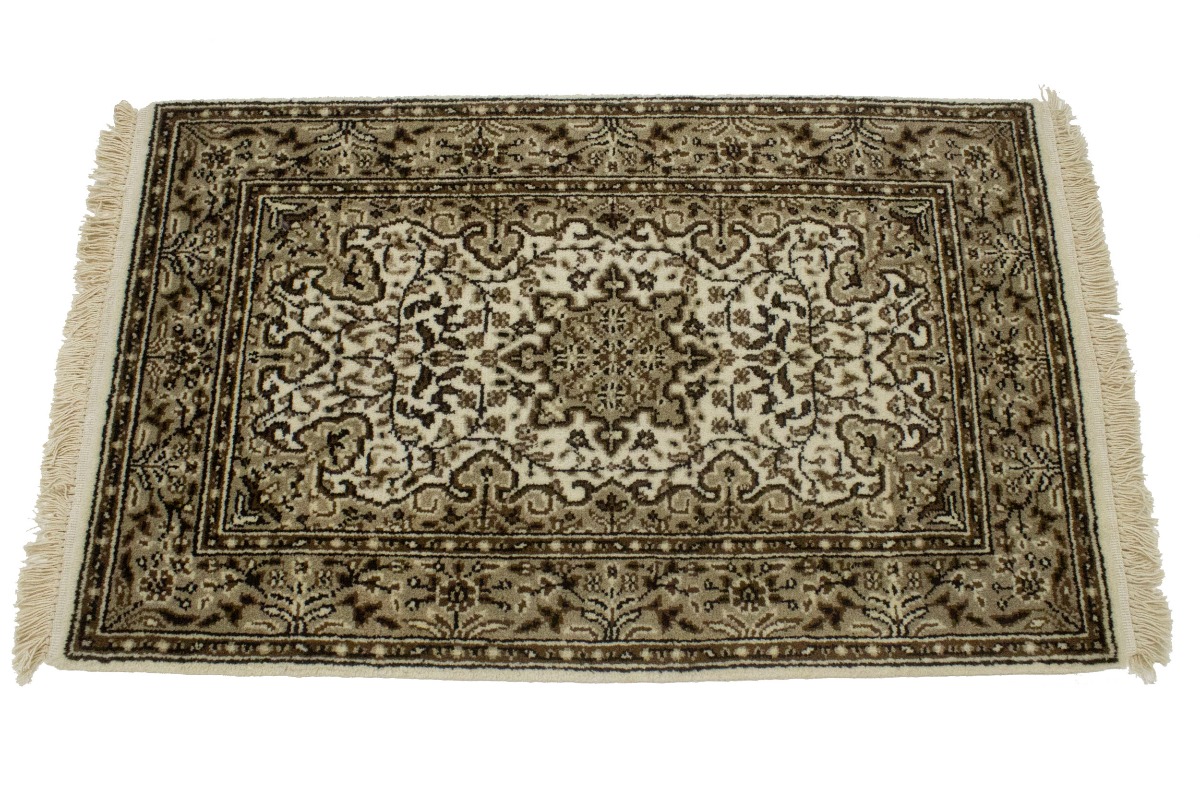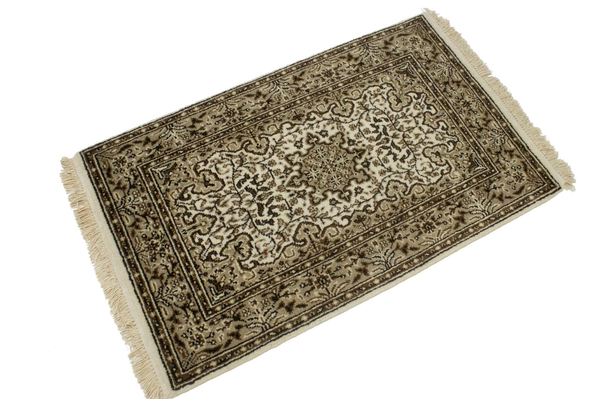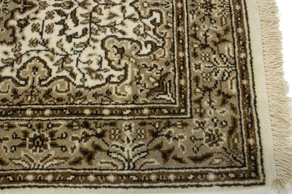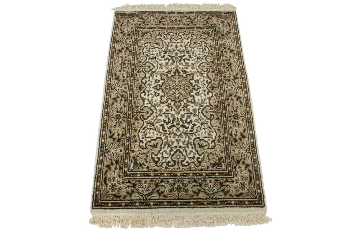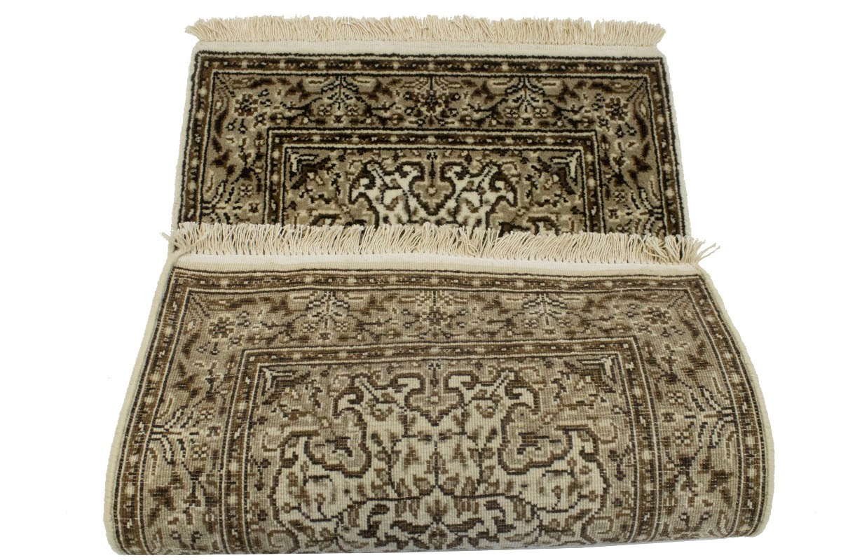 Hand Knotted 2X3 cream Oriental rug made with natural dyes (fine wool pile and cotton foundation), superior knot count, and appealing ancient designs. This Oriental rug never will go out of style and would be among your most valuable treasures.