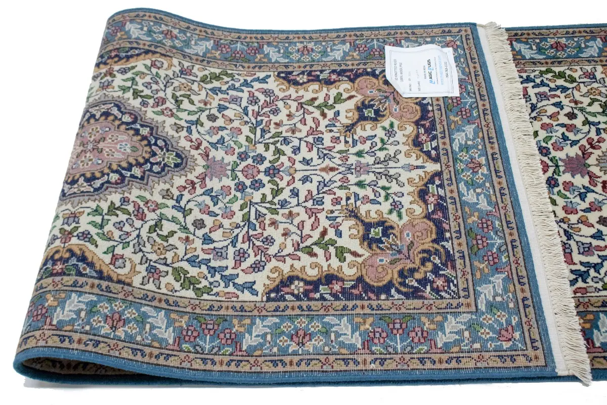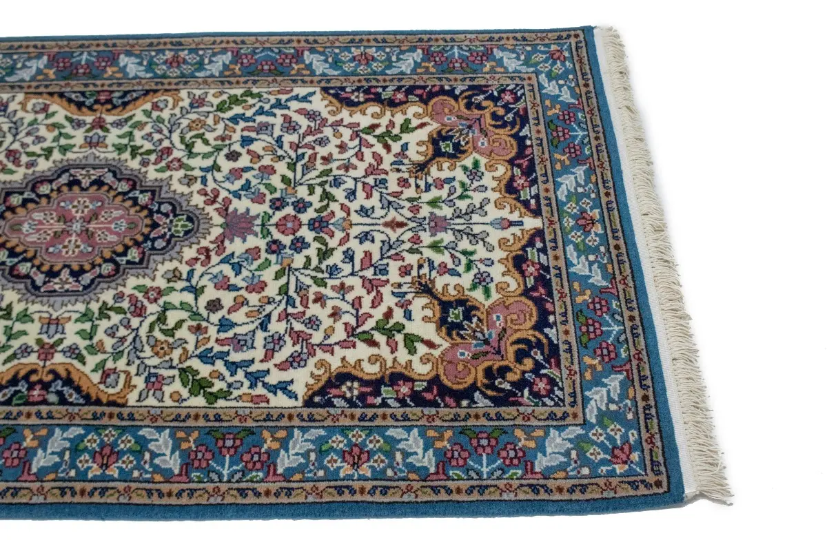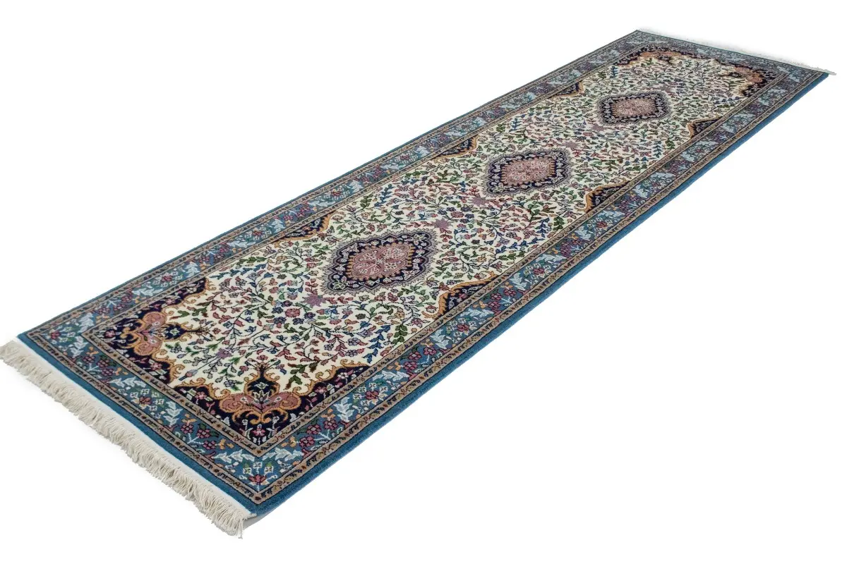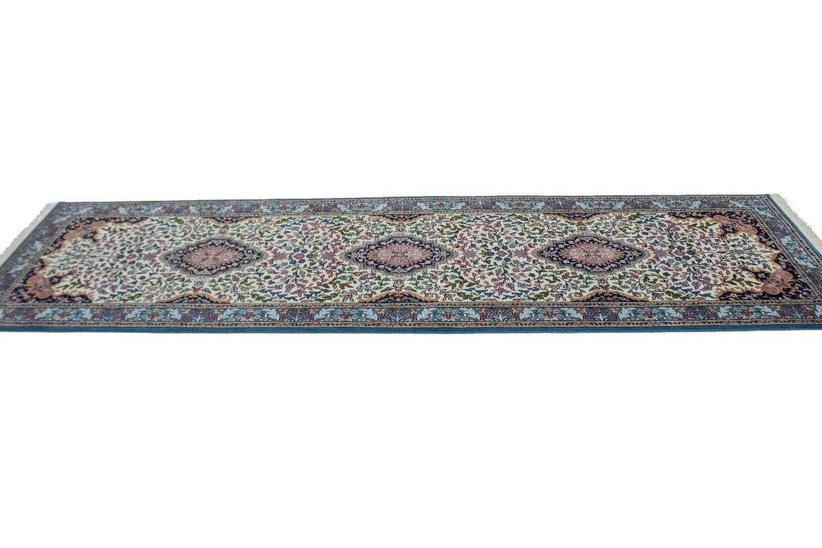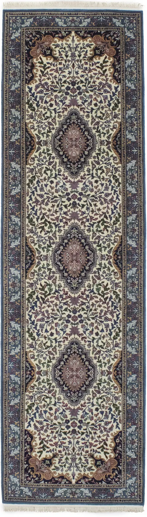 Hand Knotted 3X10 cream runner made with vegetable dyes (fine wool pile and cotton foundation), superior knot count, and appealing ancient designs. This Oriental runner never will go out of style and would be among your most valuable treasures.