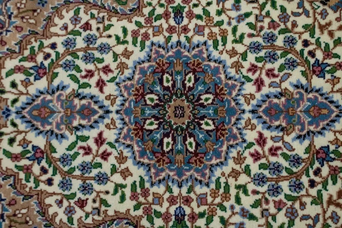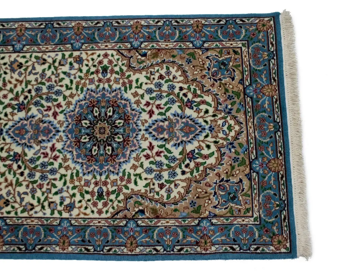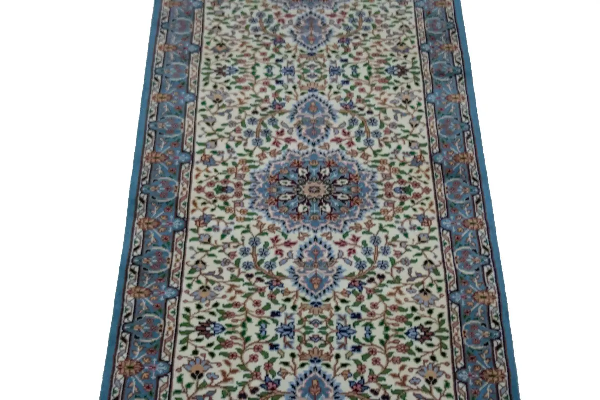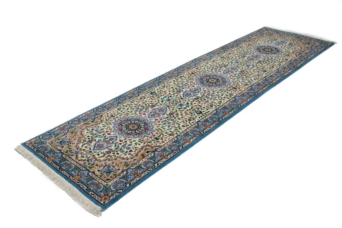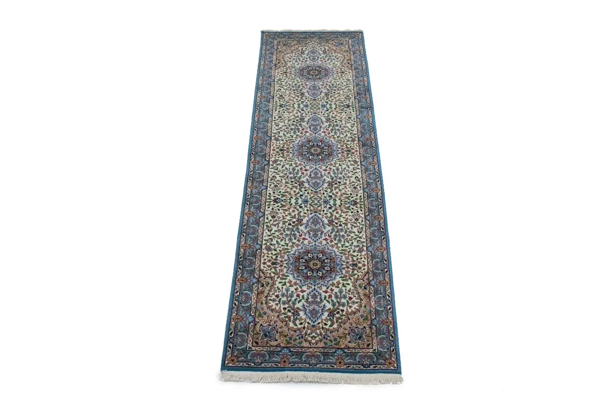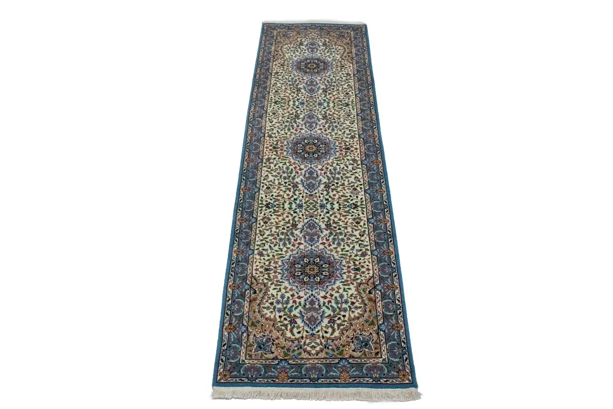 Handmade 3X10 cream oriental runner made with vegetable dyes (fine wool pile and cotton foundation), superior knot count, and appealing ancient designs. This Oriental runner never will go out of style and would be among your most valuable treasures.
