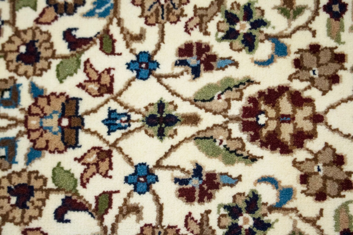 Hand Knotted 3X4 cream oriental rug made with natural dyes (fine wool pile and cotton foundation), superior knot count, and appealing ancient designs. This Oriental rug never will go out of style and would be among your most valuable treasures.