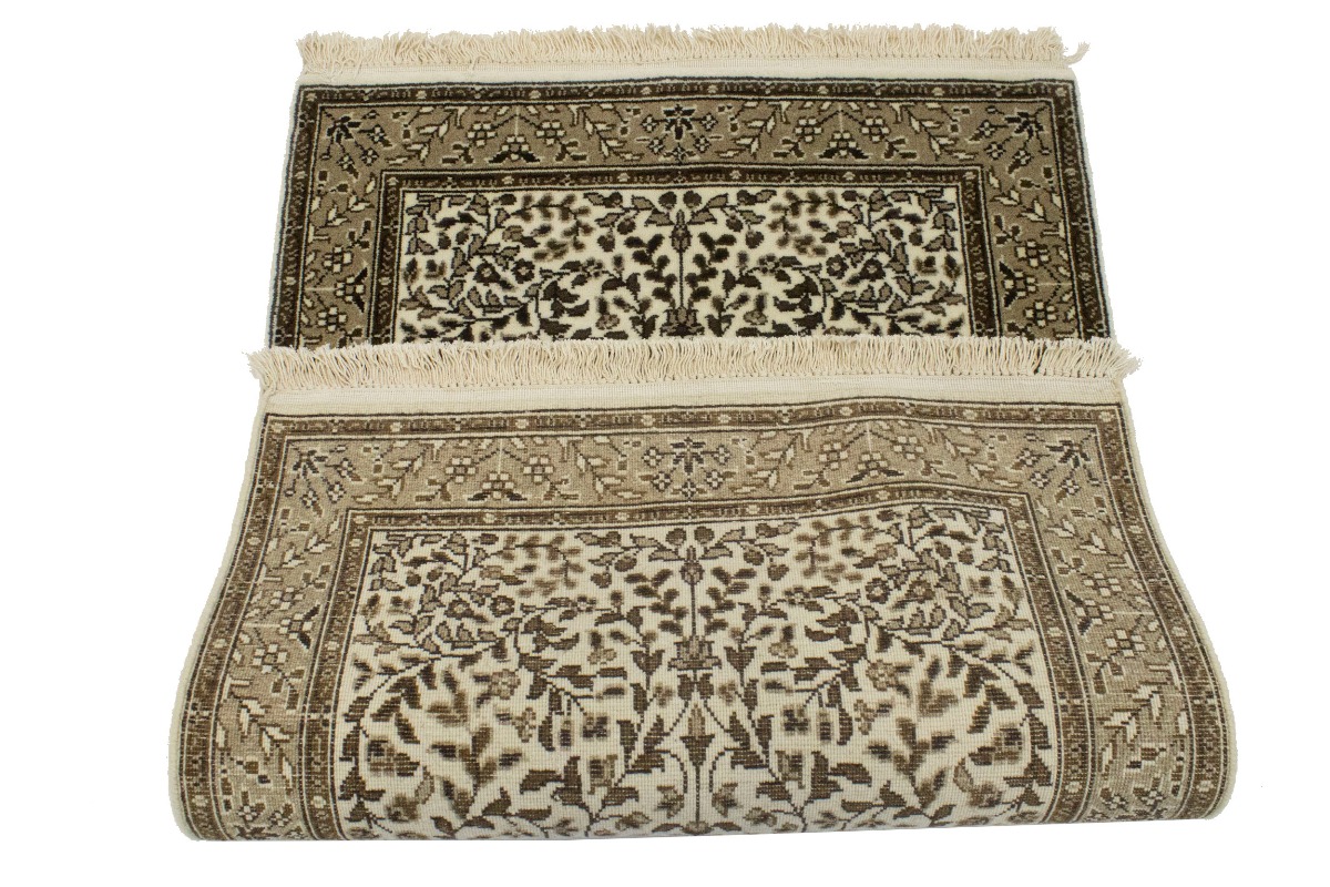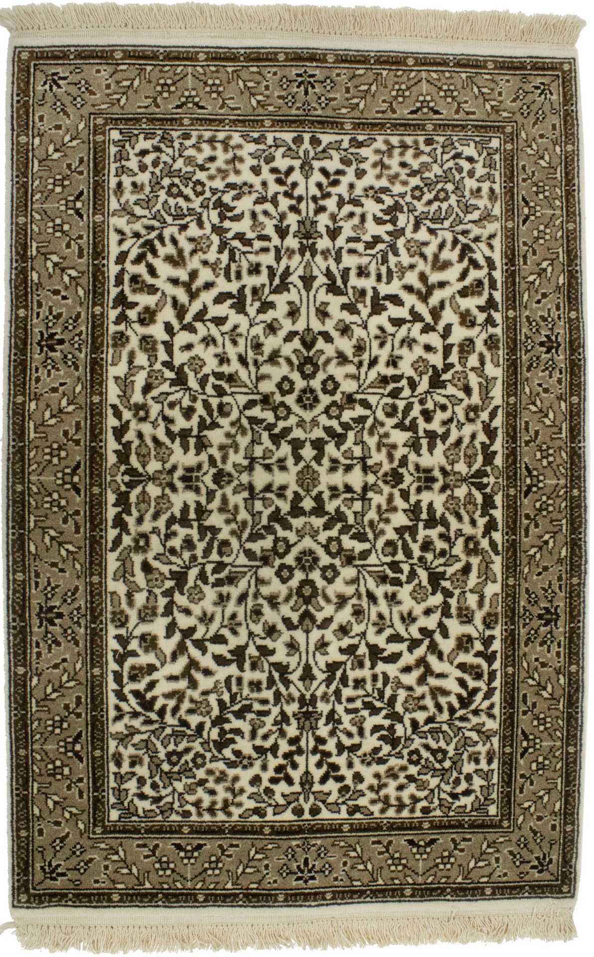 Handmade 3X4 cream Oriental rug made with natural dyes (fine wool pile and cotton foundation), superior knot count, and appealing ancient designs. This Oriental rug never will go out of style and would be among your most valuable treasures.