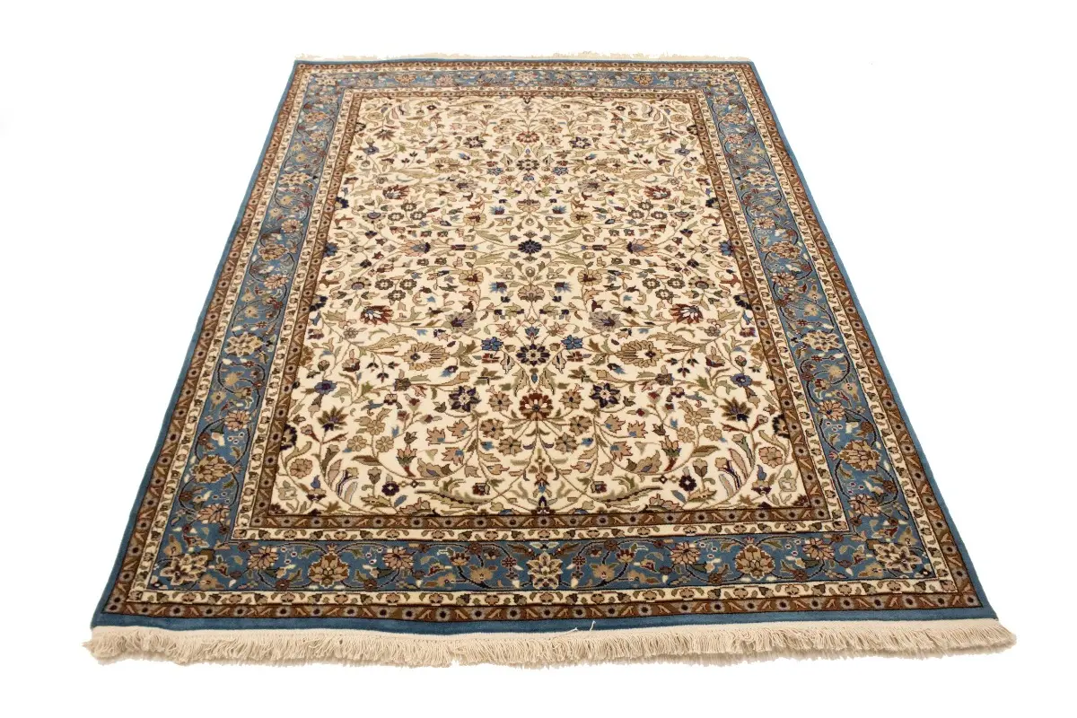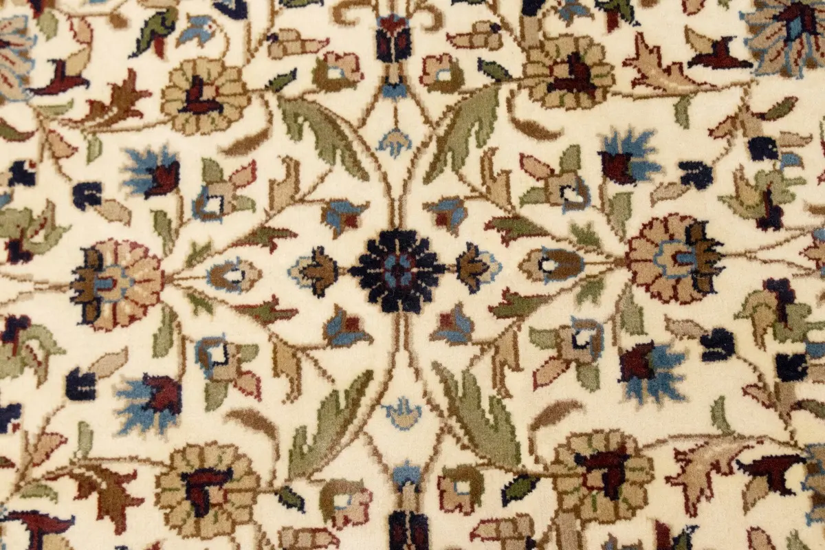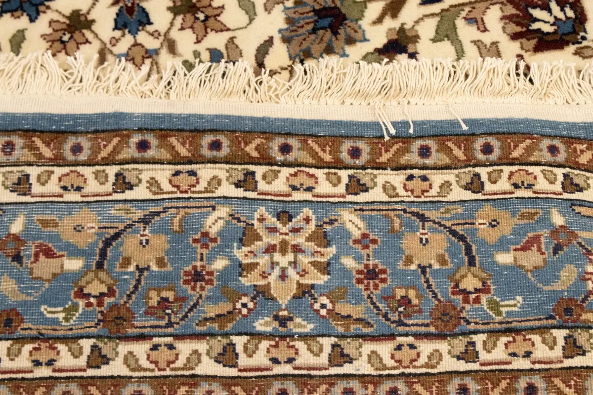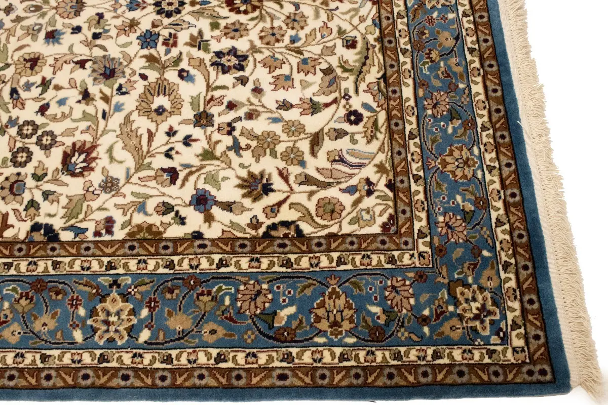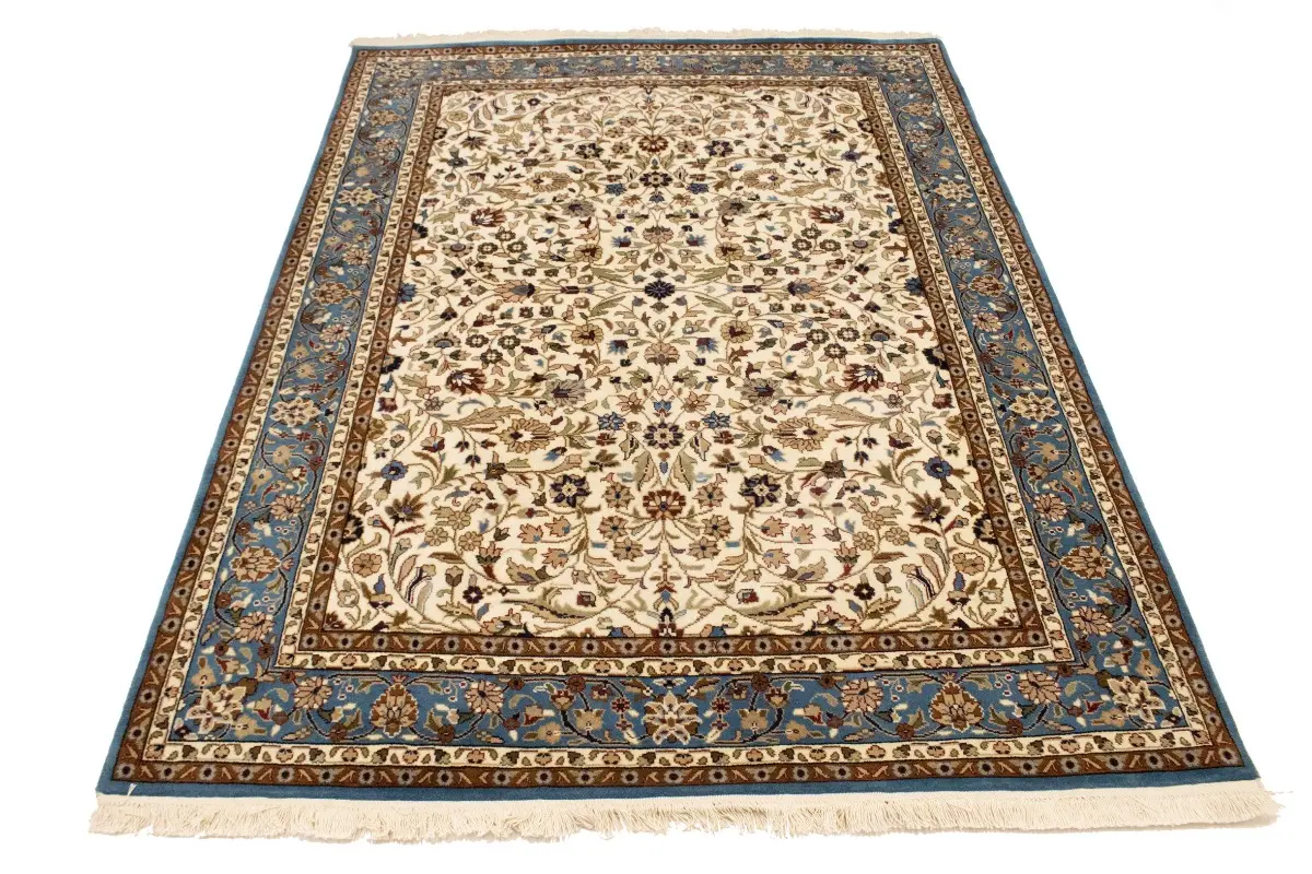 Handmade 6X8 cream Oriental rug made with natural dyes (fine wool pile and cotton foundation), superior knot count, and appealing ancient designs. This Oriental rug never will go out of style and would be among your most valuable treasures.