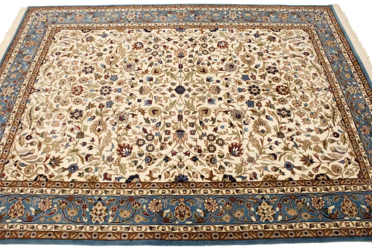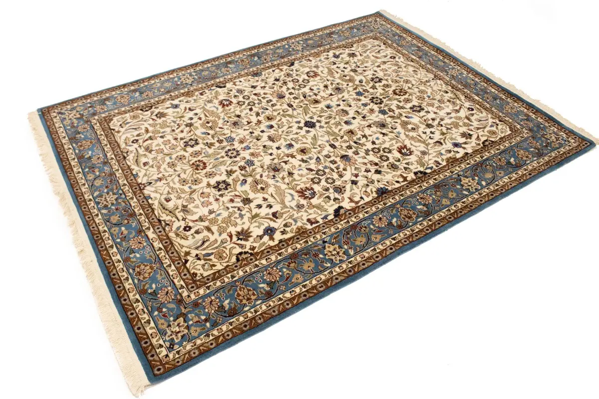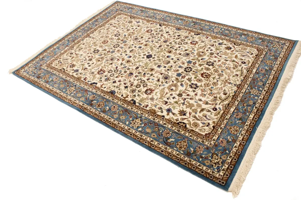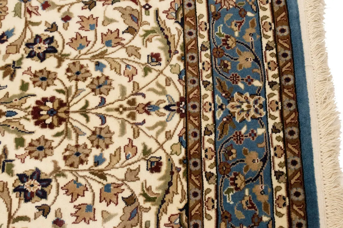 Handmade 6X8 cream Oriental rug made with natural dyes (fine wool pile and cotton foundation), superior knot count, and appealing ancient designs. This Oriental rug never will go out of style and would be among your most valuable treasures.