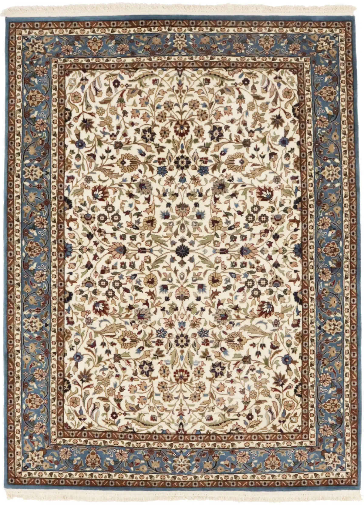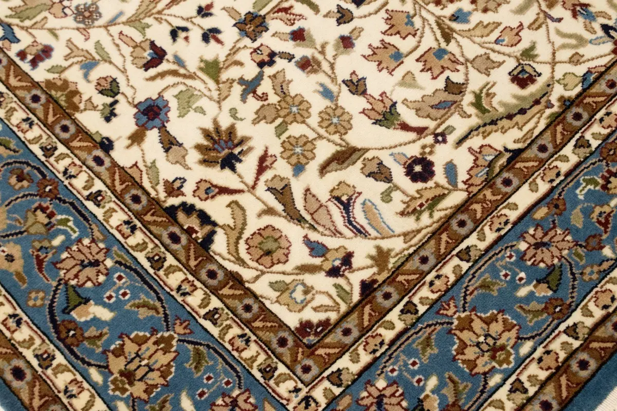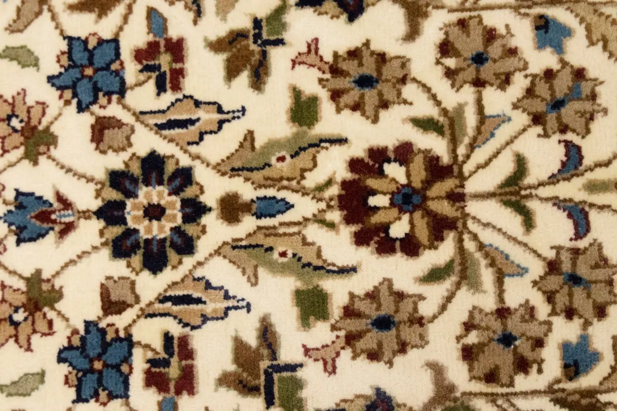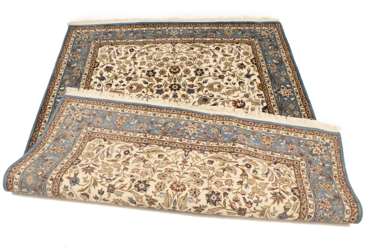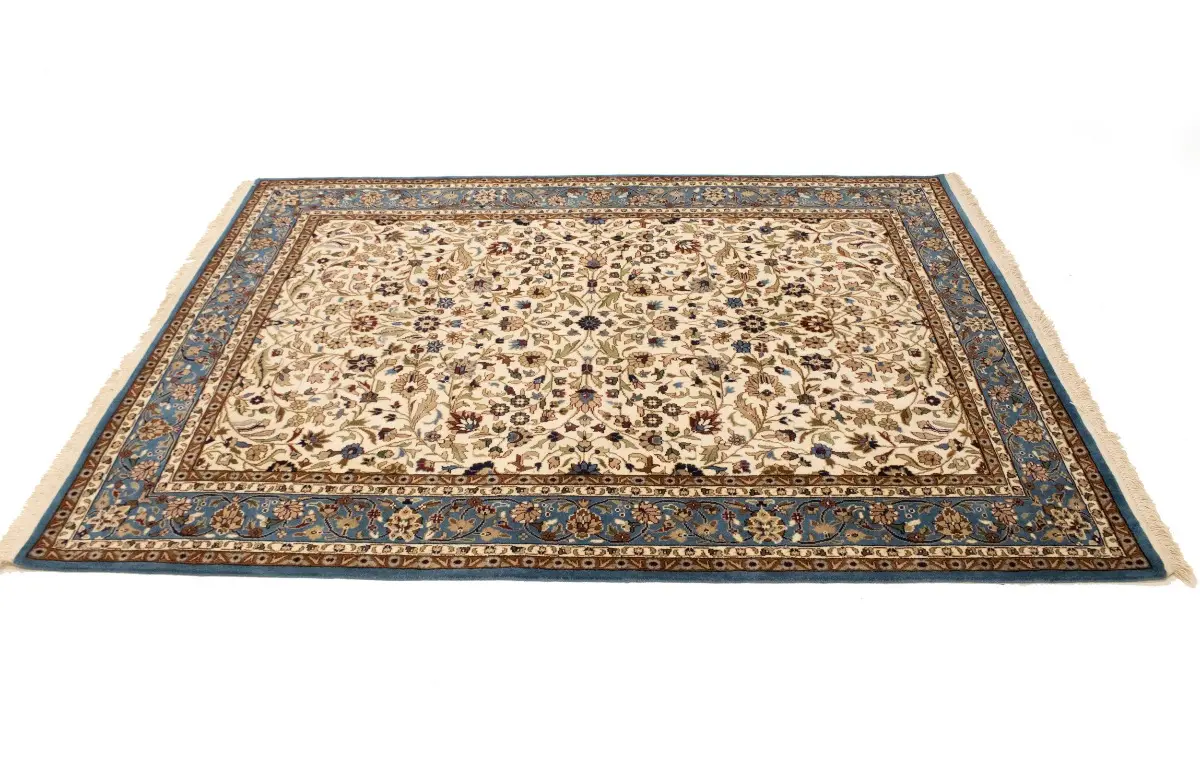 Handmade 6X8 cream Oriental rug made with natural dyes (fine wool pile and cotton foundation), superior knot count, and appealing ancient designs. This Oriental rug never will go out of style and would be among your most valuable treasures.
