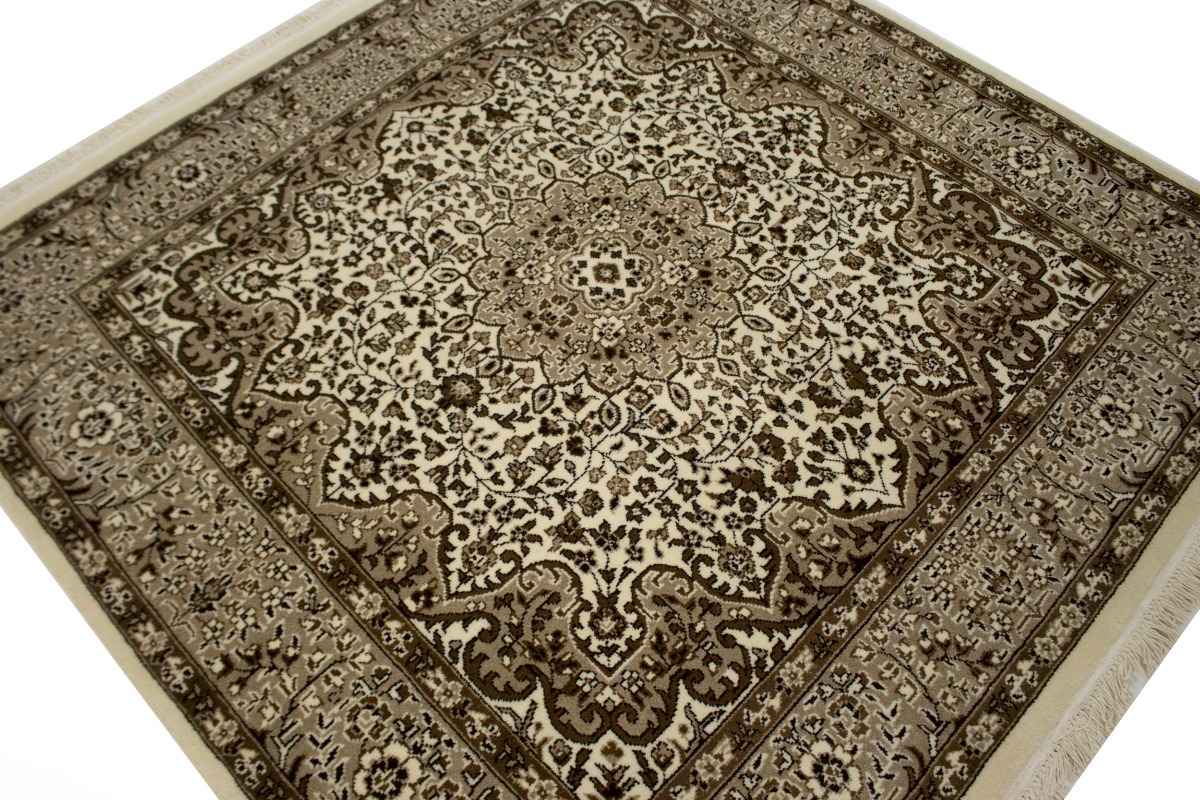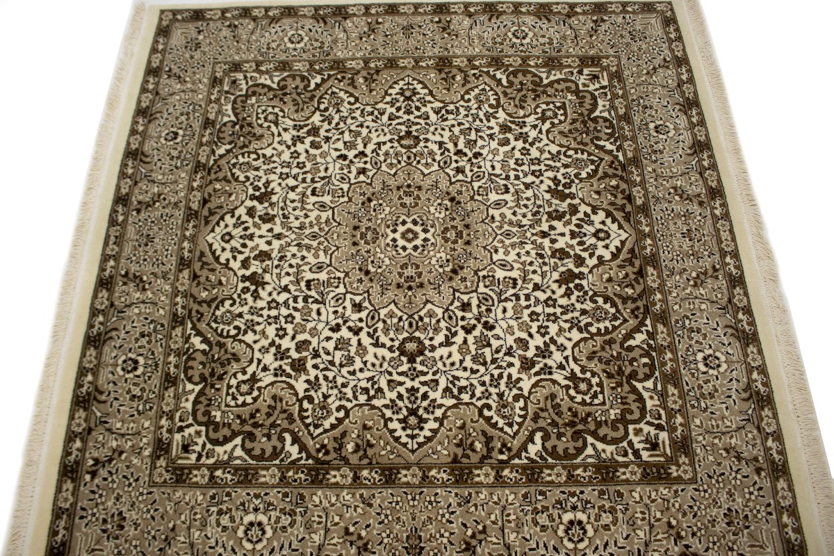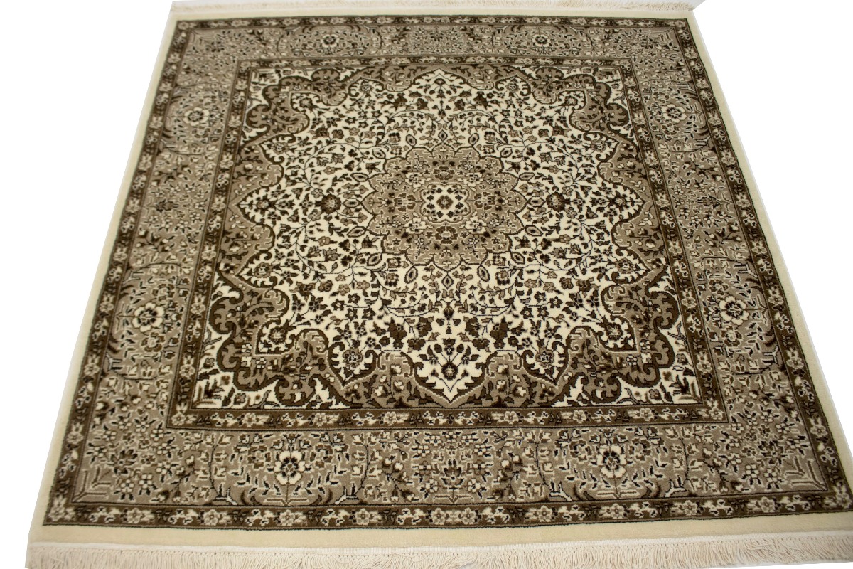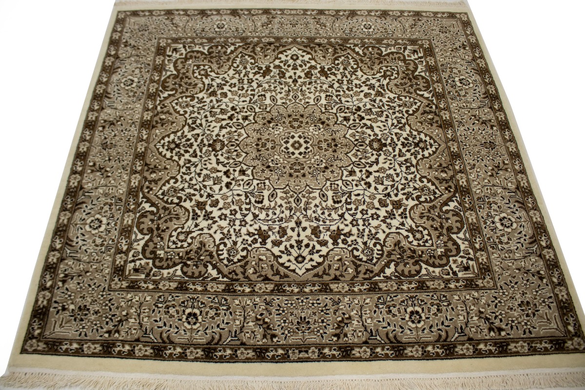 Hand Knotted 5X5 cream oriental rug made with natural dyes (fine wool pile and cotton foundation), superior knot count, and appealing ancient designs. This Oriental rug never will go out of style and would be among your most valuable treasures.