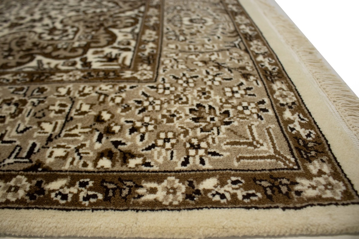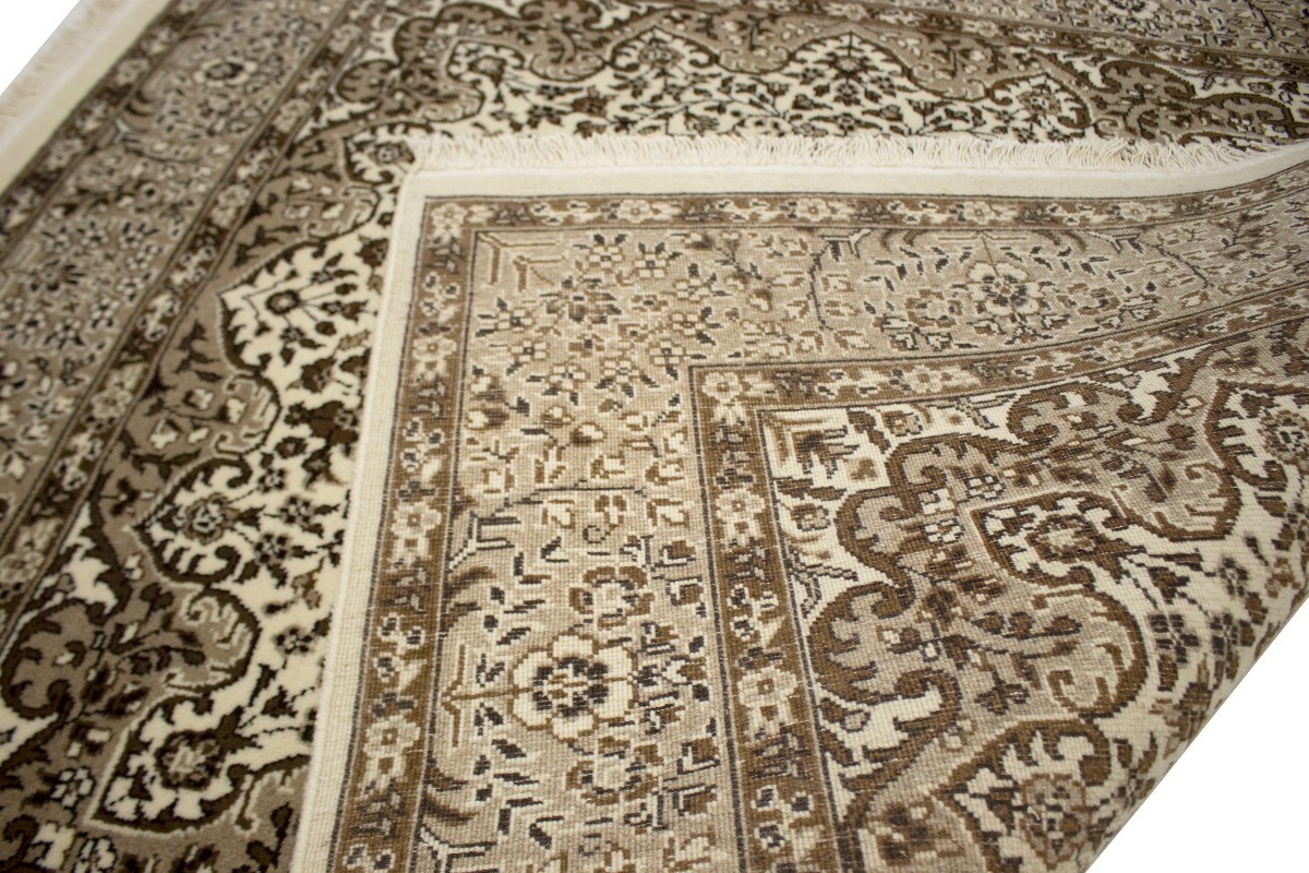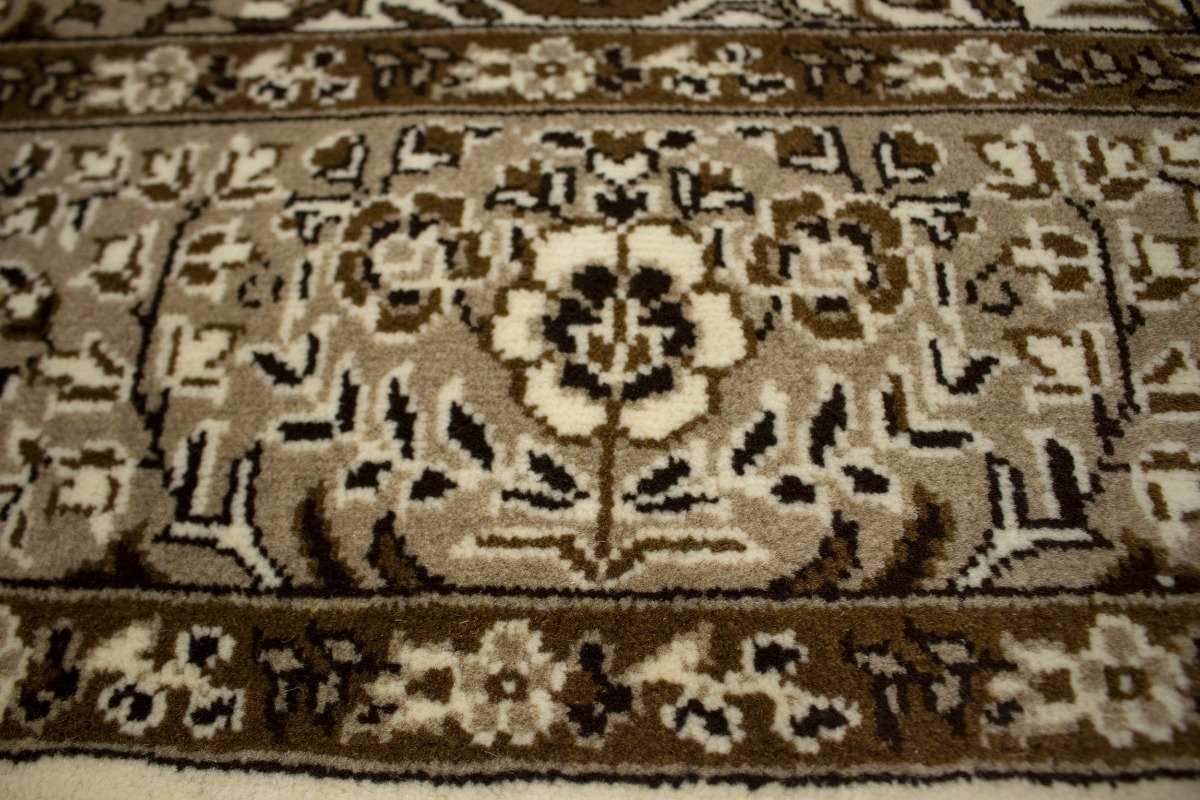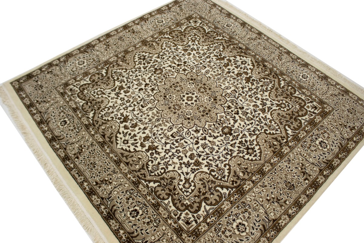 Hand Knotted 5X5 cream oriental rug made with natural dyes (fine wool pile and cotton foundation), superior knot count, and appealing ancient designs. This Oriental rug never will go out of style and would be among your most valuable treasures.