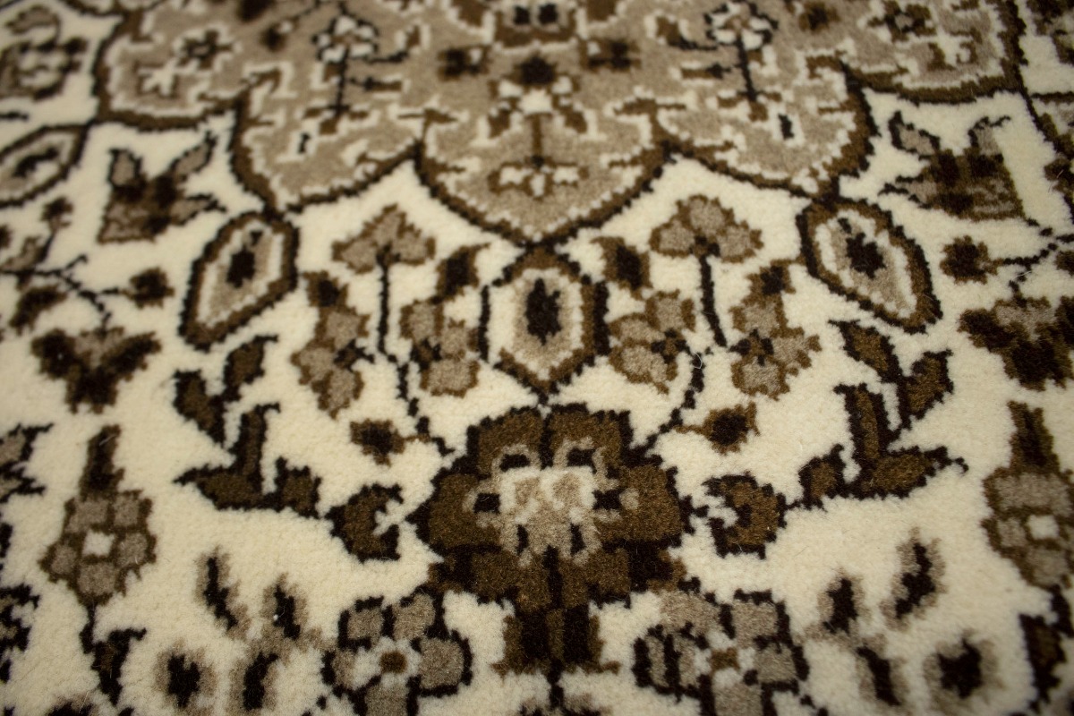 This original 5X5 cream new Oriental rug was finely knotted by the hands of weavers influenced by a variety of amazing artistic designs, to recreate the aged look of the exceptional piece with a richness of color and embellished background field. What set this vintage style Oriental area rug from the others are the material and dye used (wool pile and cotton foundation), knot count, antique designs, fantastic grades, and its regional historical connection: it has deep roots, from the story of the people who produced it to the meaning of the symbols and colors displayed across its canvas that have been praised for centuries. This Indian home décor carpet will be completely cozy and inviting that never will go out of style! Also, this Oriental rug would be among your most valuable treasures, it is a great investment that increase in value over time, and it will last a lifetime because was woven with high-quality, all-natural wool. Eco-friendly, opulent yet affordable; this rug will give you an extra pop of character to help define your home environment with luxury and warmth that will capture the eyes and attention of your audience (homeowners, designers, decorators, family and friends). OT-4840