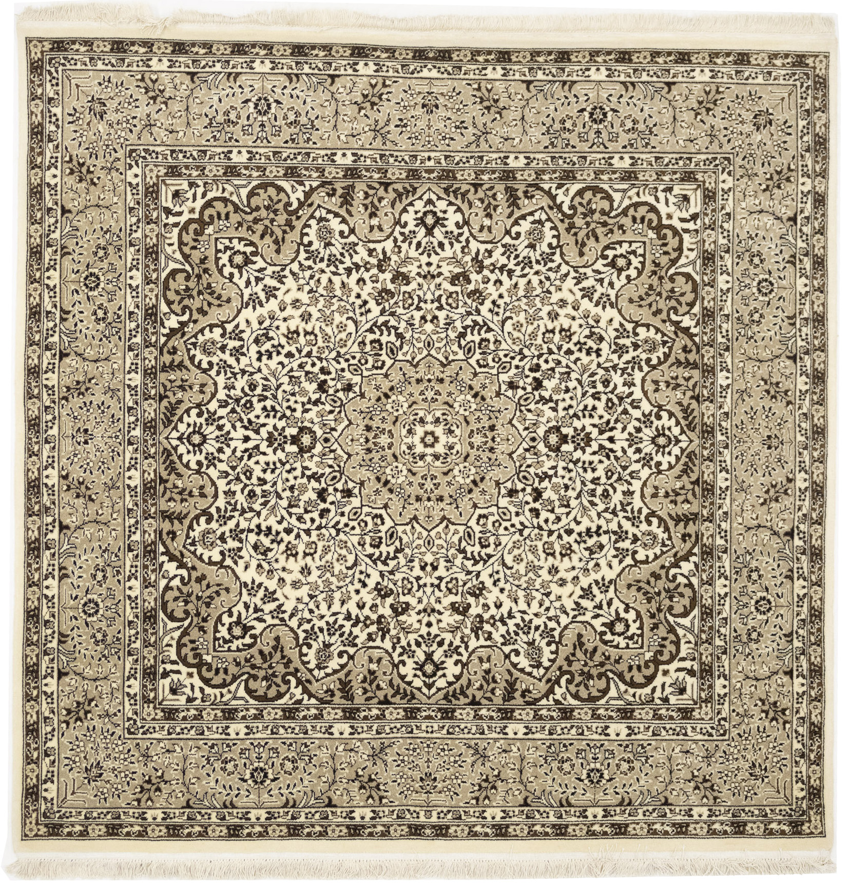 This Exquisite 6X6 cream Traditional Classic Kirman Area Rug was made by the hands of gifted weavers inspired by a variety of Stunning artistic designs, to recreate the aged look of the original piece with a richness of color and beautifully elaborated Floral background field. This Black Traditional Classic Kirman carpet will be completely cozy and inviting that never will go out of style! Also, this Hand-Knotted Oriental rug would be among your most valuable treasures, it is a great investment that increase in value over time, and it will last for generations because was woven with high-quality 100% Wool. Environmentally friendly, opulent yet affordable; this Recently Made Exquisite Kirman rug will give you a thorough amount of character to help define your living space with sophistication and warmth that will capture the eyes and attention of your audience (homeowners, designers, decorators, family and friends).