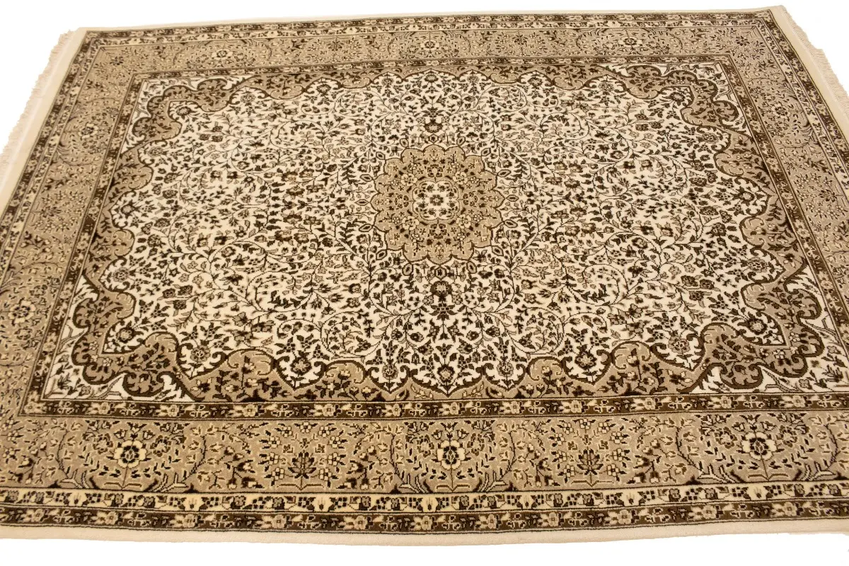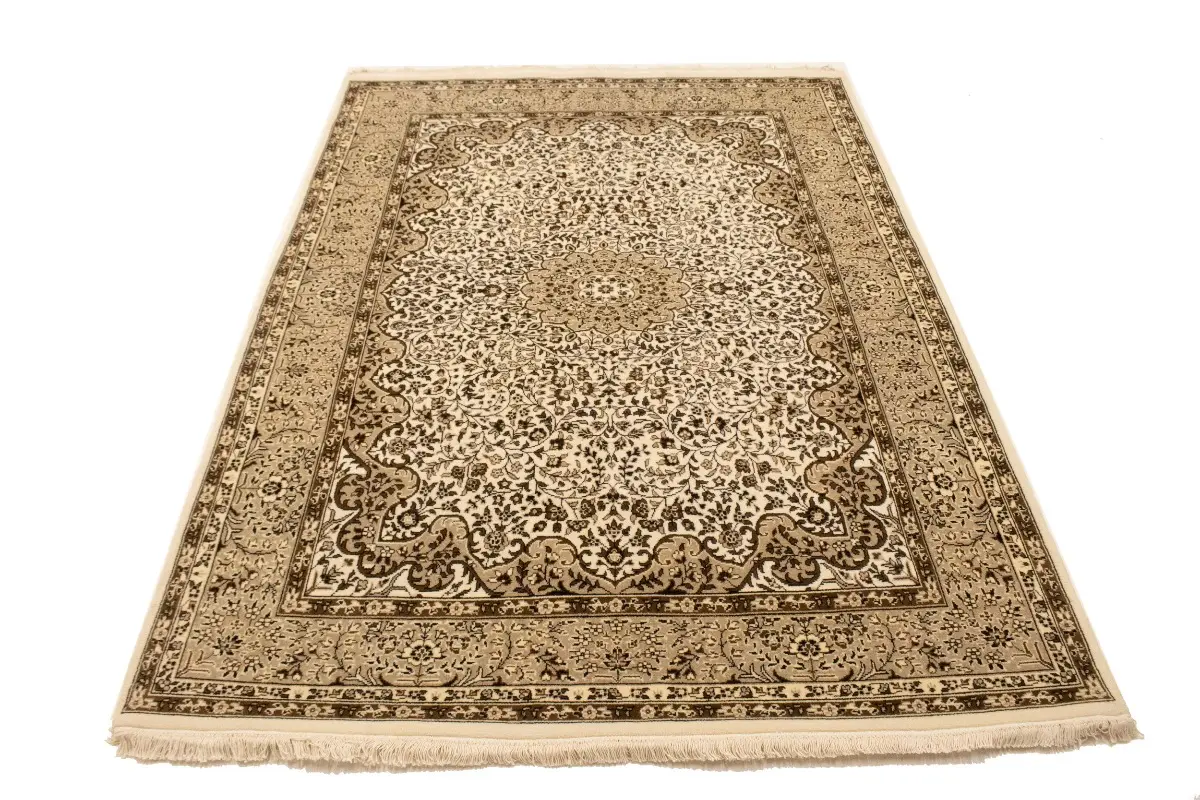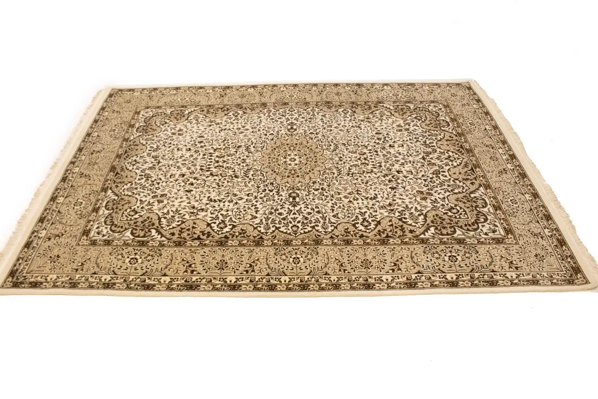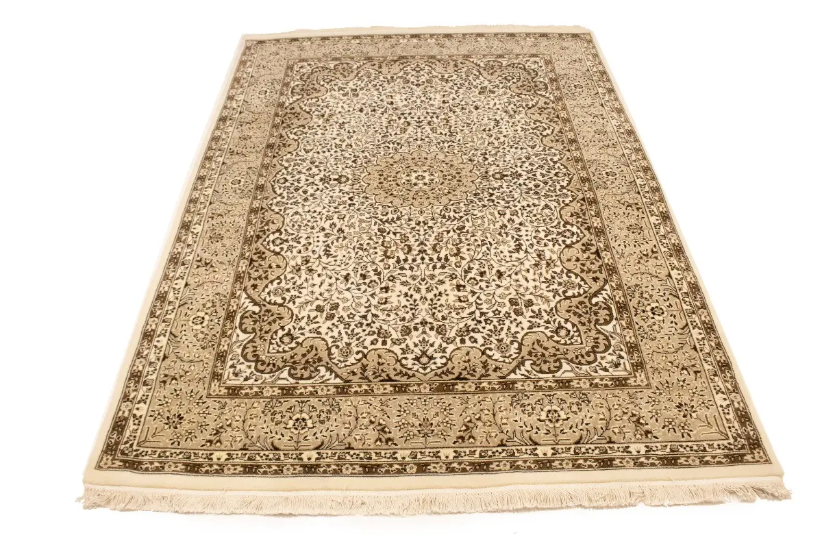 Hand Knotted 6X8 cream Oriental rug made with natural dyes (fine wool pile and cotton foundation), superior knot count, and appealing ancient designs. This Oriental rug never will go out of style and would be among your most valuable treasures.
