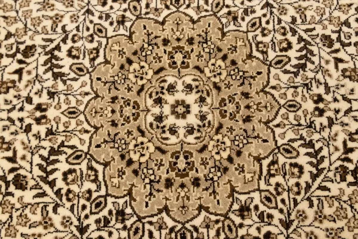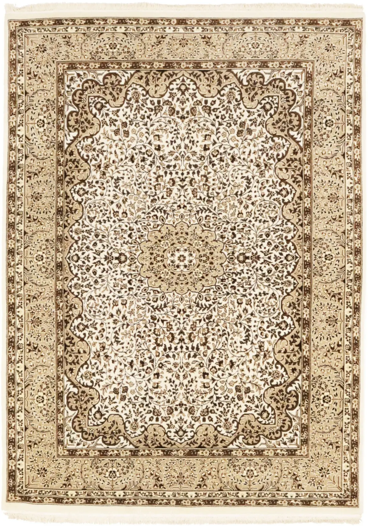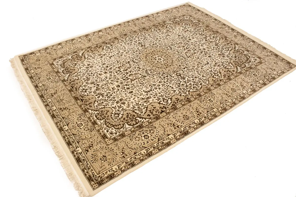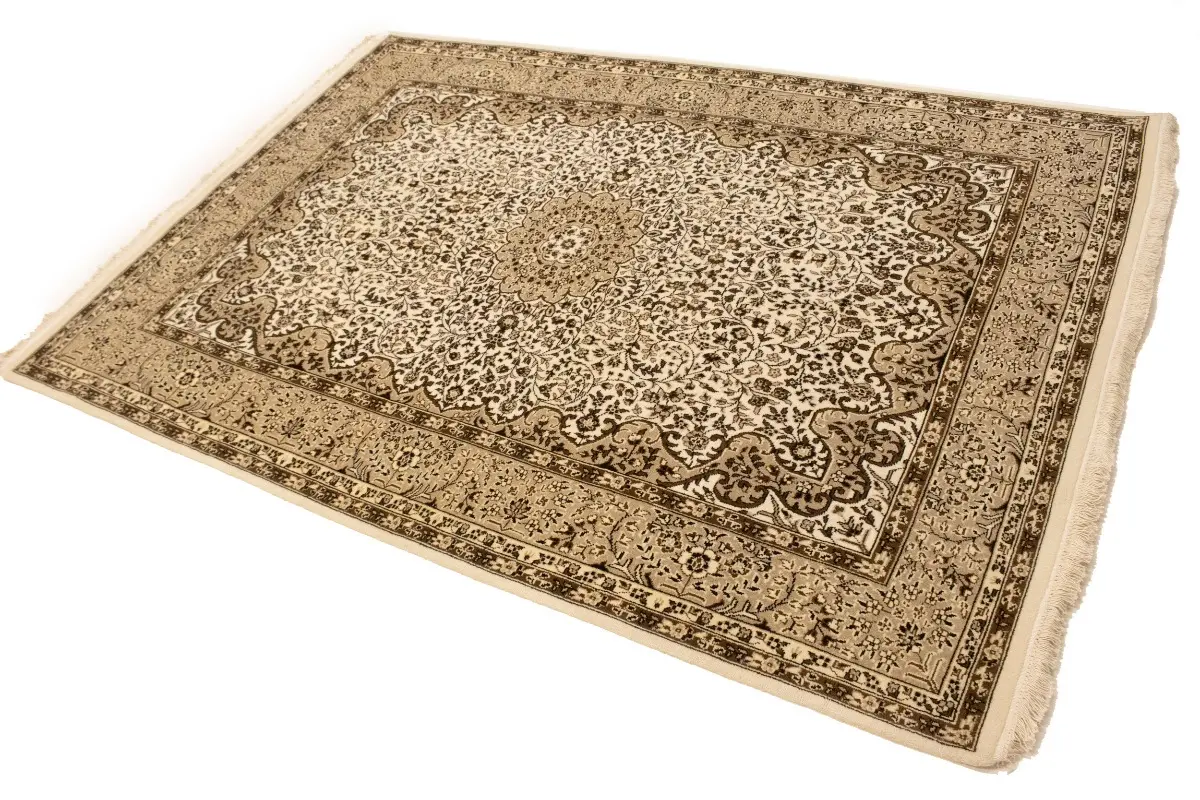 Hand Knotted 6X8 cream Oriental rug made with natural dyes (fine wool pile and cotton foundation), superior knot count, and appealing ancient designs. This Oriental rug never will go out of style and would be among your most valuable treasures.