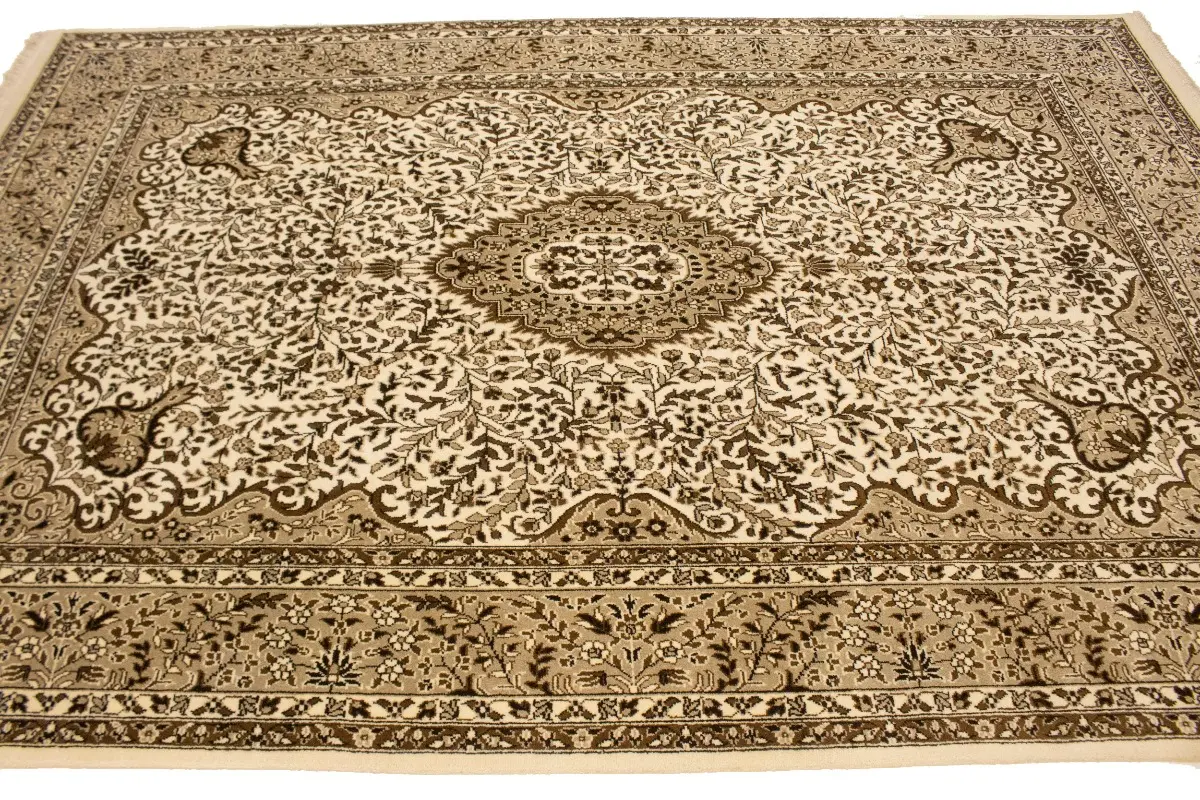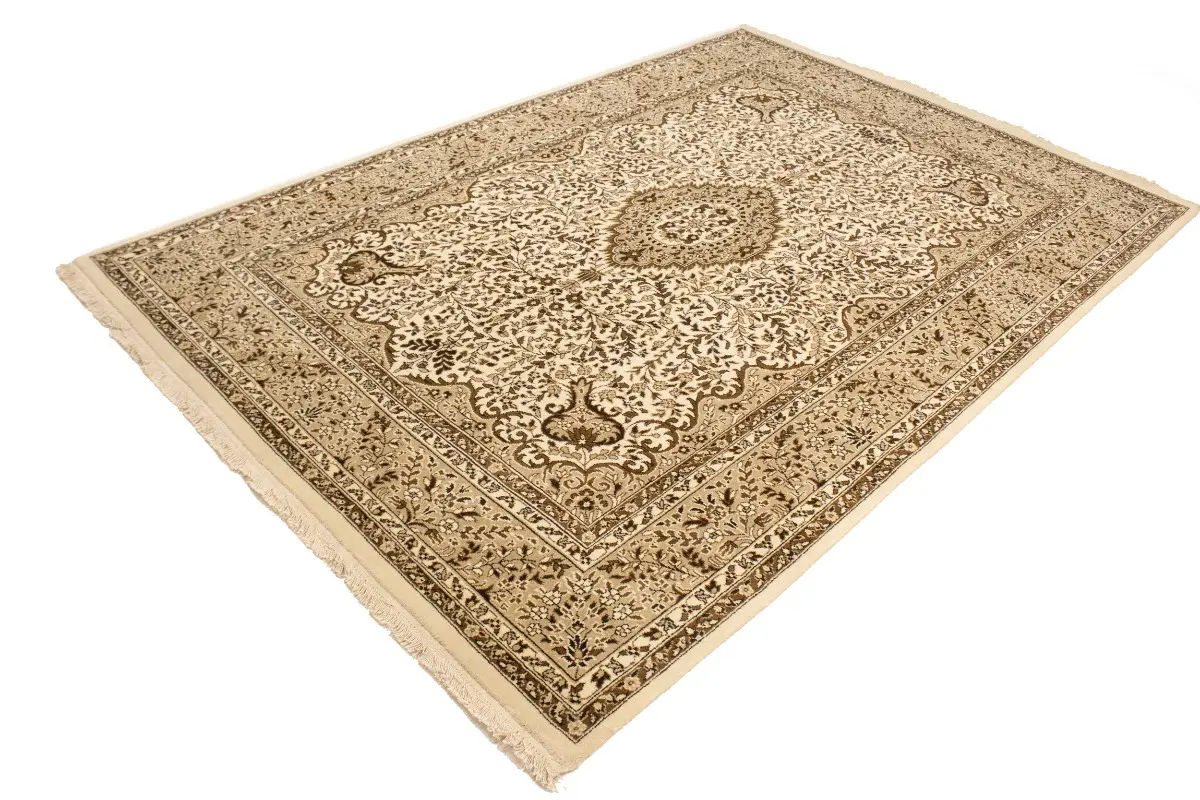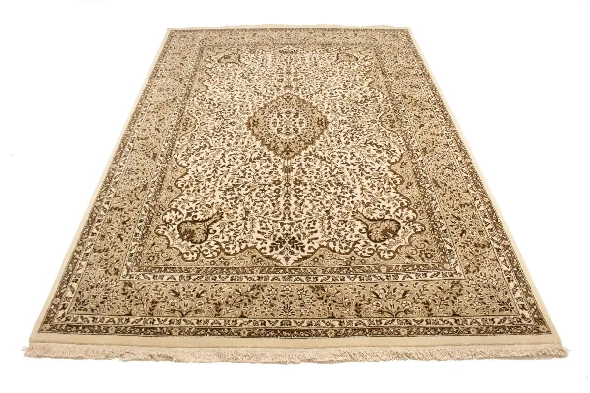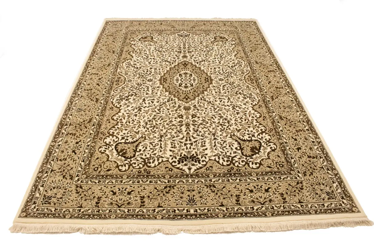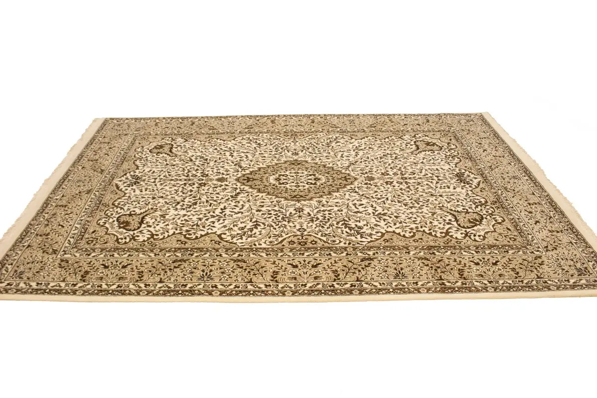Hand Knotted 7X9 cream Oriental rug made with natural dyes (fine wool pile and cotton foundation), superior knot count, and appealing ancient designs. This Oriental rug never will go out of style and would be among your most valuable treasures.