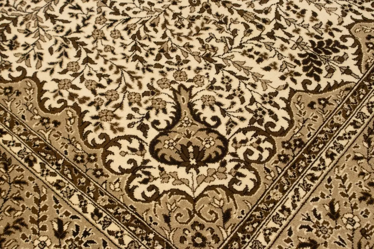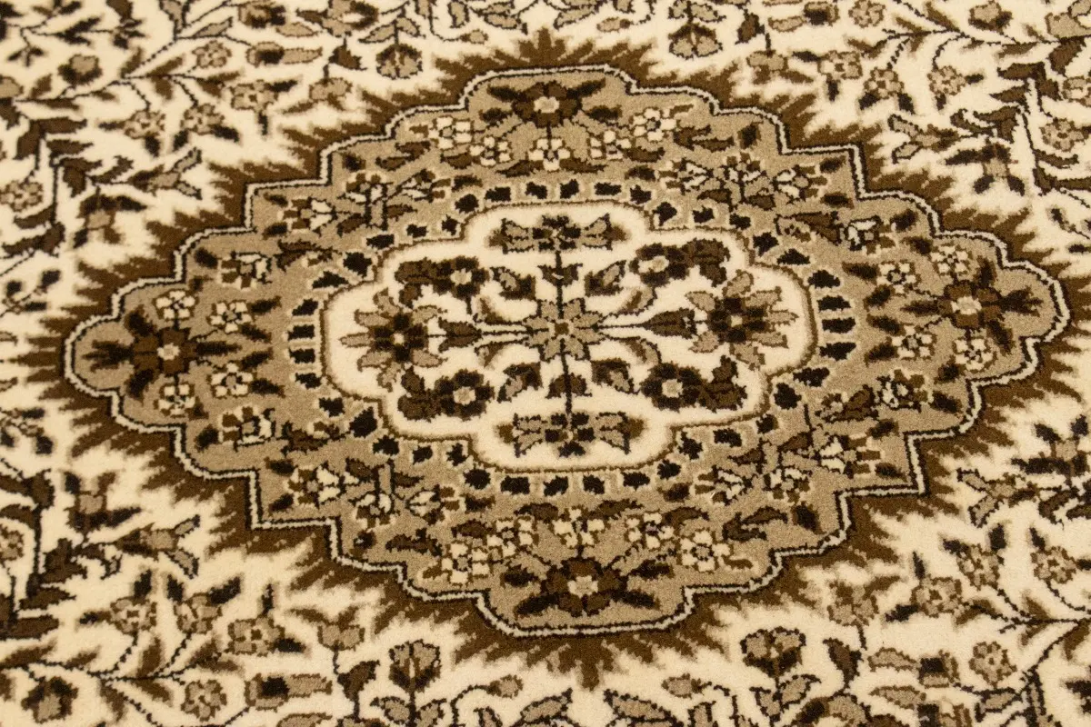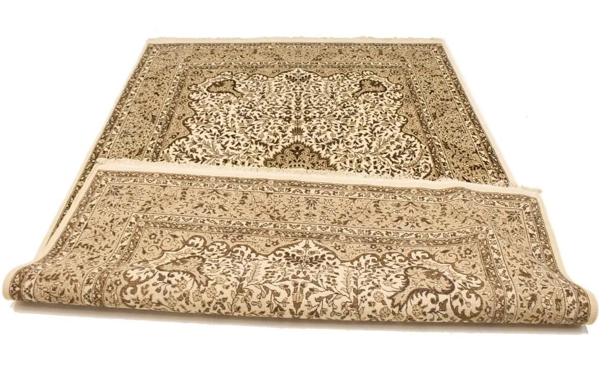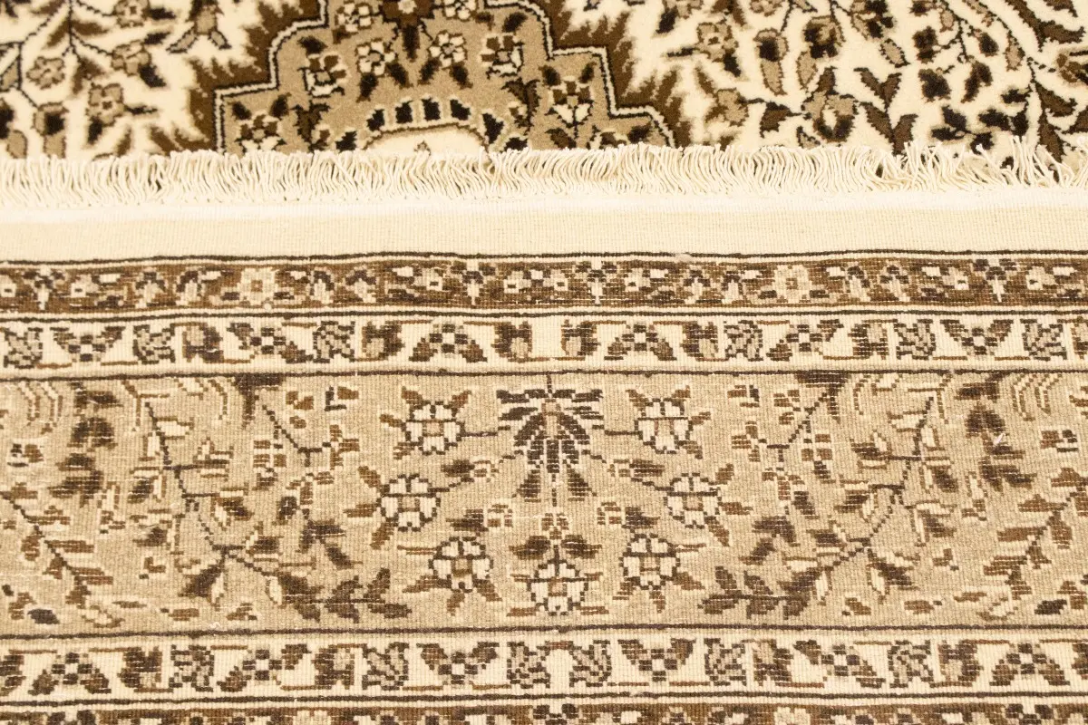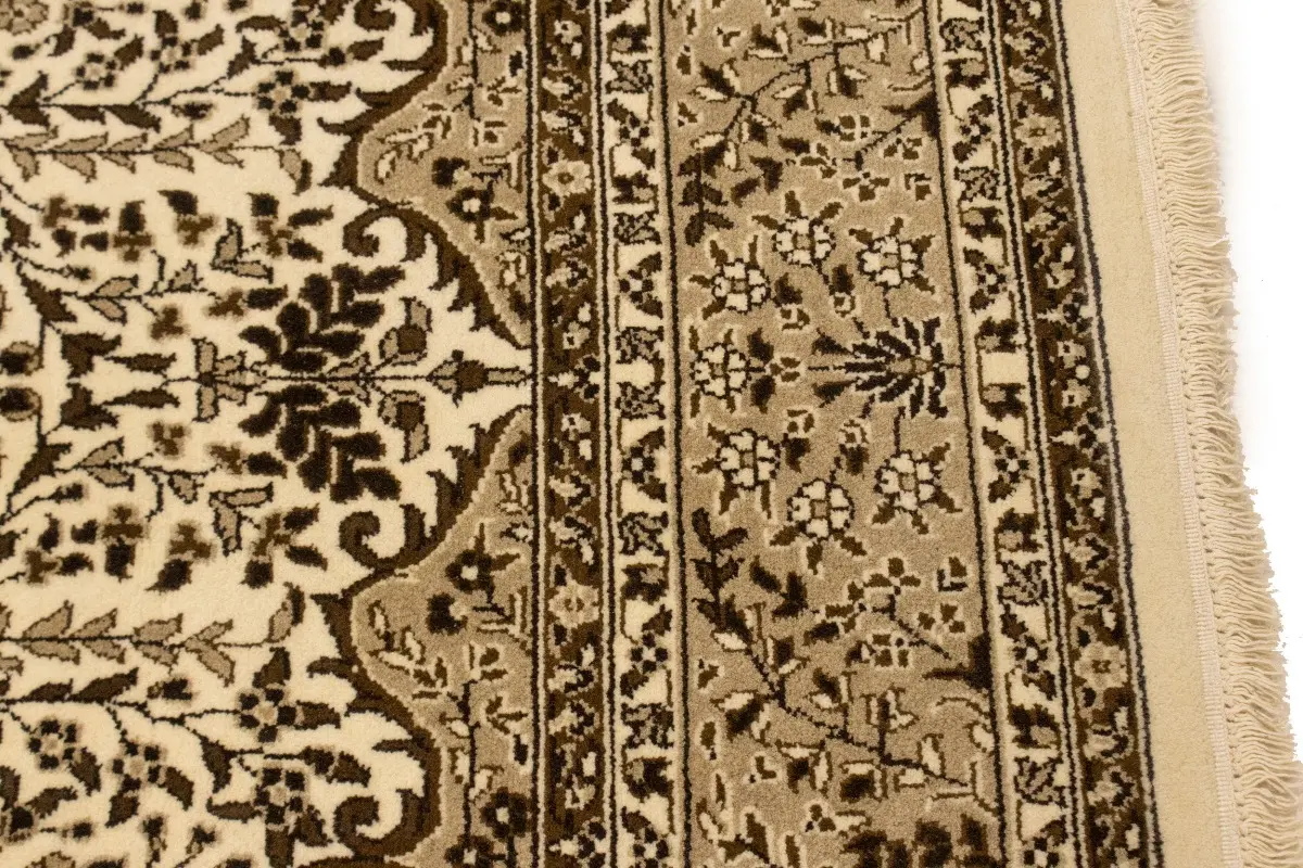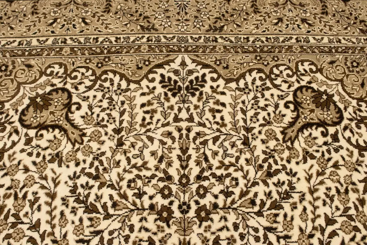 Hand Knotted 7X9 cream Oriental rug made with natural dyes (fine wool pile and cotton foundation), superior knot count, and appealing ancient designs. This Oriental rug never will go out of style and would be among your most valuable treasures.