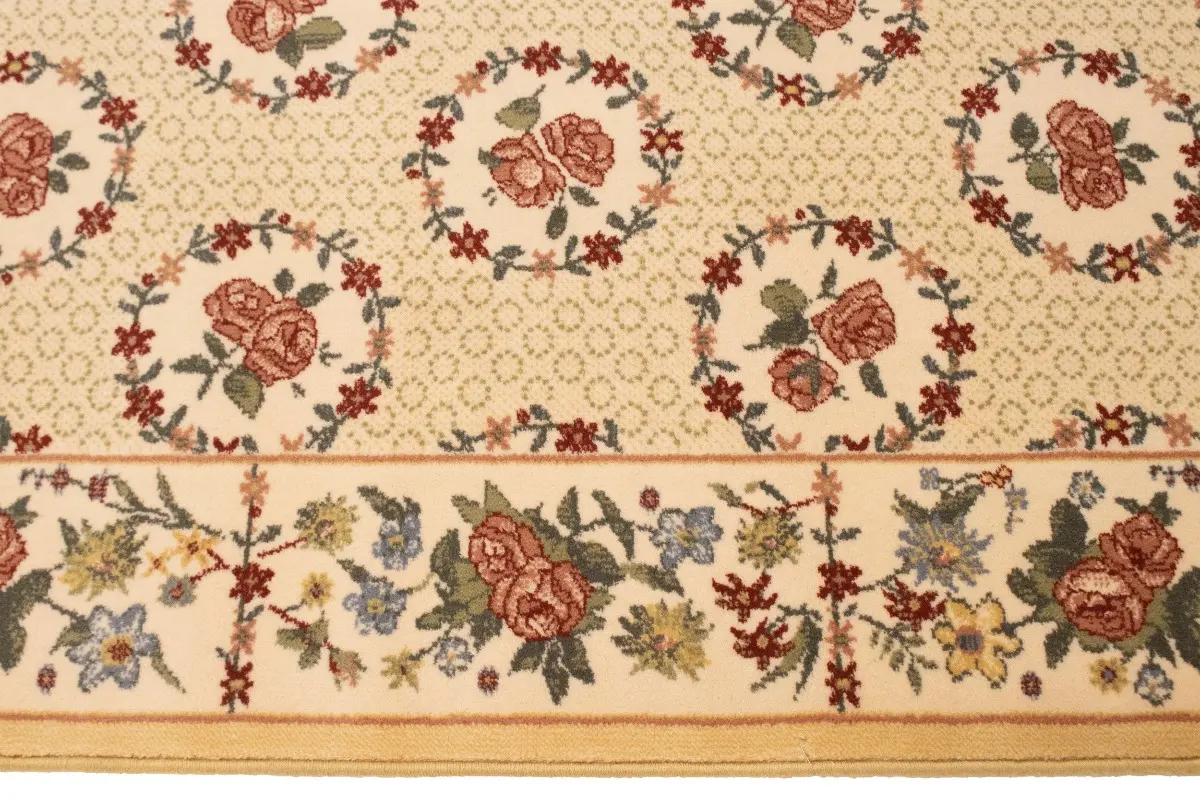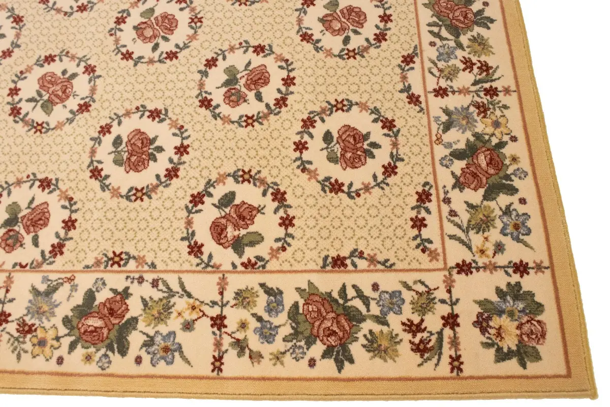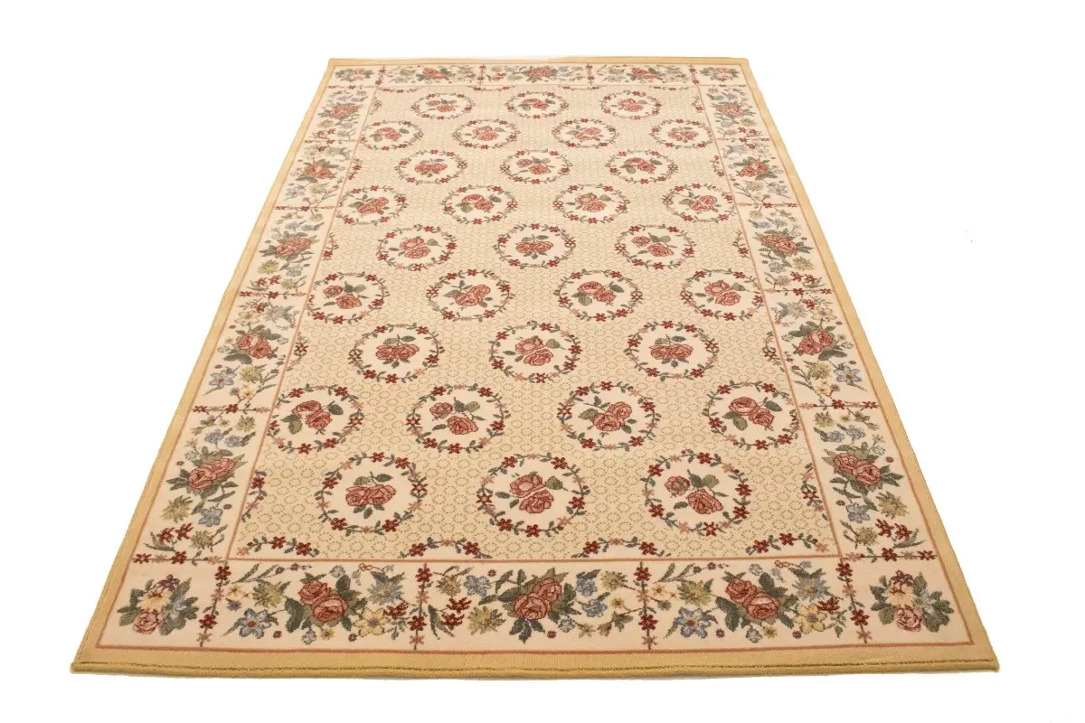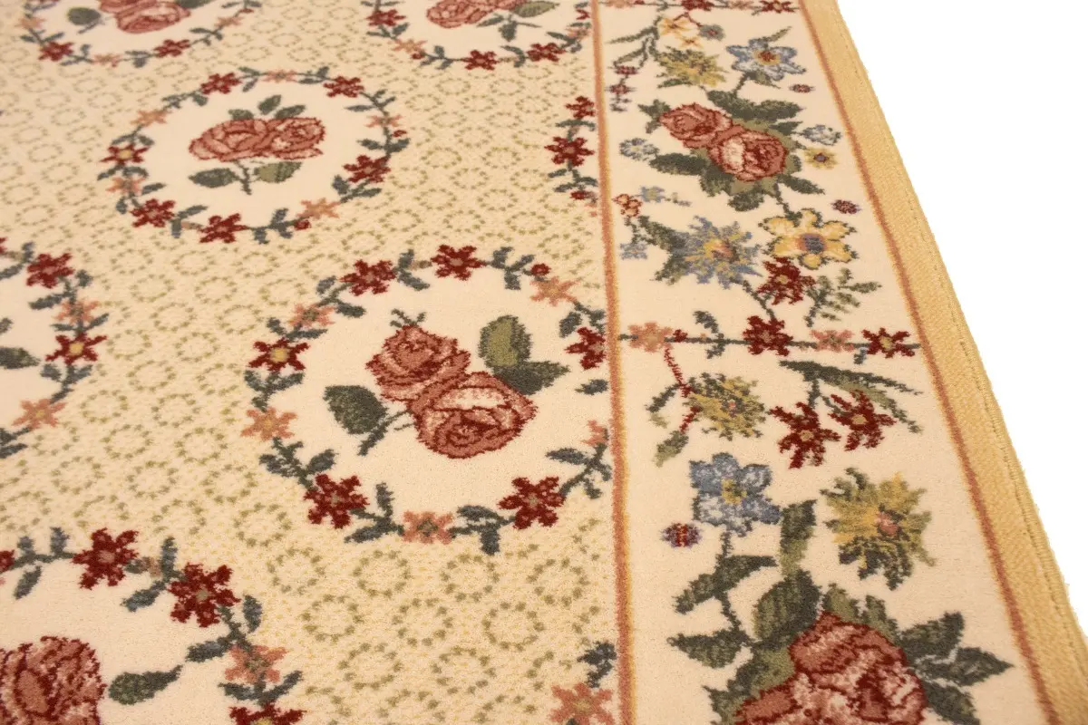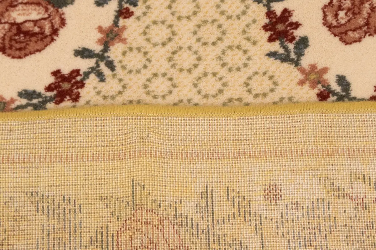 Cream Floral Machine-Made 5'5X8'6 Modern Rug