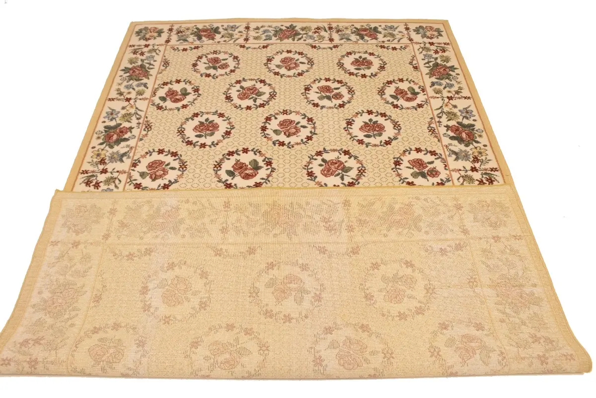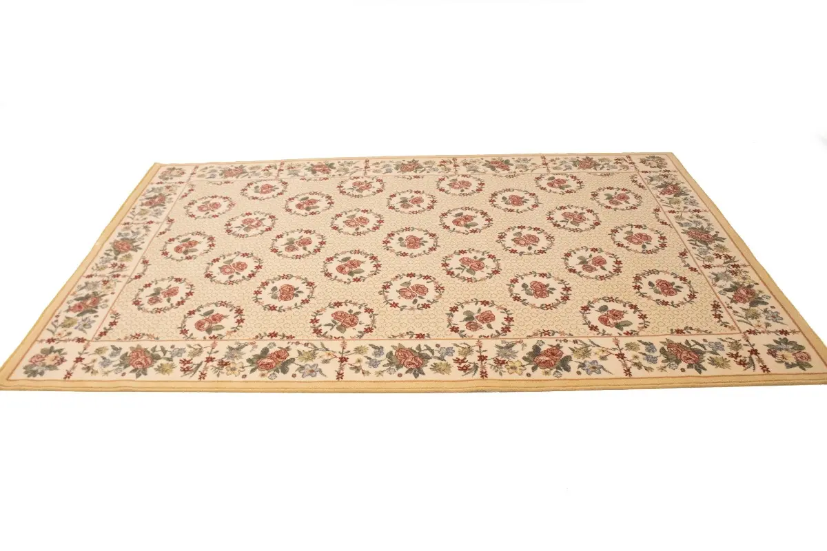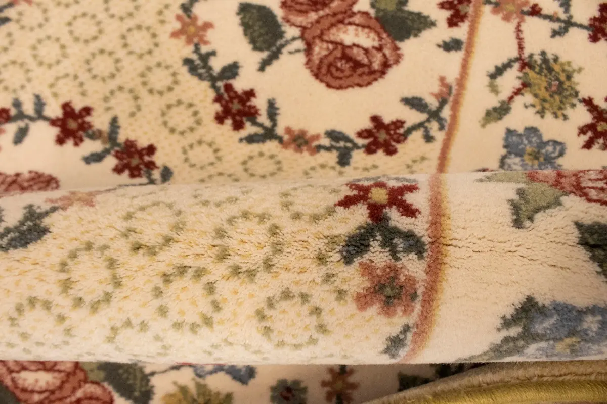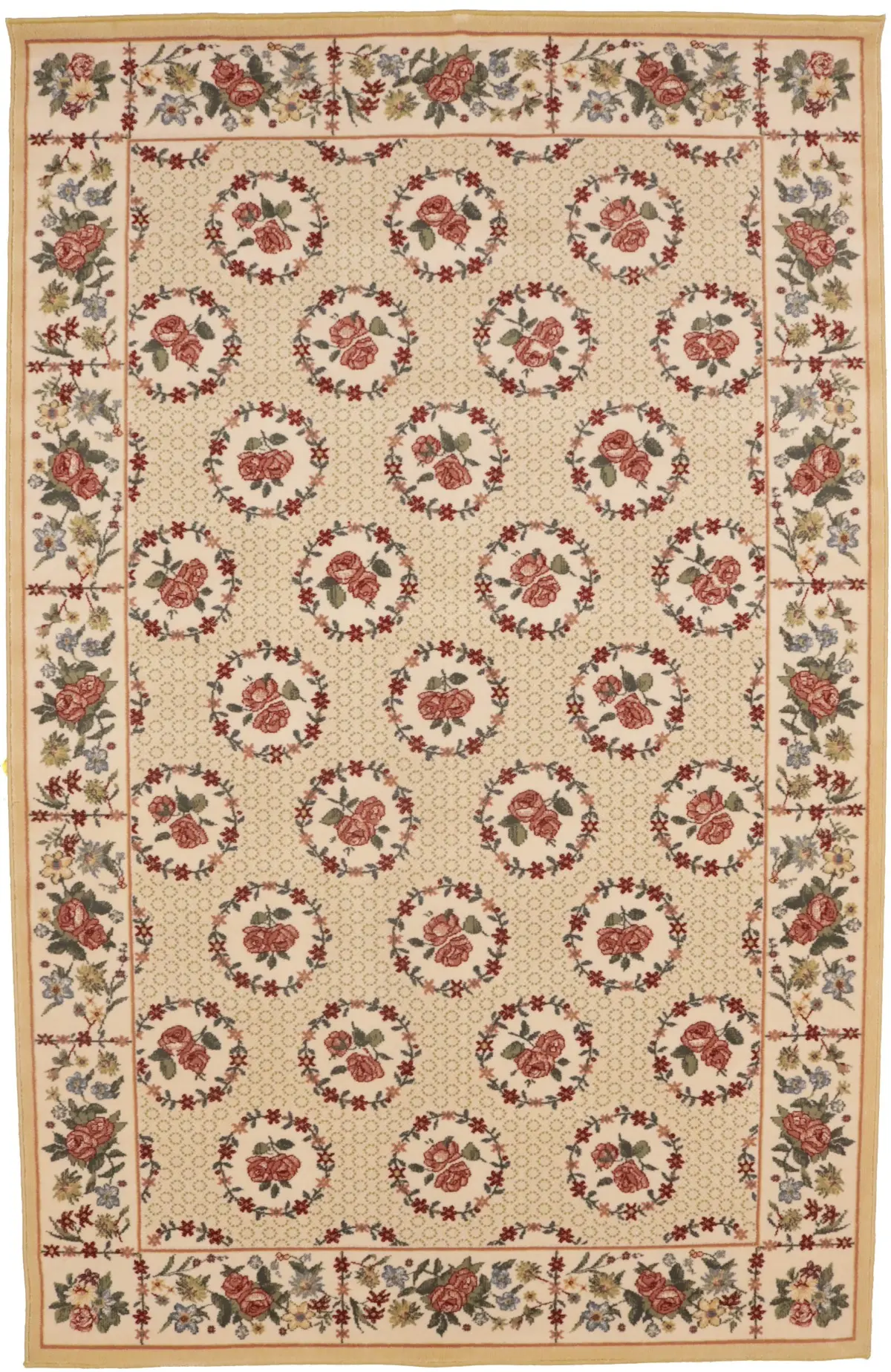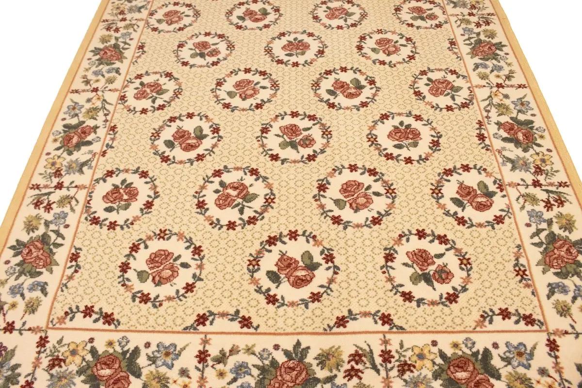 Cream Floral Machine-Made 5'5X8'6 Modern Rug
