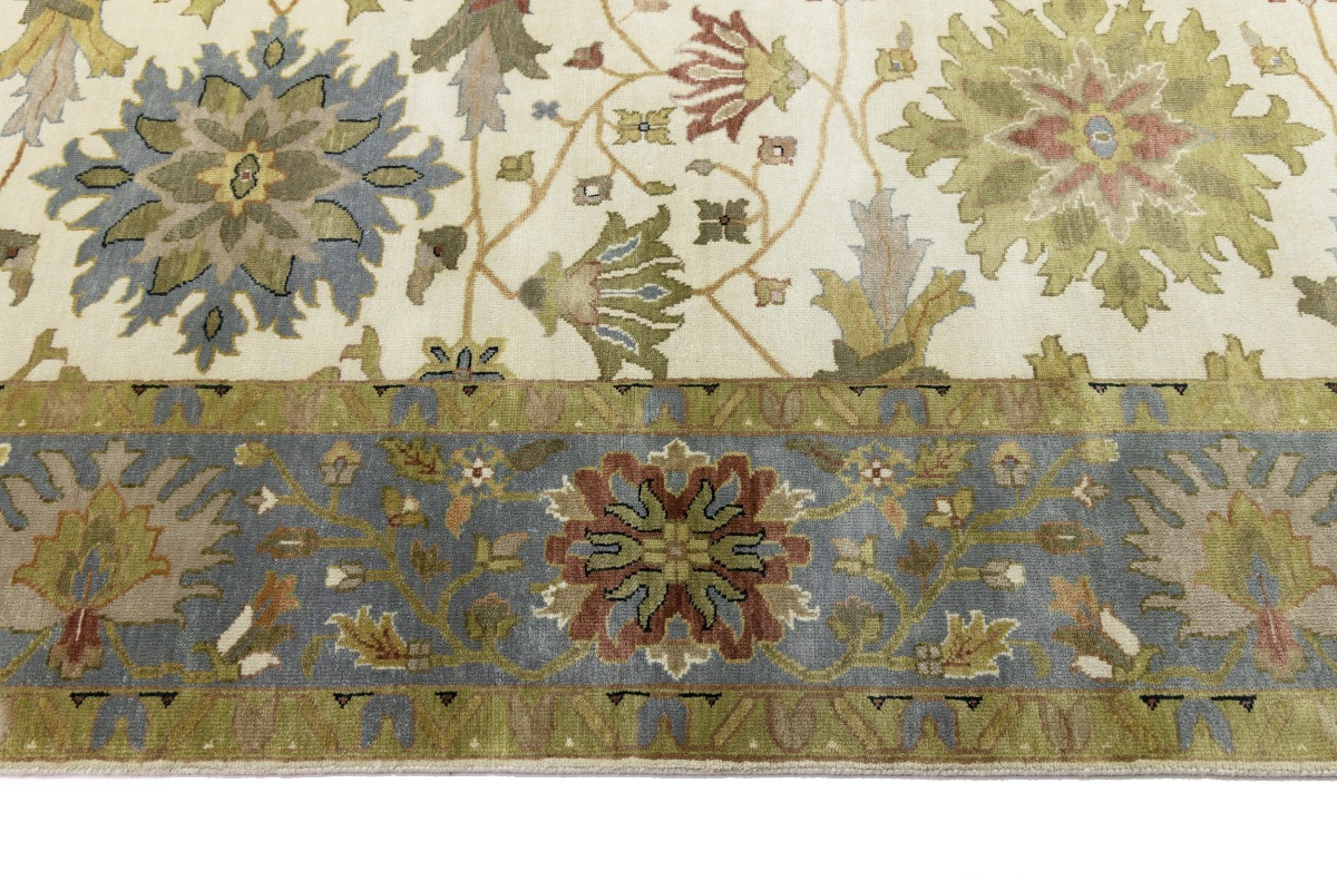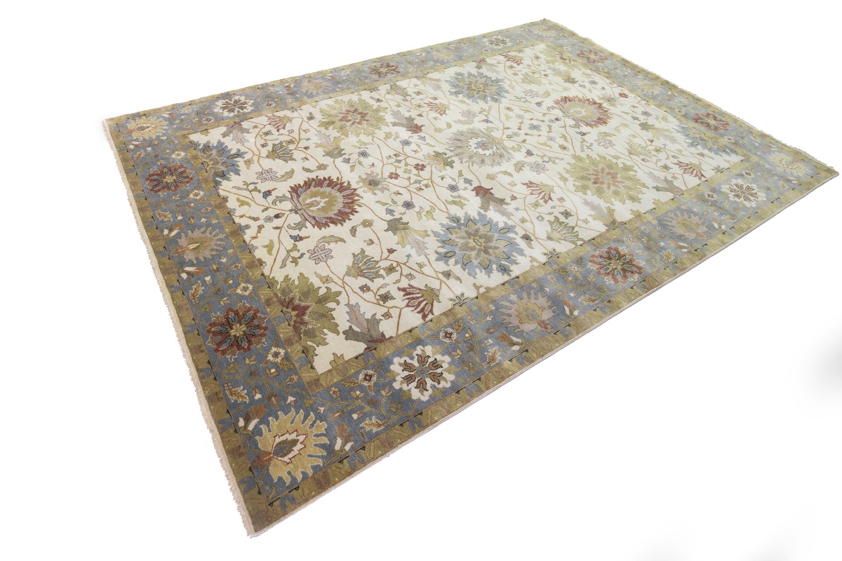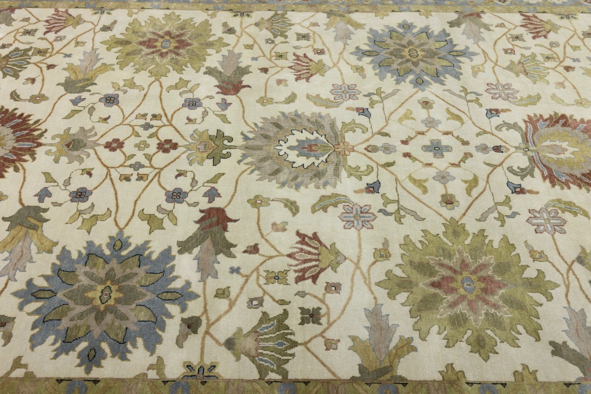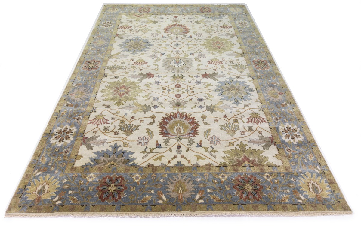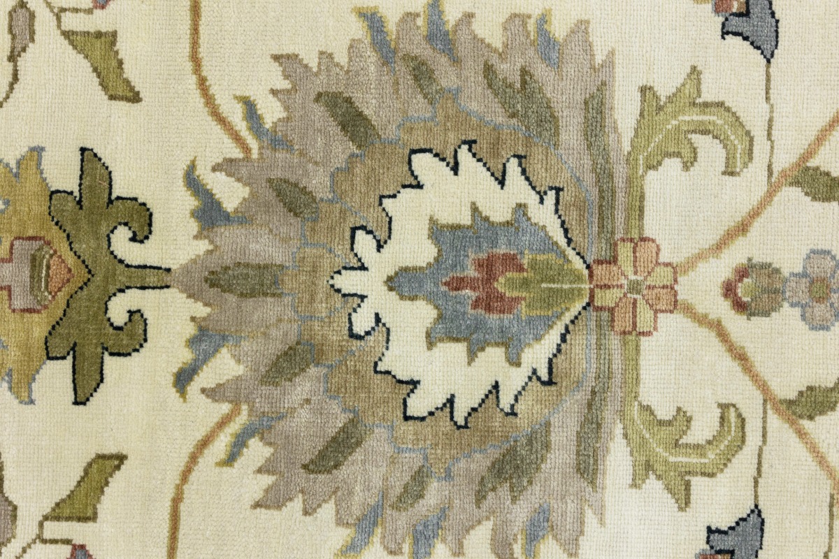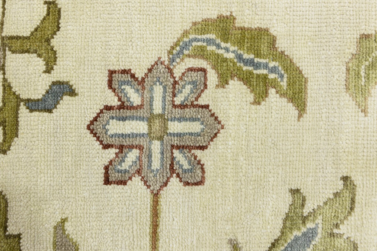 This genuine 10X14 cream new Oriental rug was made by the hands of gifted weavers inspired by a variety of spectacular artistic designs, to recreate the aged look of the original piece with a richness of color and ornately patterned background field. What set this vintage style Oriental area rug from the others are the material and dye used (wool pile and cotton foundation), knot count, ancient designs, fantastic grades, and its regional historical connection: it has deep roots, from the story of the people who produced it to the meaning of the symbols and colors displayed across its canvas that have been praised for centuries. This Indian home décor carpet will be completely cozy and inviting that never will go out of style! Also, this Oriental rug would be among your most valuable treasures, it is a great investment that accrues value over time, and it will last for generations because was woven with high-quality, all-natural wool. Environmentally friendly, opulent yet affordable; this rug will give you a thorough amount of character to help define your living space with elegance and warmth that will capture the eyes and attention of your audience (homeowners, designers, decorators, family and friends). OT-8304