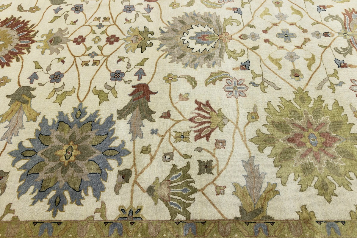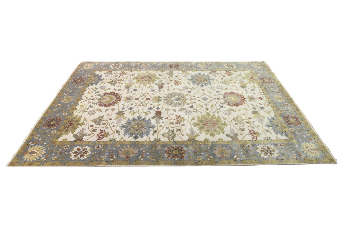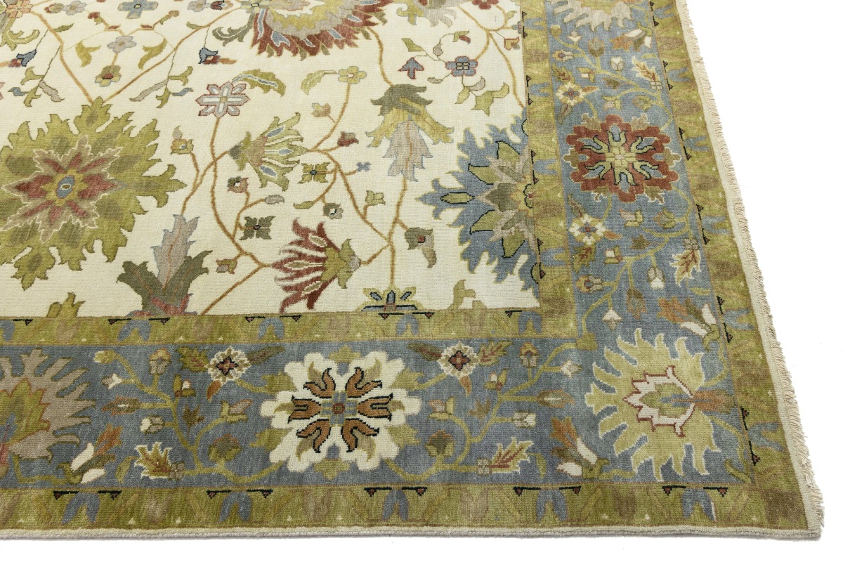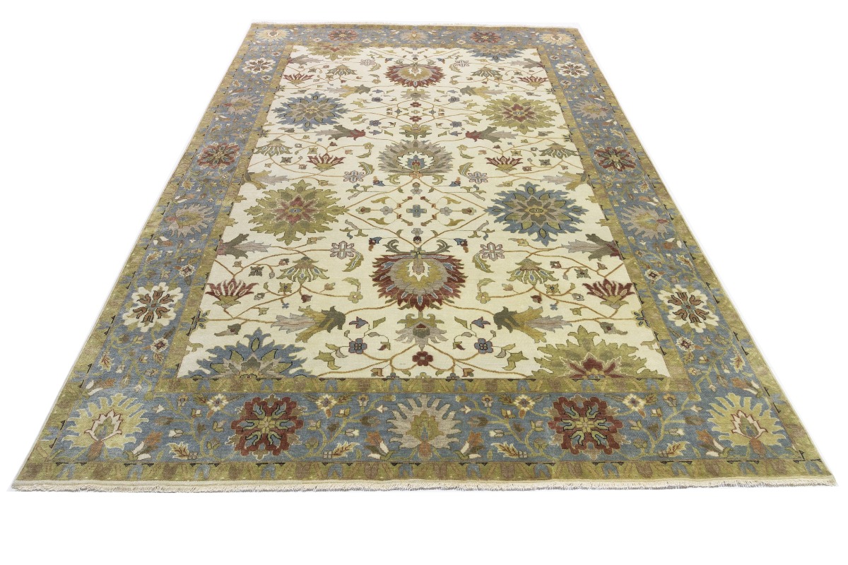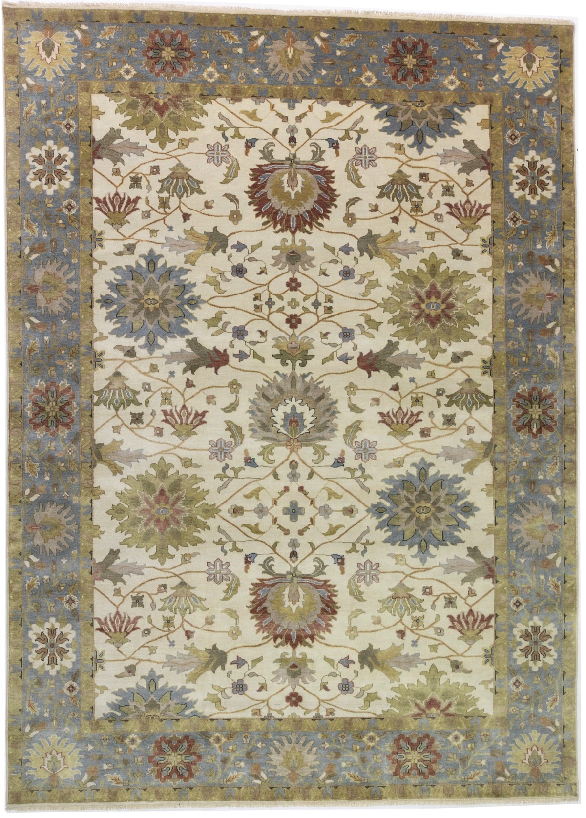 This genuine 10X14 cream new Oriental rug was made by the hands of gifted weavers inspired by a variety of spectacular artistic designs, to recreate the aged look of the original piece with a richness of color and ornately patterned background field. What set this vintage style Oriental area rug from the others are the material and dye used (wool pile and cotton foundation), knot count, ancient designs, fantastic grades, and its regional historical connection: it has deep roots, from the story of the people who produced it to the meaning of the symbols and colors displayed across its canvas that have been praised for centuries. This Indian home décor carpet will be completely cozy and inviting that never will go out of style! Also, this Oriental rug would be among your most valuable treasures, it is a great investment that accrues value over time, and it will last for generations because was woven with high-quality, all-natural wool. Environmentally friendly, opulent yet affordable; this rug will give you a thorough amount of character to help define your living space with elegance and warmth that will capture the eyes and attention of your audience (homeowners, designers, decorators, family and friends). OT-8304