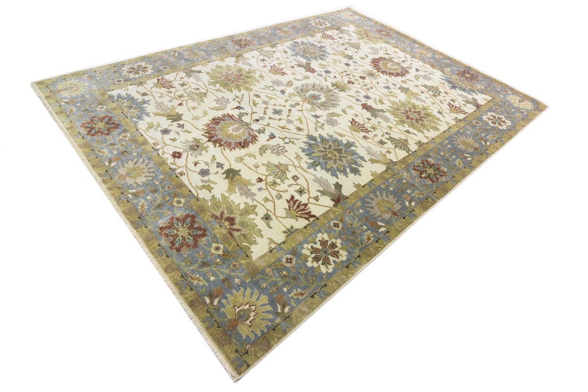 Hand Knotted 10X14 cream Oriental rug made with vegetable dyes (fine wool pile and cotton foundation), superior knot count, and appealing ancient designs. This Oriental rug never will go out of style and would be among your most valuable treasures.