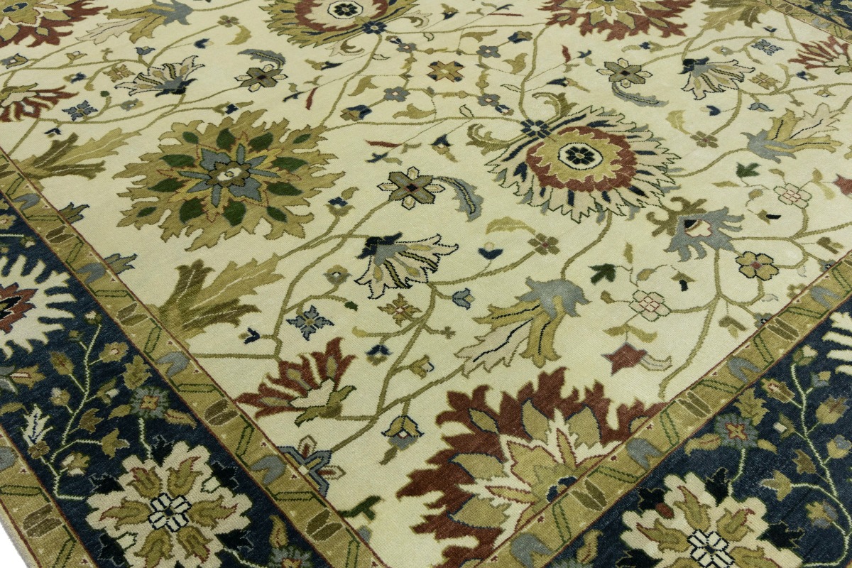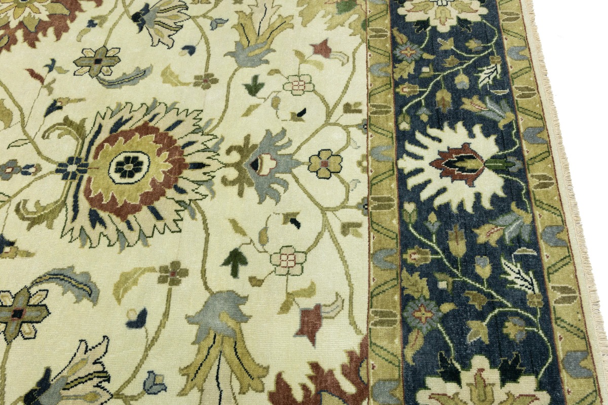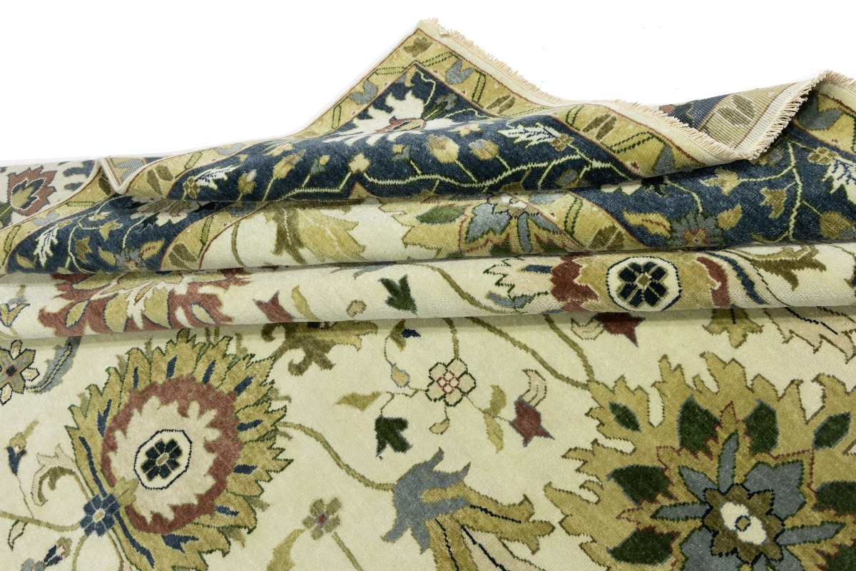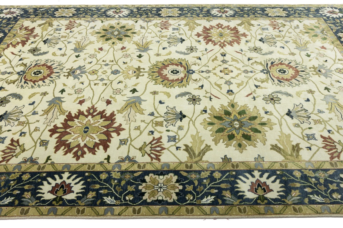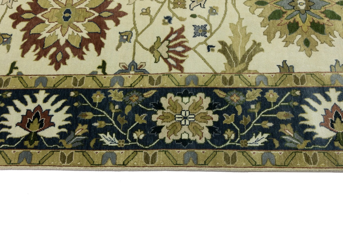 This genuine 10X14 cream new Oriental rug was made by the hands of gifted weavers inspired by a variety of spectacular artistic designs, to recreate the aged look of the original piece with a richness of color and ornately patterned background field. What set this vintage style Oriental area rug from the others are the material and dye used (wool pile and cotton foundation), knot count, ancient designs, fantastic grades, and its regional historical connection: it has deep roots, from the story of the people who produced it to the meaning of the symbols and colors displayed across its canvas that have been praised for centuries. This Indian home décor carpet will be completely cozy and inviting that never will go out of style! Also, this Oriental rug would be among your most valuable treasures, it is a great investment that accrues value over time, and it will last for generations because was woven with high-quality, all-natural wool. Environmentally friendly, opulent yet affordable; this rug will give you a thorough amount of character to help define your living space with elegance and warmth that will capture the eyes and attention of your audience (homeowners, designers, decorators, family and friends). OT-8315