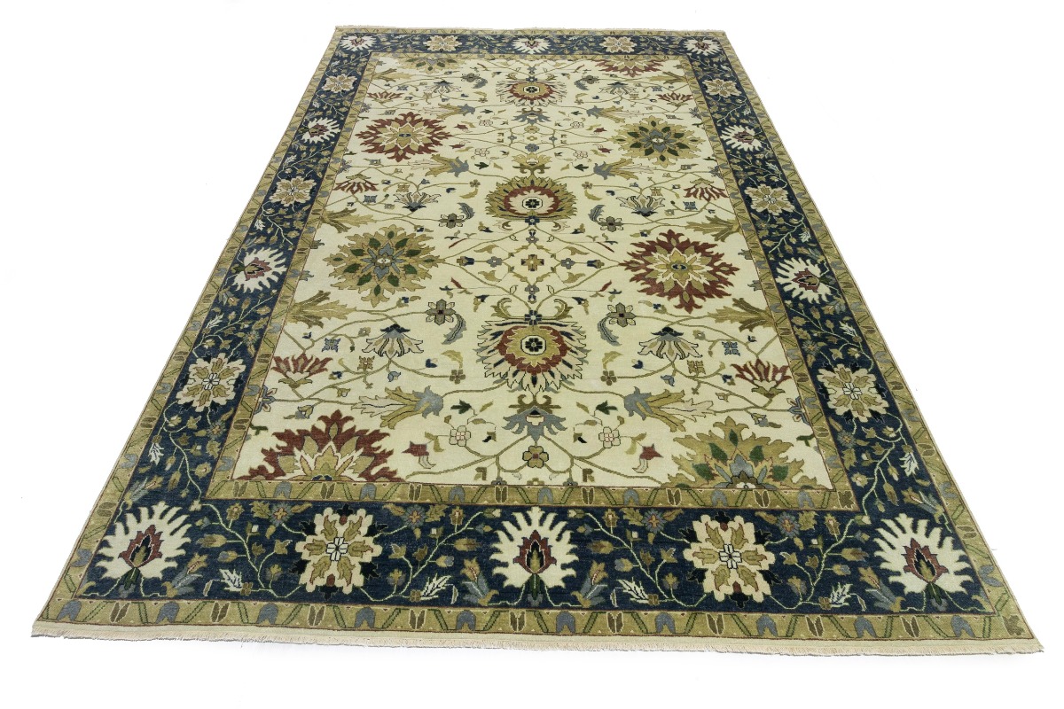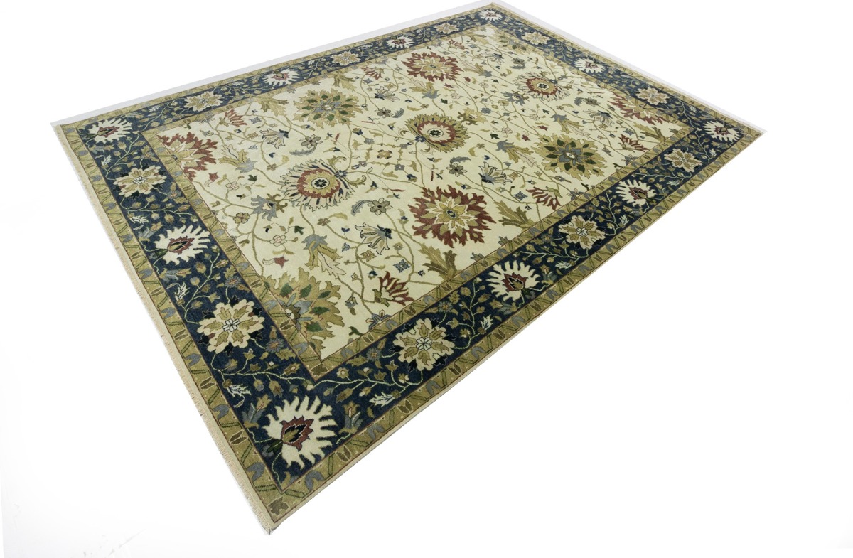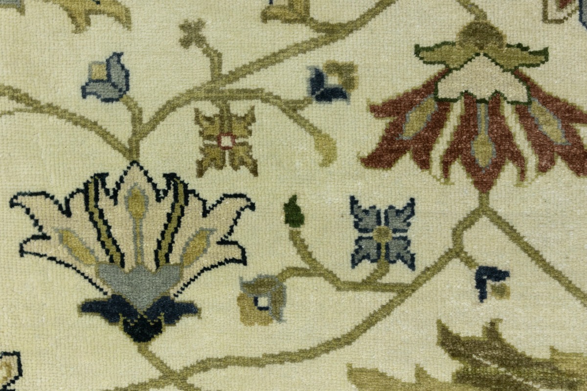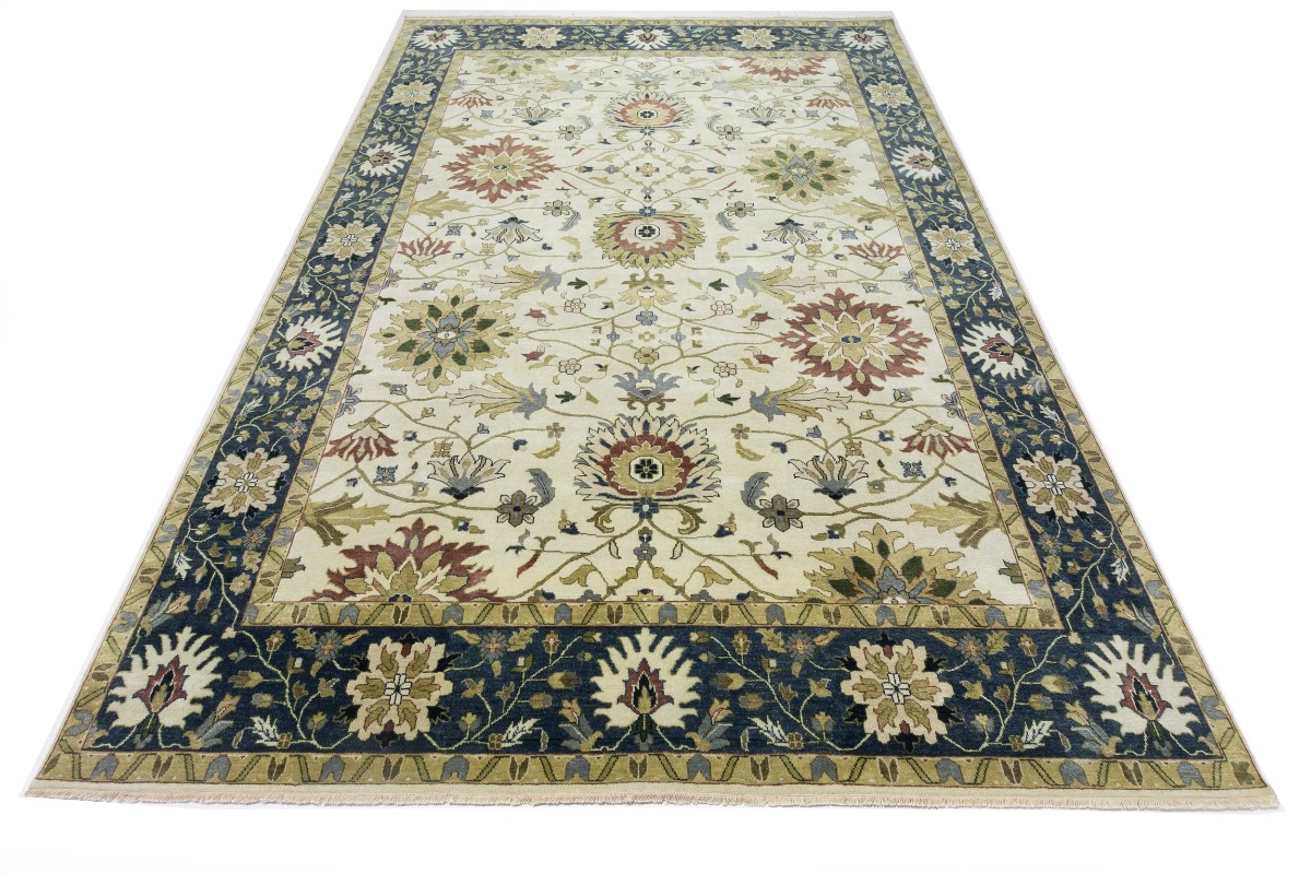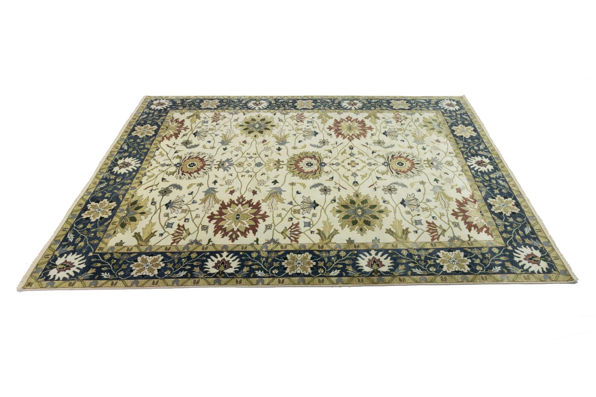 This genuine 10X14 cream new Oriental rug was made by the hands of gifted weavers inspired by a variety of spectacular artistic designs, to recreate the aged look of the original piece with a richness of color and ornately patterned background field. What set this vintage style Oriental area rug from the others are the material and dye used (wool pile and cotton foundation), knot count, ancient designs, fantastic grades, and its regional historical connection: it has deep roots, from the story of the people who produced it to the meaning of the symbols and colors displayed across its canvas that have been praised for centuries. This Indian home décor carpet will be completely cozy and inviting that never will go out of style! Also, this Oriental rug would be among your most valuable treasures, it is a great investment that accrues value over time, and it will last for generations because was woven with high-quality, all-natural wool. Environmentally friendly, opulent yet affordable; this rug will give you a thorough amount of character to help define your living space with elegance and warmth that will capture the eyes and attention of your audience (homeowners, designers, decorators, family and friends). OT-8315