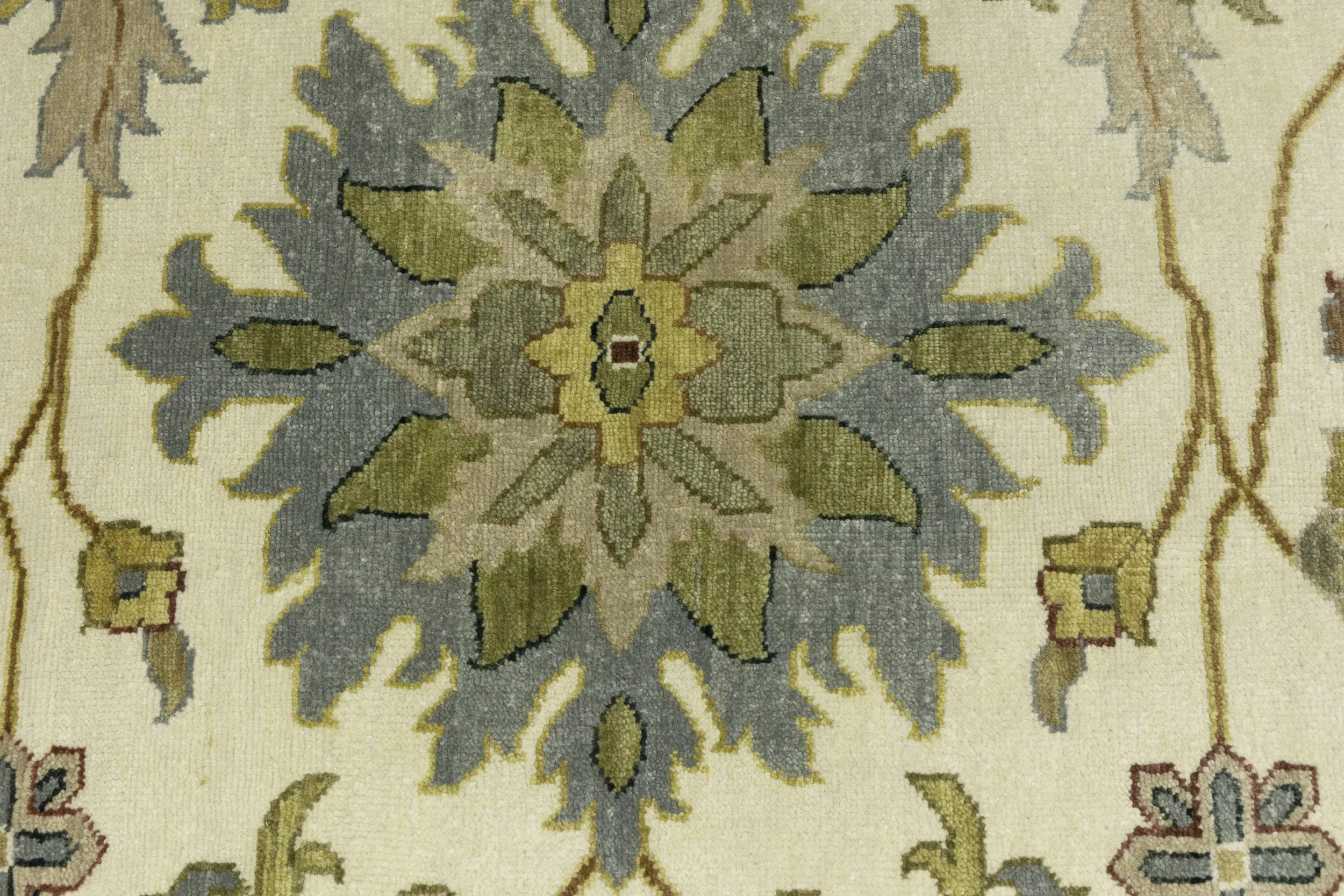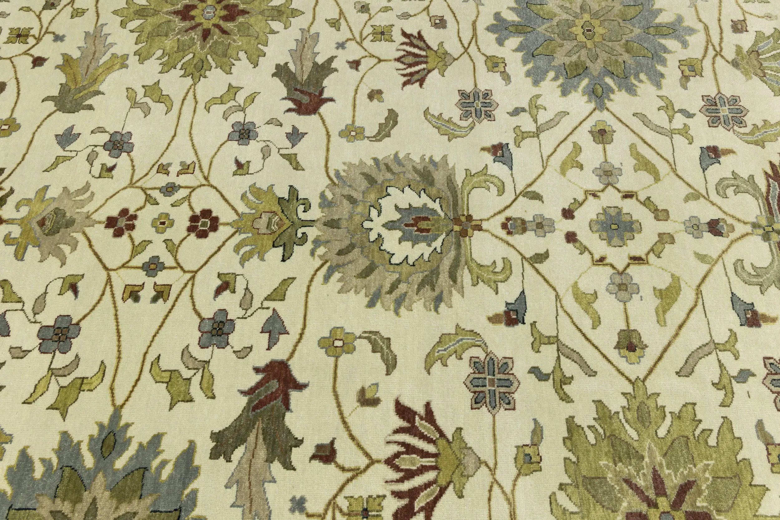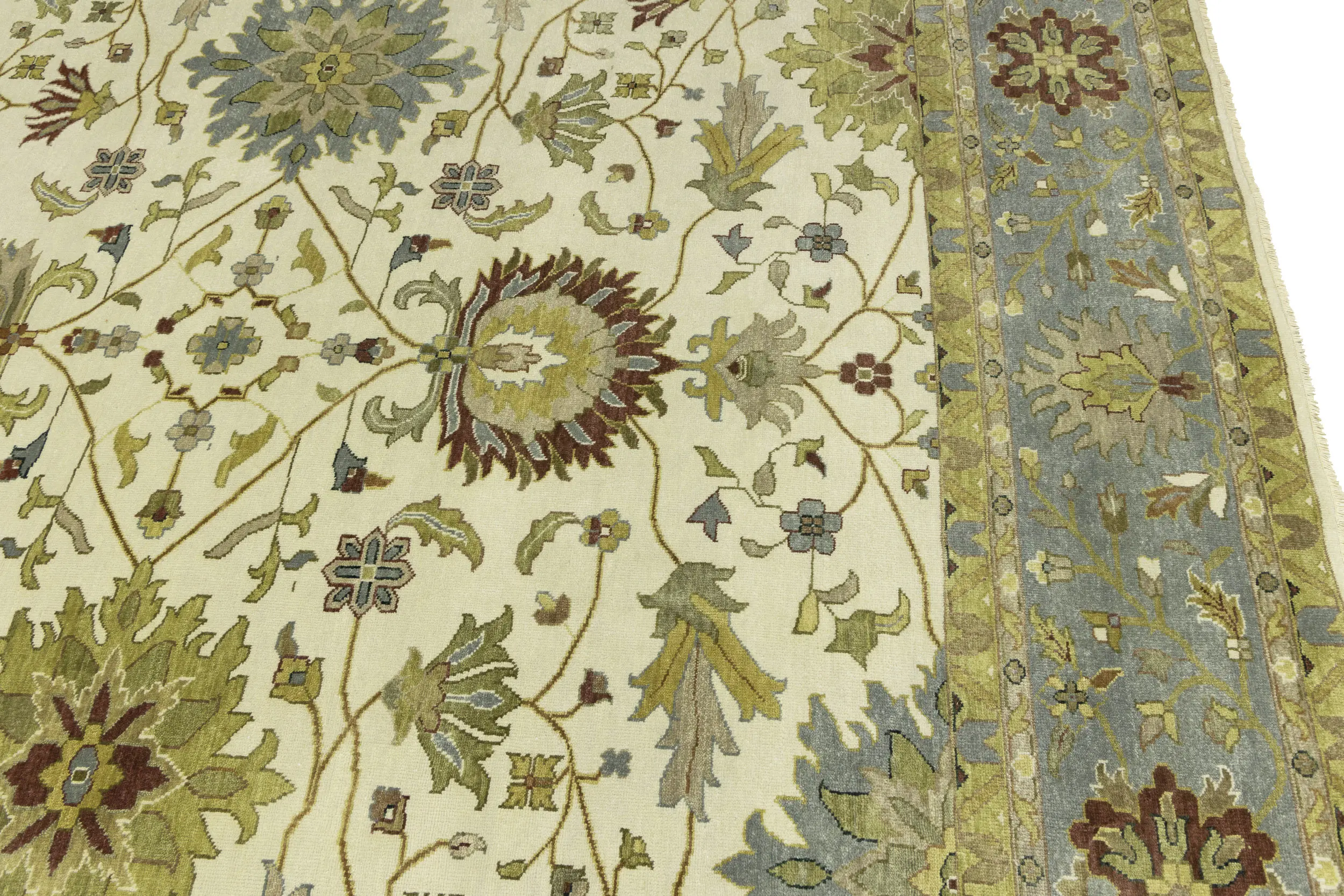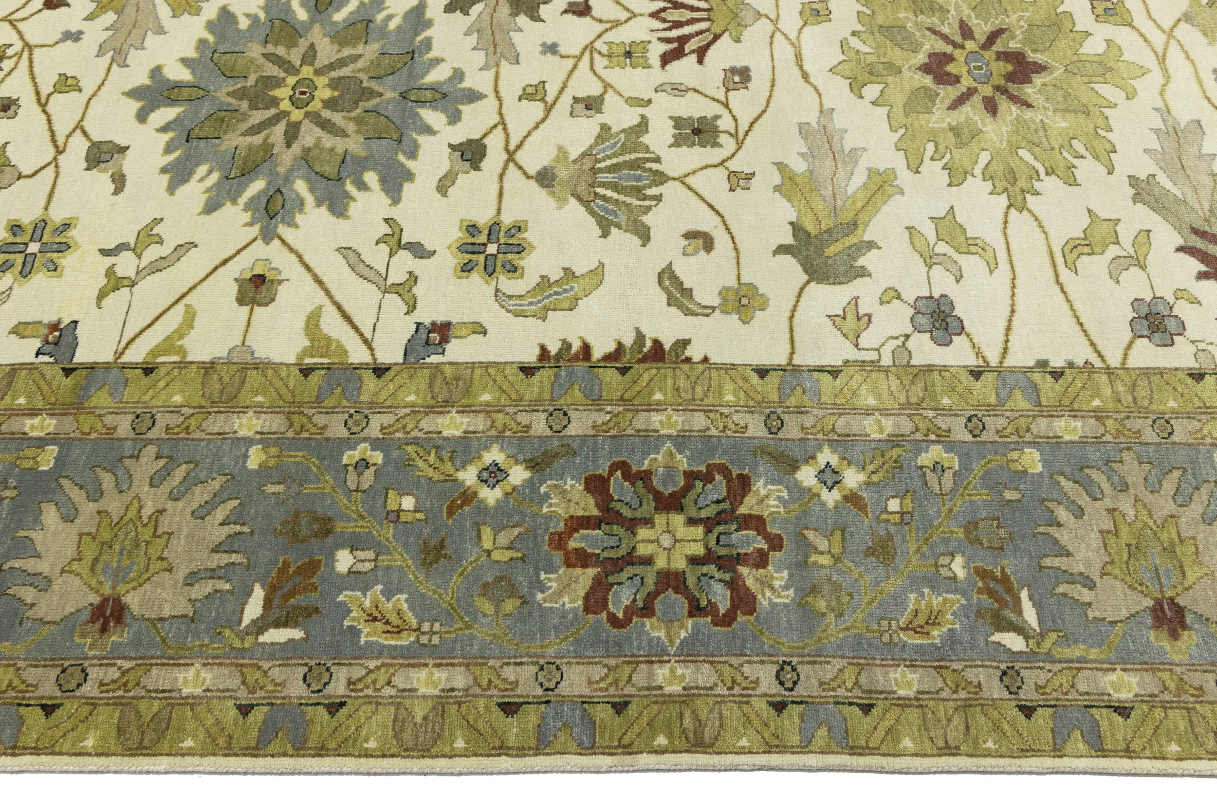 This authentic 12X15 cream new Oriental rug was crafted by the hands of skilled weavers enthused by a variety of lovely artistic designs, to recreate the aged look of the unique piece with a richness of color and beautifully elaborated background field. What set this vintage style Oriental area rug from the others are the material and dye used (wool pile and cotton foundation), knot count, ancient designs, fantastic grades, and its regional historical connection: it has deep roots, from the story of the people who produced it to the meaning of the symbols and colors displayed across its canvas that have been praised for centuries. This Indian home décor carpet will be completely cozy and inviting that never will go out of style! Also, this Oriental rug would be among your most valuable treasures, it is a great investment that increase in value over time, and it will last for generations because was woven with high-quality, all-natural wool. Environmentally friendly, opulent yet affordable; this rug/runner will give you a thorough amount of character to help define your living space with sophistication and warmth that will capture the eyes and attention of your audience (homeowners, designers, decorators, family and friends).