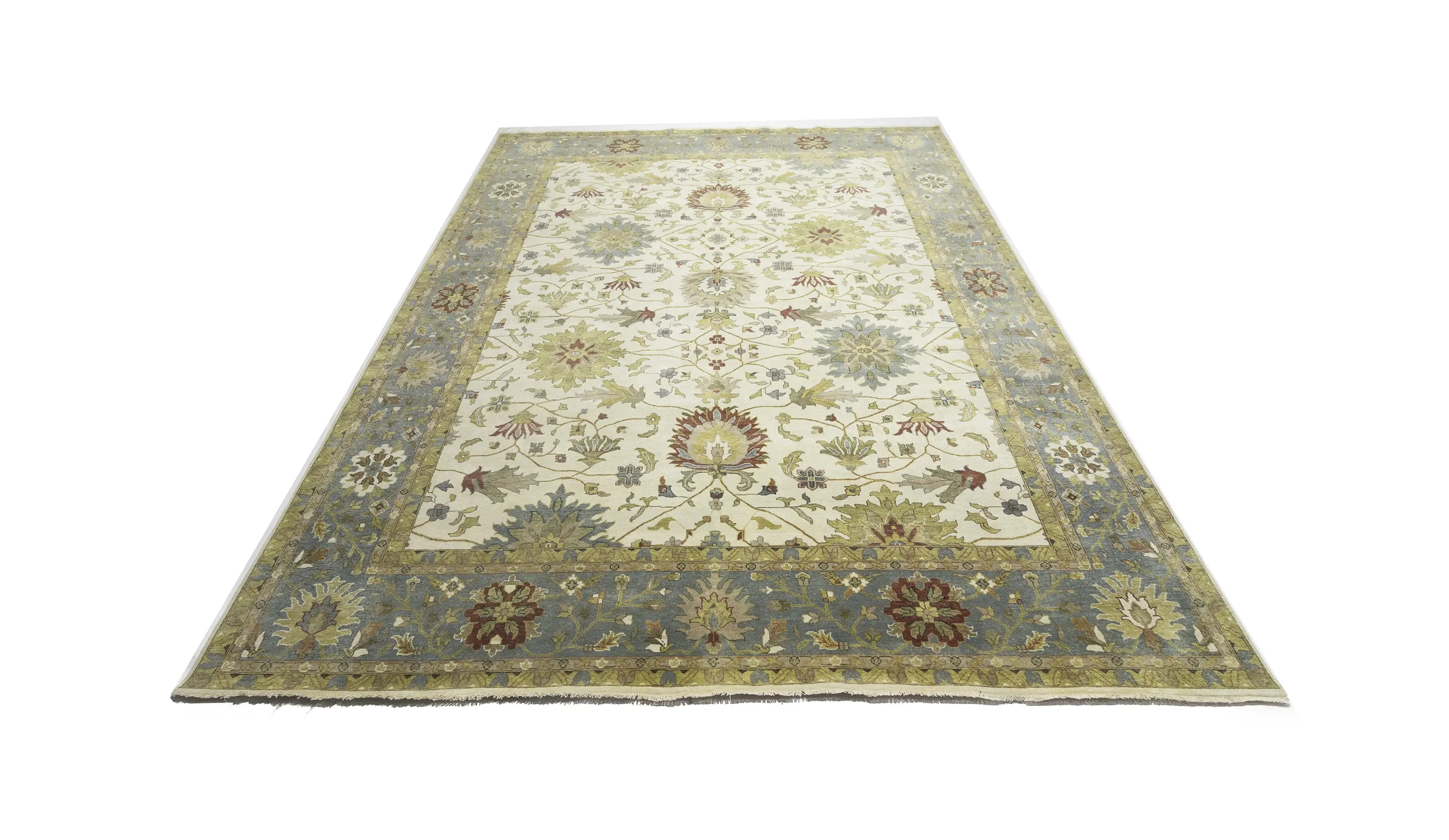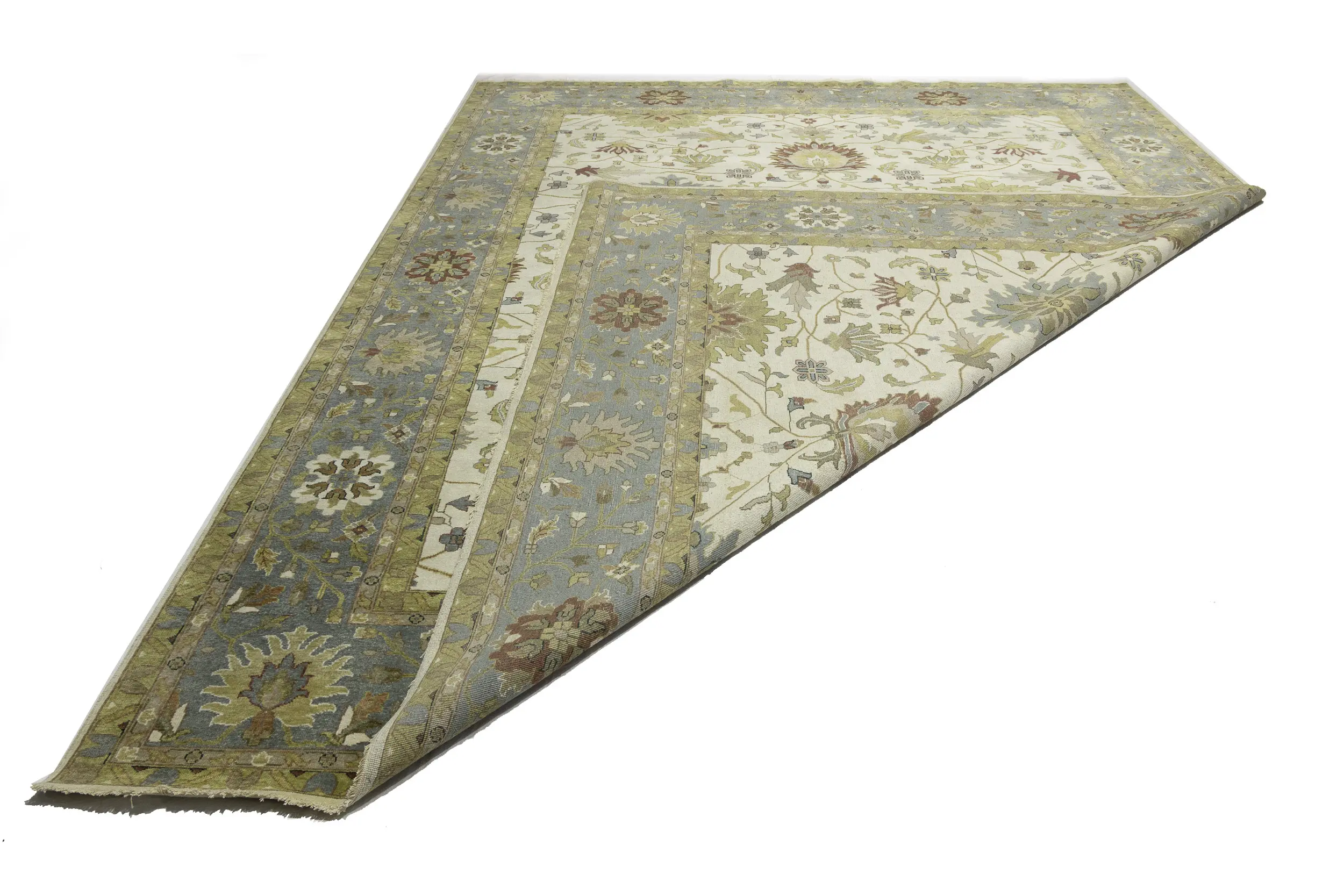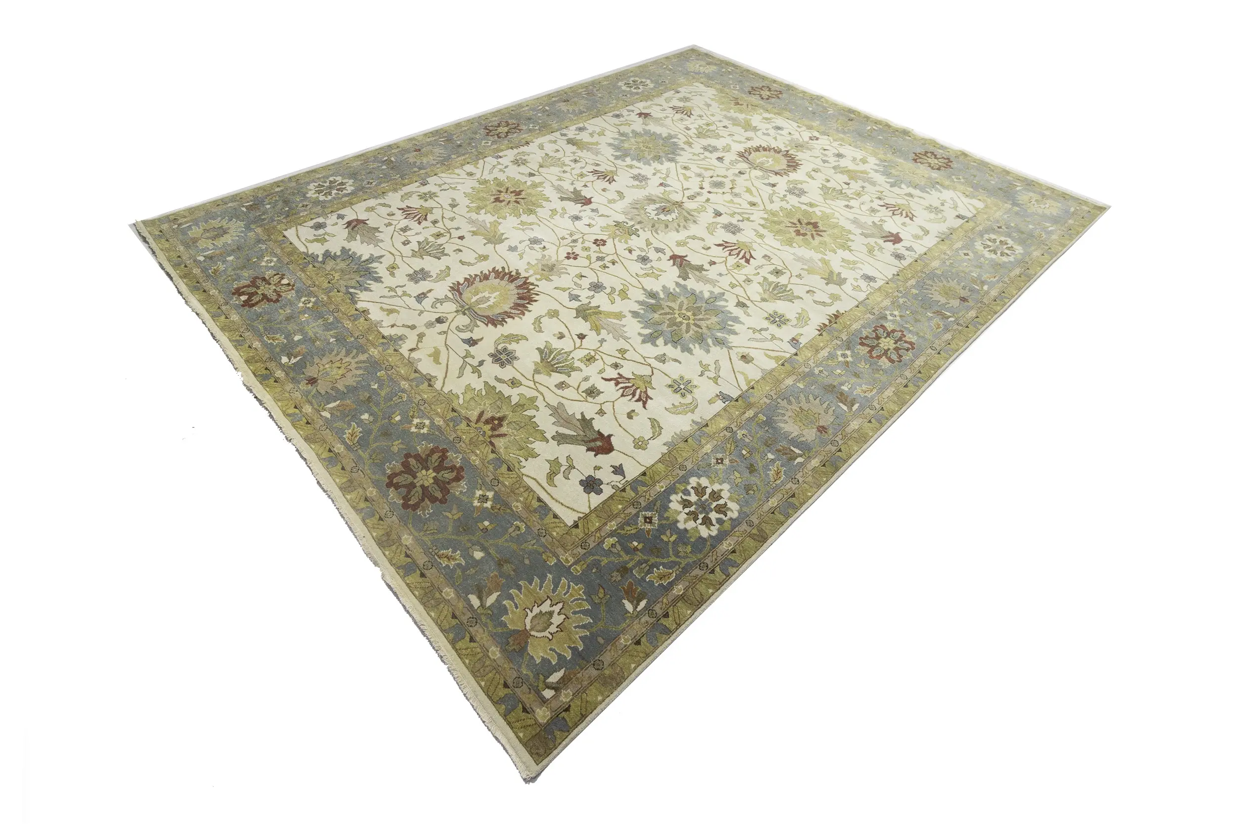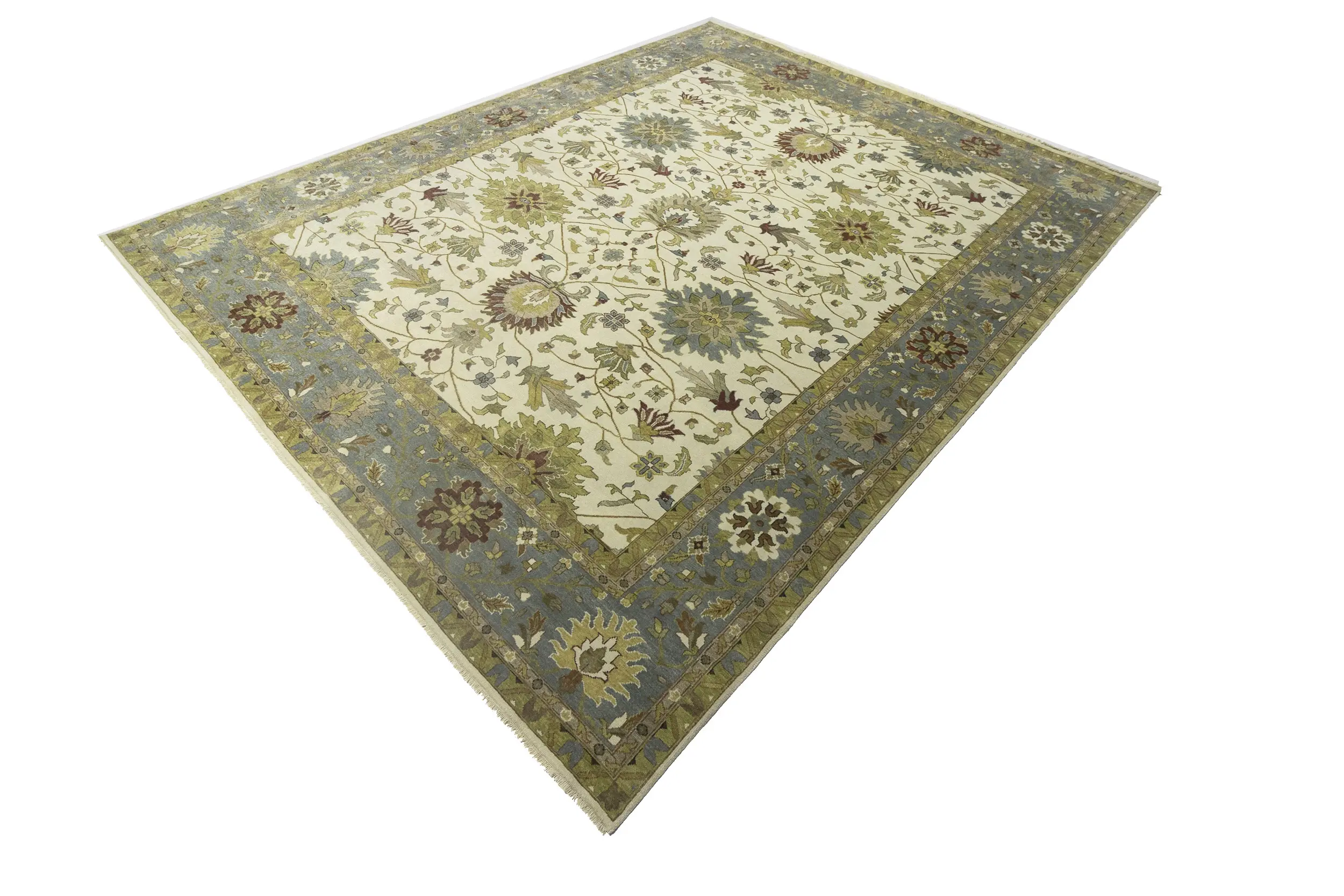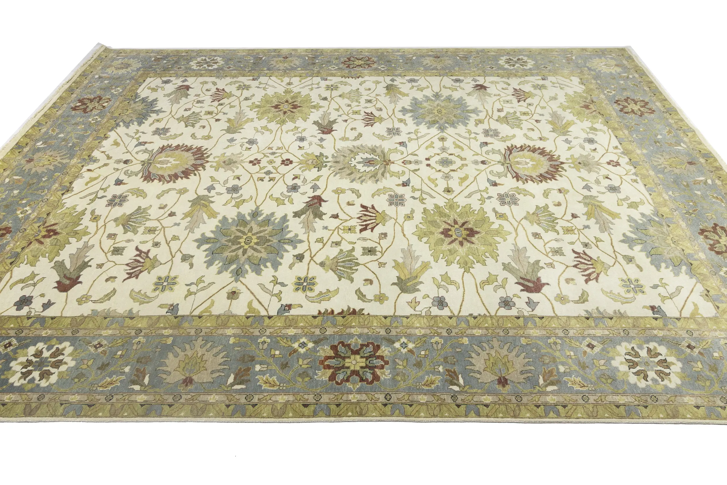 Hand Knotted 12X15 cream oriental rug made with natural dyes (fine wool pile and cotton foundation), superior knot count, and appealing ancient designs. This Oriental rug never will go out of style and would be among your most valuable treasures.