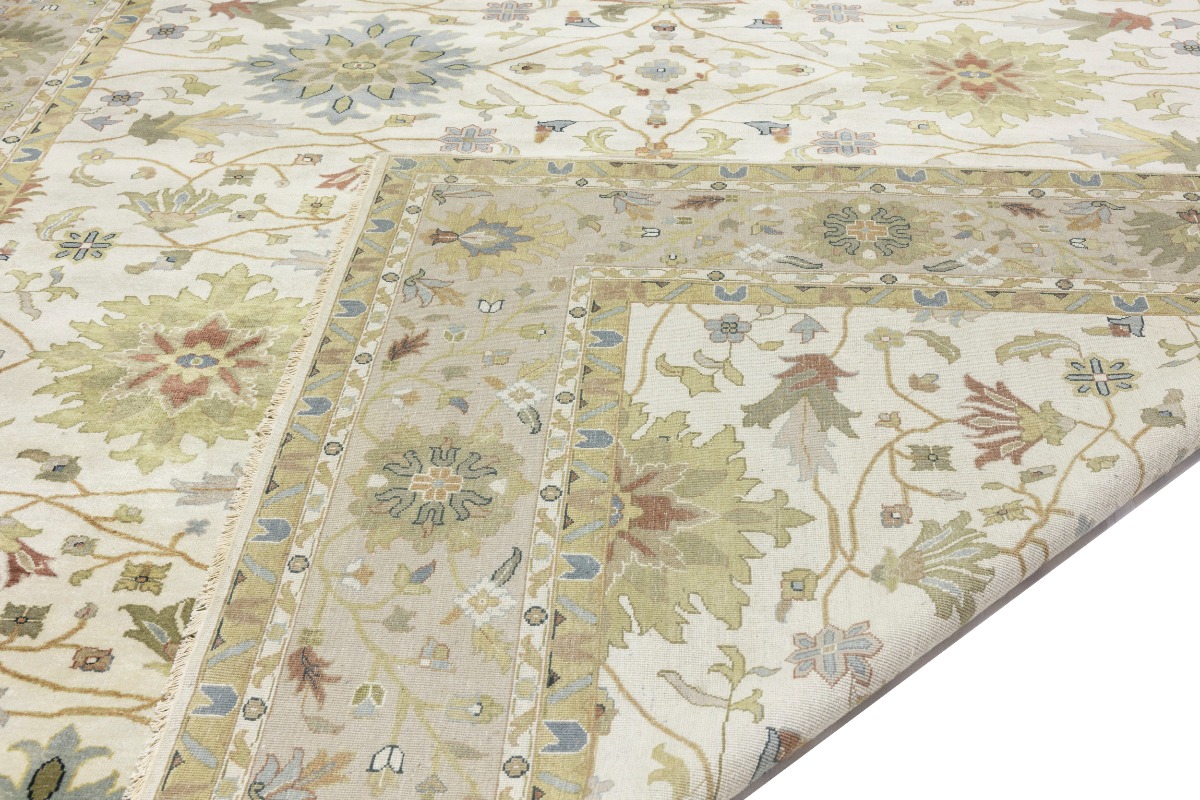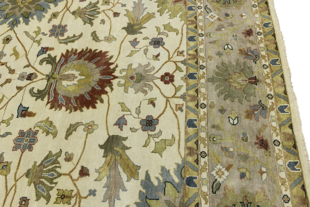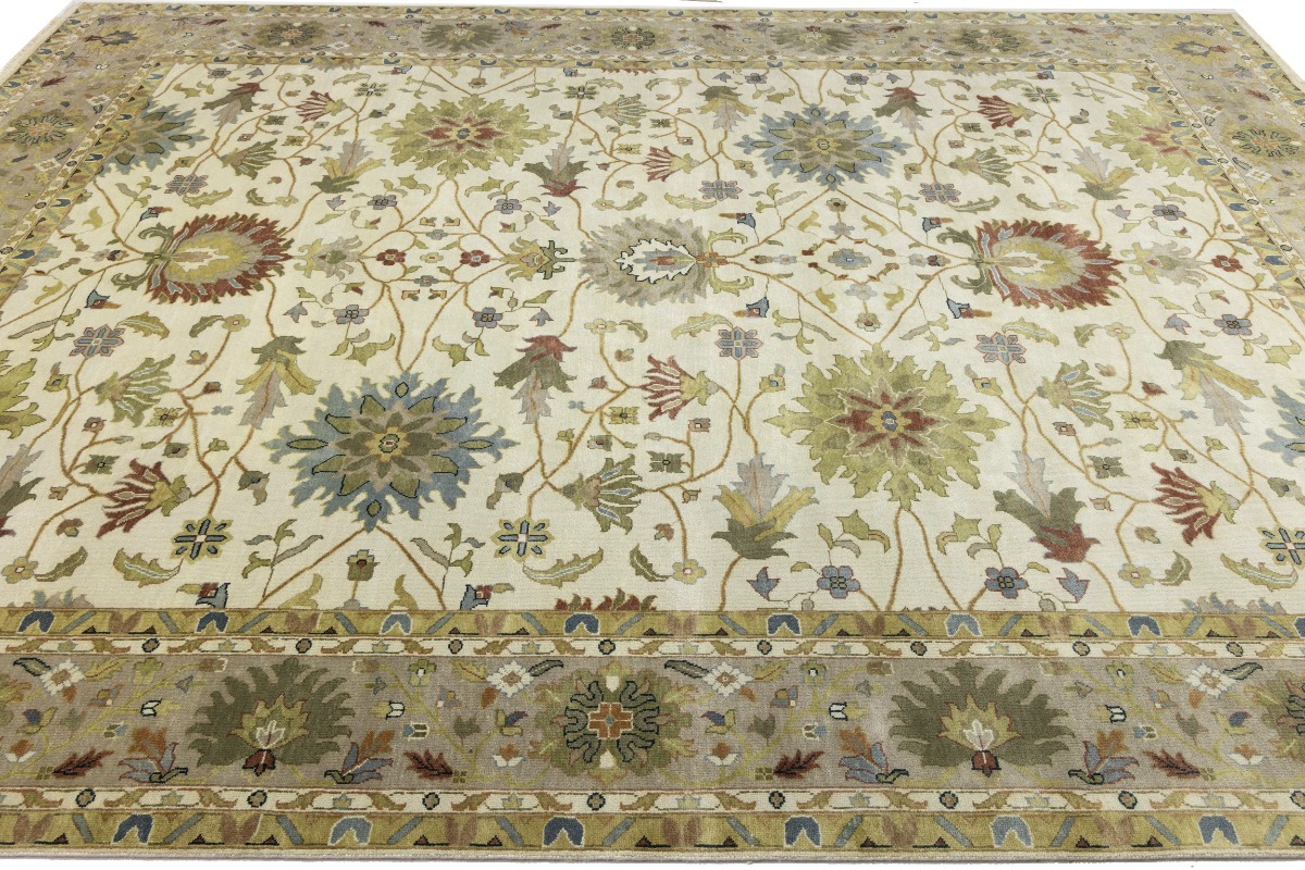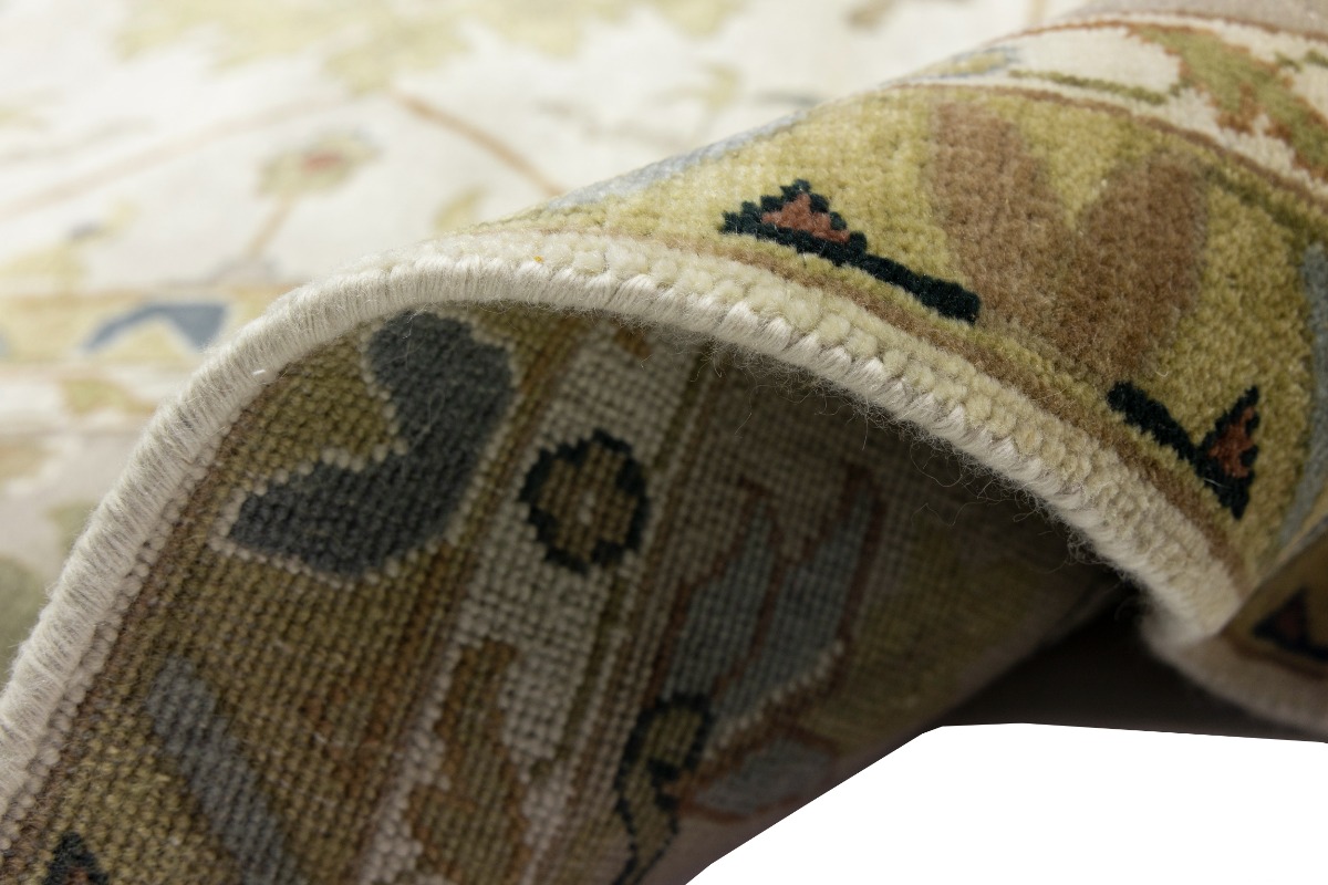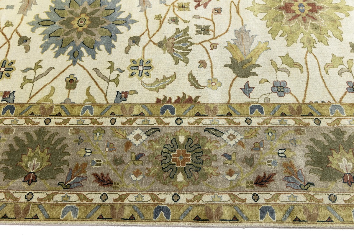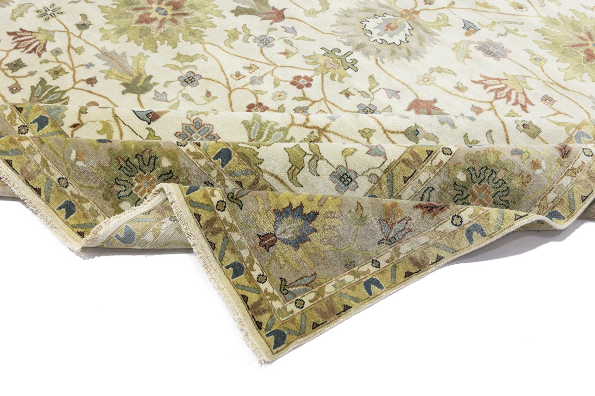 This genuine 12X15 cream new Oriental rug was made by the hands of gifted weavers inspired by a variety of spectacular artistic designs, to recreate the aged look of the original piece with a richness of color and ornately patterned background field. What set this vintage style Oriental area rug from the others are the material and dye used (wool pile and cotton foundation), knot count, ancient designs, fantastic grades, and its regional historical connection: it has deep roots, from the story of the people who produced it to the meaning of the symbols and colors displayed across its canvas that have been praised for centuries. This Indian home décor carpet will be completely cozy and inviting that never will go out of style! Also, this Oriental rug would be among your most valuable treasures, it is a great investment that accrues value over time, and it will last for generations because was woven with high-quality, all-natural wool. Environmentally friendly, opulent yet affordable; this rug will give you a thorough amount of character to help define your living space with elegance and warmth that will capture the eyes and attention of your audience (homeowners, designers, decorators, family and friends). OT-8292