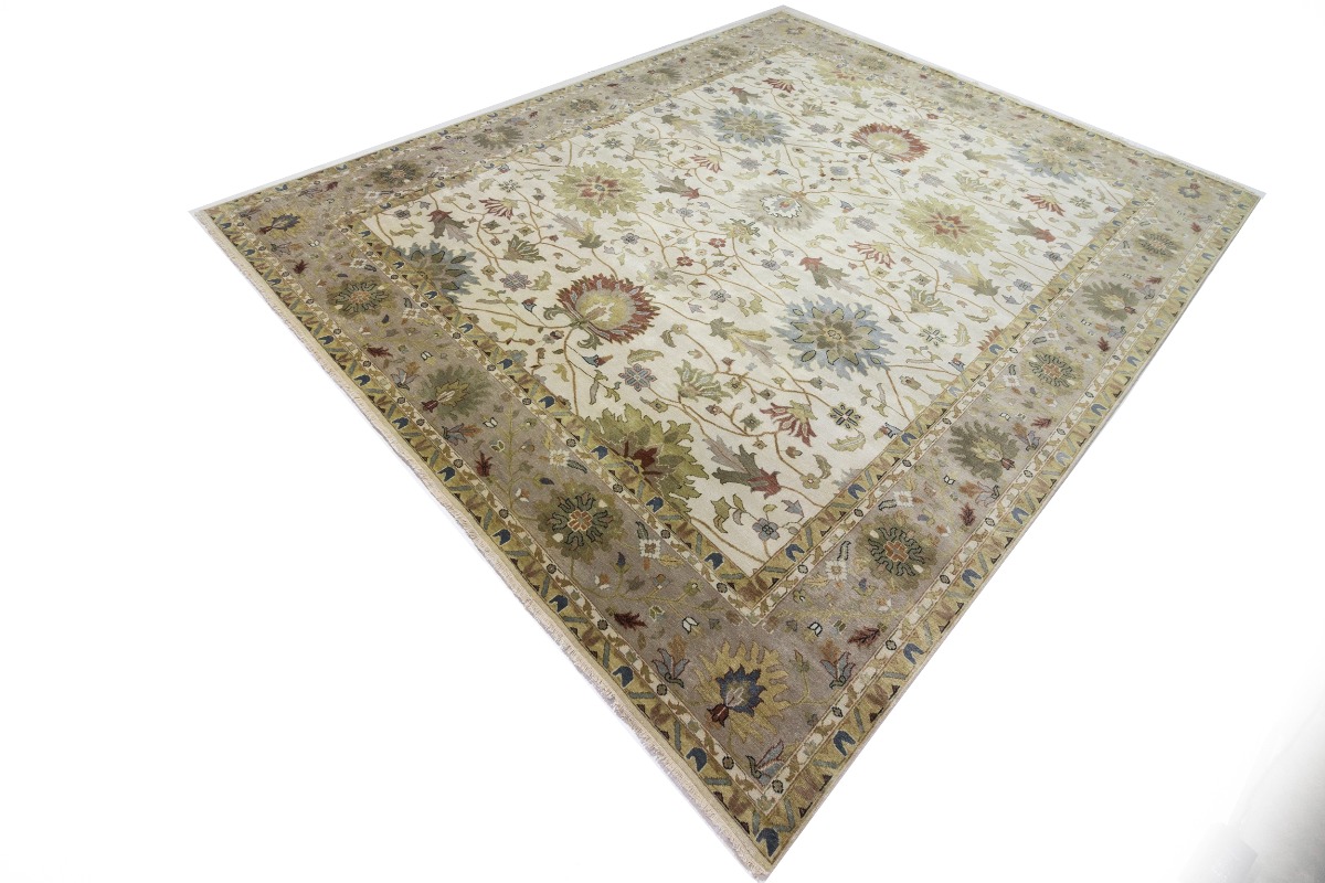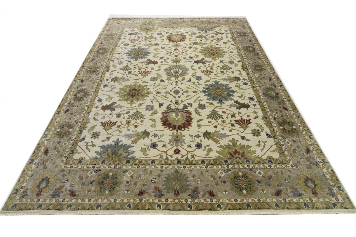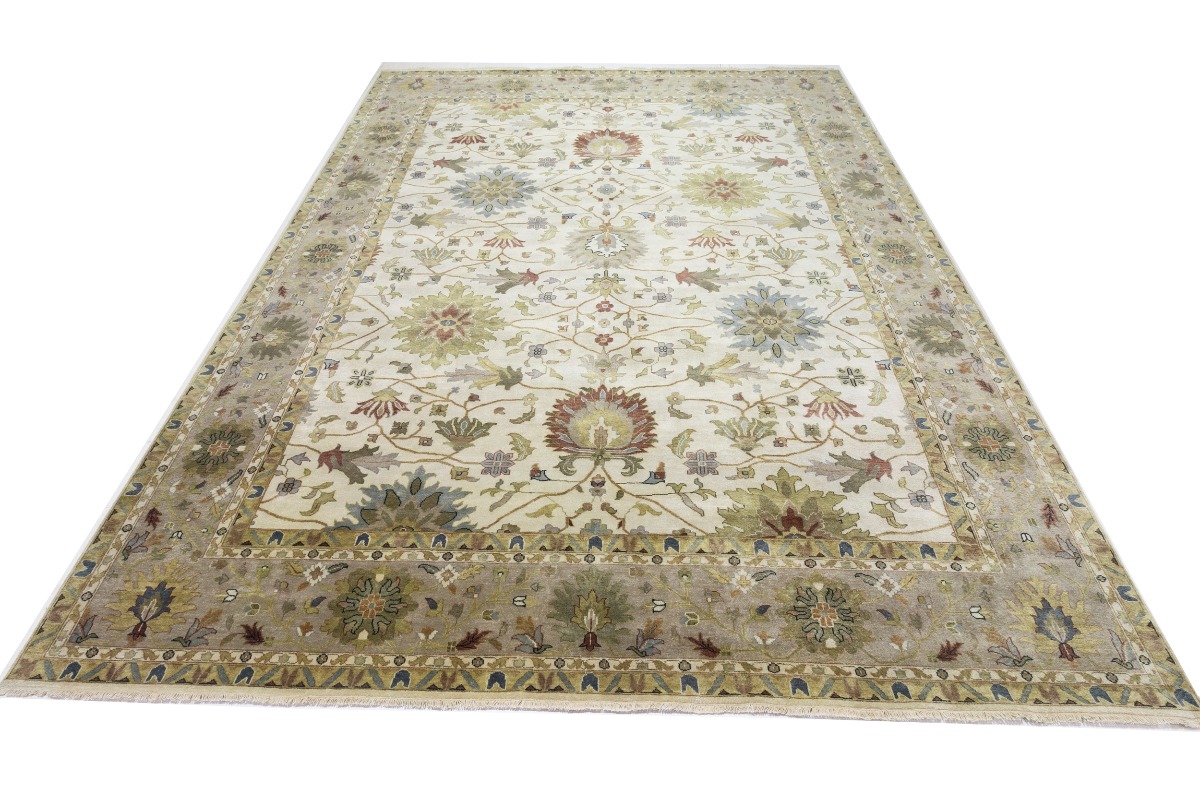 Hand Knotted 12X15 cream Oriental rug made with vegetable dyes (fine wool pile and cotton foundation), superior knot count, and appealing ancient designs. This Oriental rug never will go out of style and would be among your most valuable treasures.