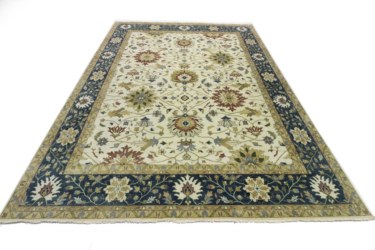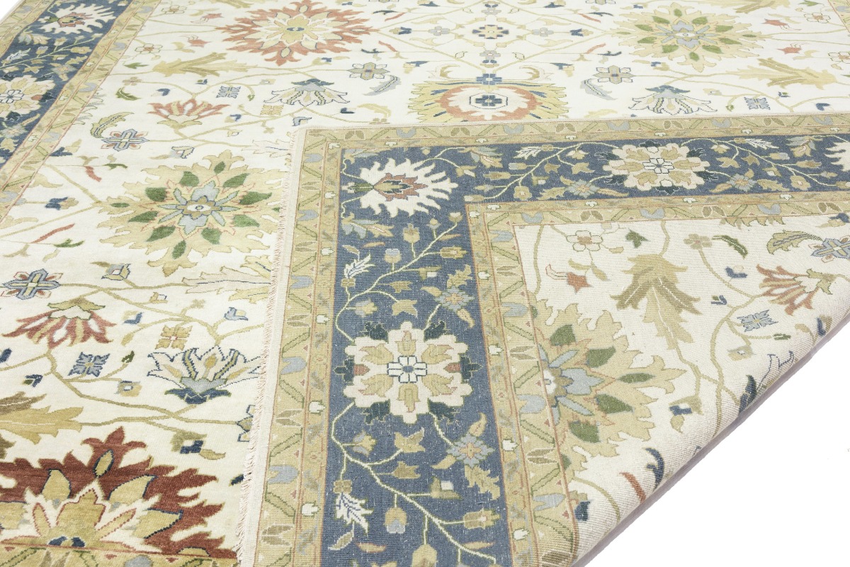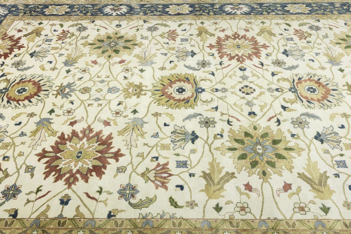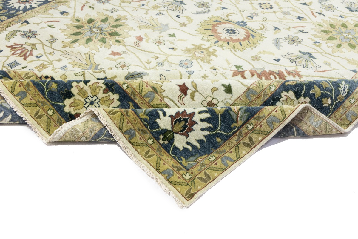 This genuine 12X15 cream new Oriental rug was made by the hands of gifted weavers inspired by a variety of spectacular artistic designs, to recreate the aged look of the original piece with a richness of color and ornately patterned background field. What set this vintage style Oriental area rug from the others are the material and dye used (wool pile and cotton foundation), knot count, ancient designs, fantastic grades, and its regional historical connection: it has deep roots, from the story of the people who produced it to the meaning of the symbols and colors displayed across its canvas that have been praised for centuries. This Indian home décor carpet will be completely cozy and inviting that never will go out of style! Also, this Oriental rug would be among your most valuable treasures, it is a great investment that accrues value over time, and it will last for generations because was woven with high-quality, all-natural wool. Environmentally friendly, opulent yet affordable; this rug will give you a thorough amount of character to help define your living space with elegance and warmth that will capture the eyes and attention of your audience (homeowners, designers, decorators, family and friends). OT-8316