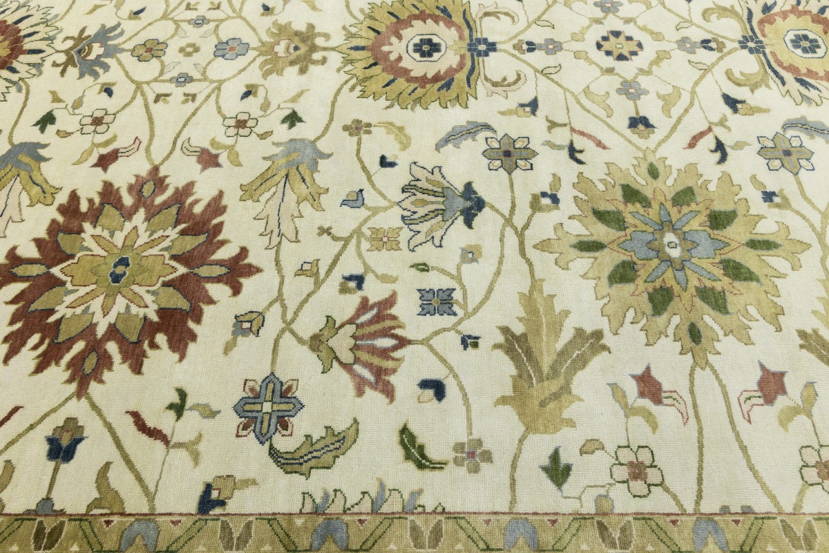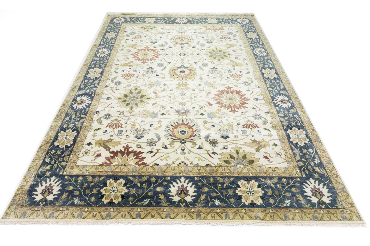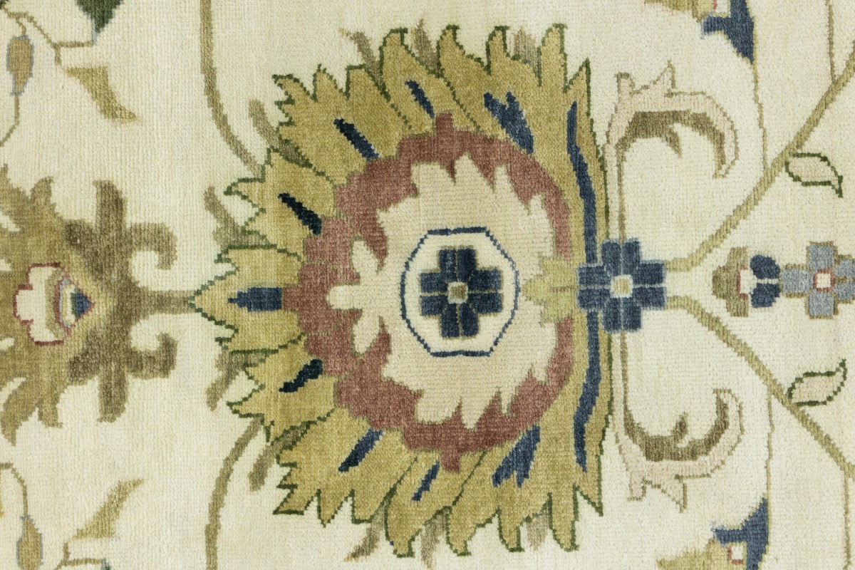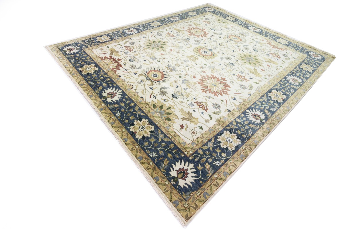 This genuine 12X15 cream new Oriental rug was made by the hands of gifted weavers inspired by a variety of spectacular artistic designs, to recreate the aged look of the original piece with a richness of color and ornately patterned background field. What set this vintage style Oriental area rug from the others are the material and dye used (wool pile and cotton foundation), knot count, ancient designs, fantastic grades, and its regional historical connection: it has deep roots, from the story of the people who produced it to the meaning of the symbols and colors displayed across its canvas that have been praised for centuries. This Indian home décor carpet will be completely cozy and inviting that never will go out of style! Also, this Oriental rug would be among your most valuable treasures, it is a great investment that accrues value over time, and it will last for generations because was woven with high-quality, all-natural wool. Environmentally friendly, opulent yet affordable; this rug will give you a thorough amount of character to help define your living space with elegance and warmth that will capture the eyes and attention of your audience (homeowners, designers, decorators, family and friends). OT-8316