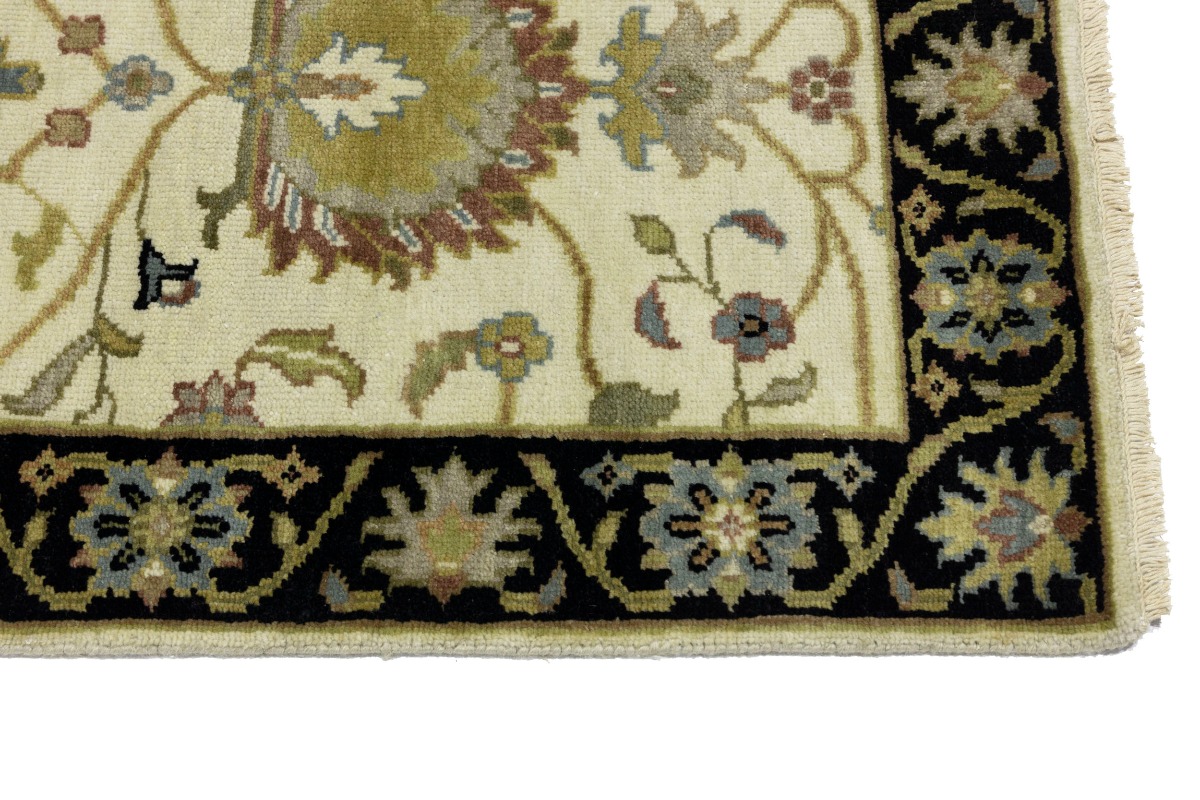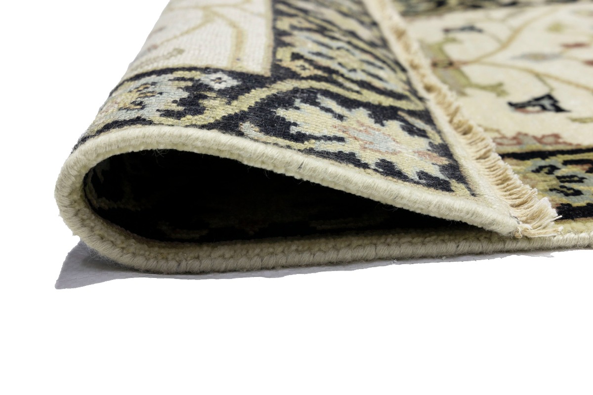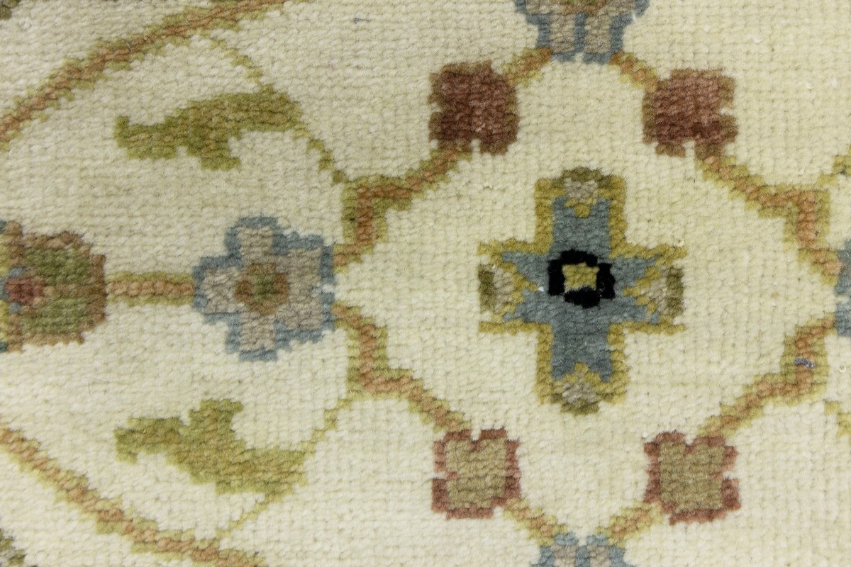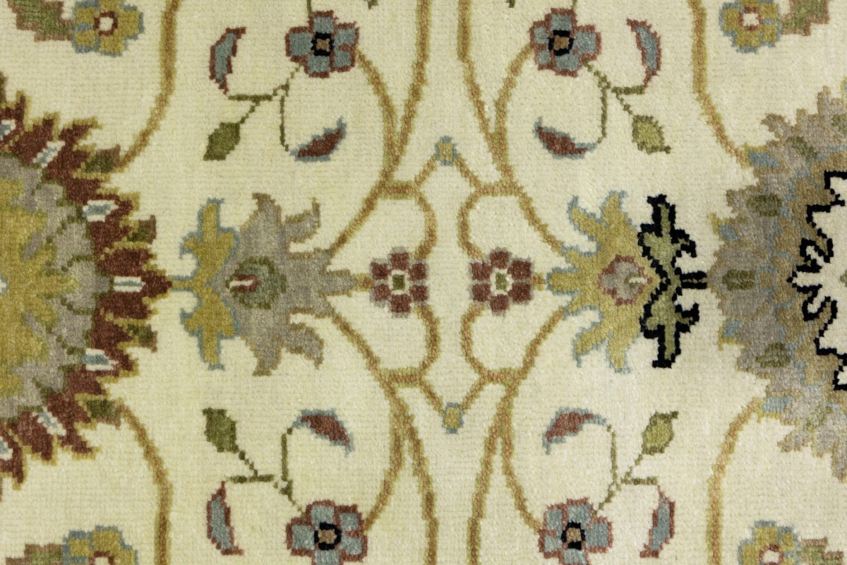 This authentic 2'5X12 cream new Oriental runner was crafted by the hands of skilled weavers enthused by a variety of lovely artistic designs, to recreate the aged look of the unique piece with a richness of color and beautifully elaborated background field. What set this vintage style Oriental area runner from the others are the material and dye used (wool pile and cotton foundation), knot count, ancient designs, fantastic grades, and its regional historical connection: it has deep roots, from the story of the people who produced it to the meaning of the symbols and colors displayed across its canvas that have been praised for centuries. This Indian home décor carpet will be completely cozy and inviting that never will go out of style! Also, this Oriental rug would be among your most valuable treasures, it is a great investment that increase in value over time, and it will last for generations because was woven with high-quality, all-natural wool. Environmentally friendly, opulent yet affordable; this runner will give you a thorough amount of character to help define your living space with sophistication and warmth that will capture the eyes and attention of your audience (homeowners, designers, decorators, family and friends). OT-9053