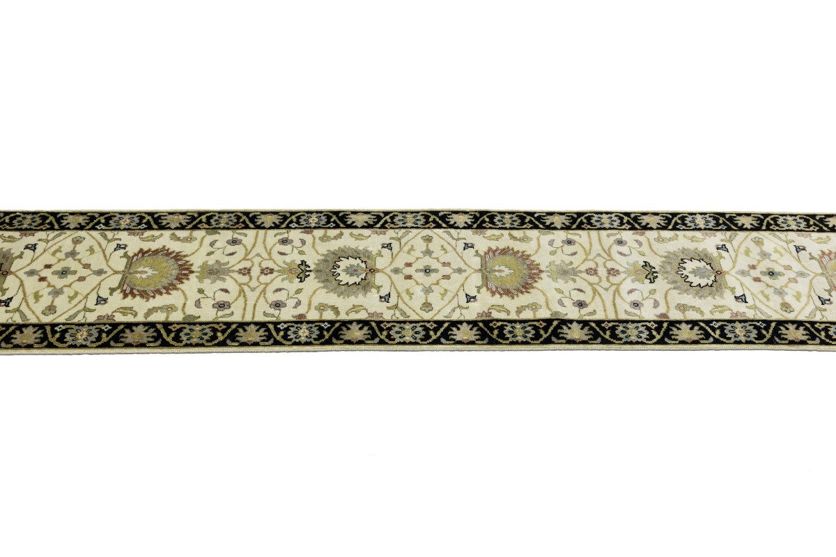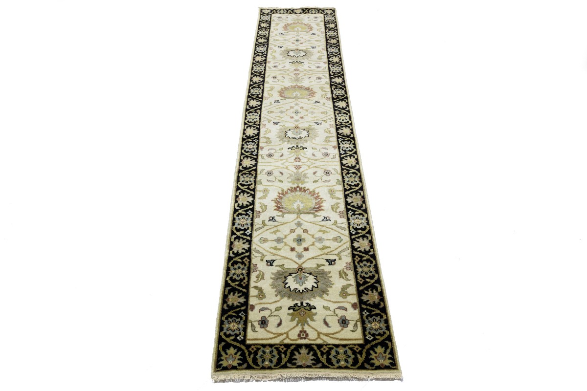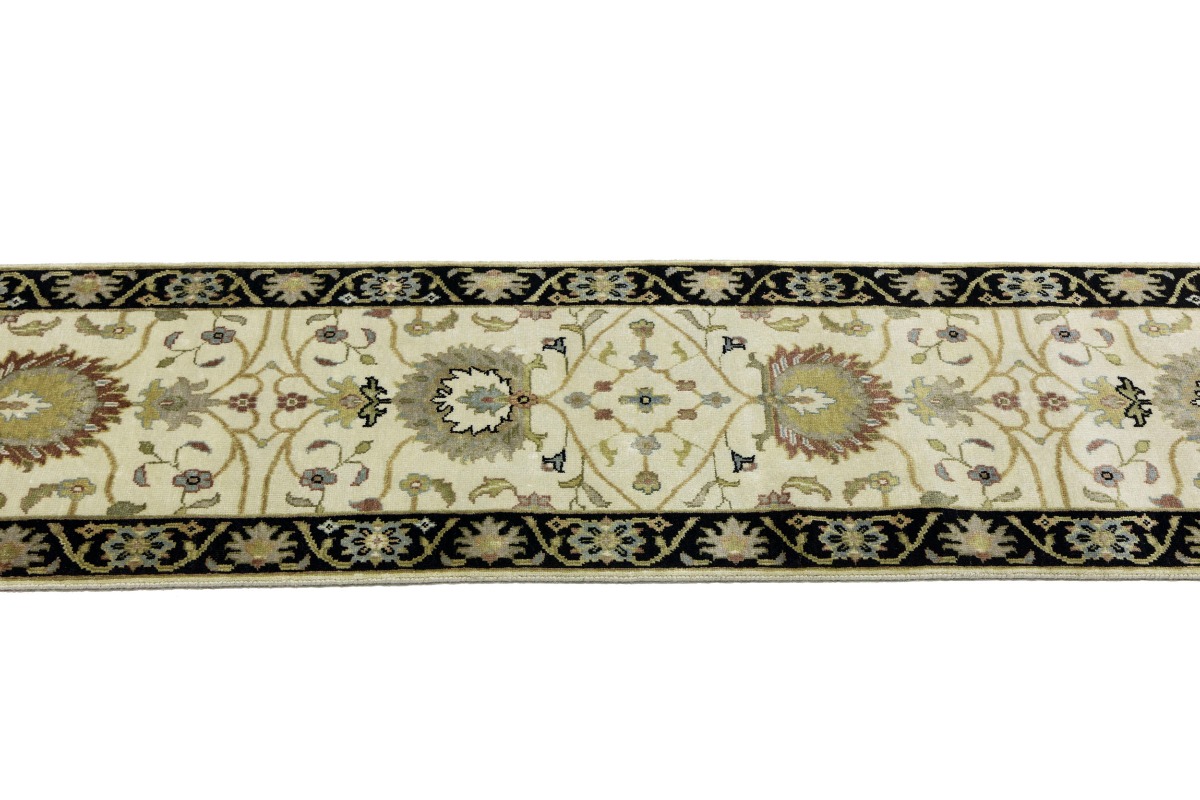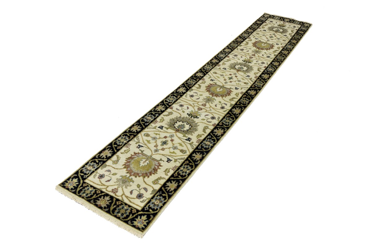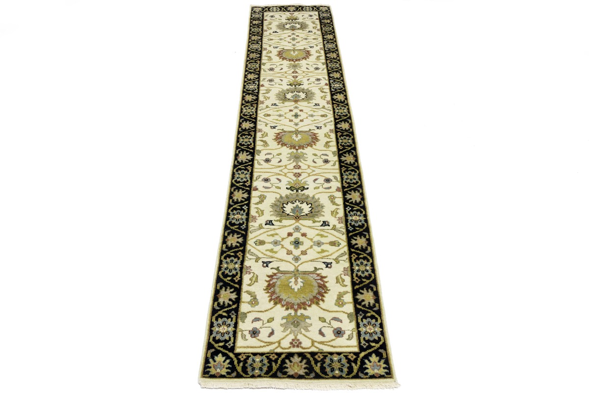 Hand Knotted 2'5X12 cream oriental runner made with vegetable dyes (fine wool pile and cotton foundation), superior knot count, and appealing ancient designs. This Oriental runner never will go out of style and would be among your most valuable treasures.