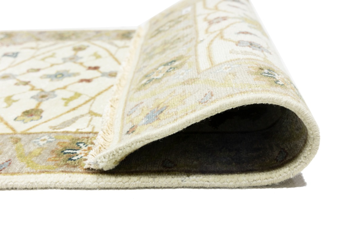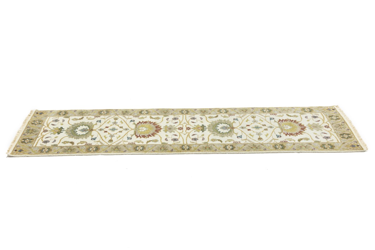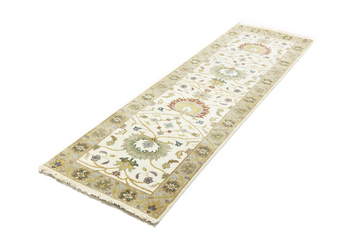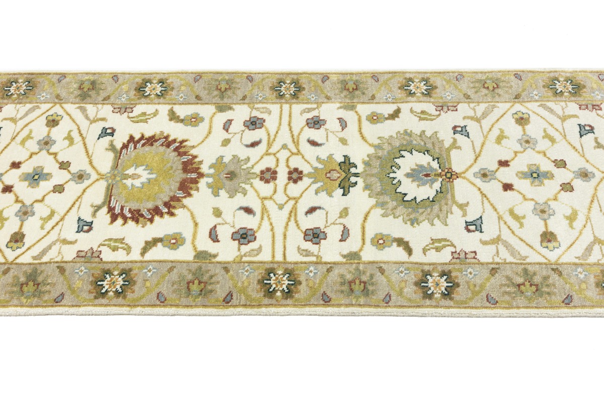 Handmade 2'5X8 cream oriental runner made with vegetable dyes (fine wool pile and cotton foundation), superior knot count, and appealing ancient designs. This Oriental runner never will go out of style and would be among your most valuable treasures.