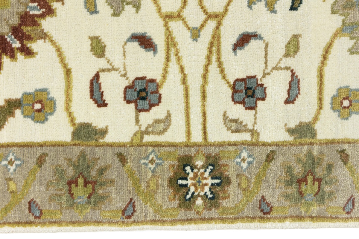 This authentic 2'5X8 cream new Oriental runner was crafted by the hands of skilled weavers enthused by a variety of lovely artistic designs, to recreate the aged look of the unique piece with a richness of color and beautifully elaborated background field. What set this vintage style Oriental area runner from the others are the material and dye used (wool pile and cotton foundation), knot count, ancient designs, fantastic grades, and its regional historical connection: it has deep roots, from the story of the people who produced it to the meaning of the symbols and colors displayed across its canvas that have been praised for centuries. This Indian home décor carpet will be completely cozy and inviting that never will go out of style! Also, this Oriental rug would be among your most valuable treasures, it is a great investment that increase in value over time, and it will last for generations because was woven with high-quality, all-natural wool. Environmentally friendly, opulent yet affordable; this runner will give you a thorough amount of character to help define your living space with sophistication and warmth that will capture the eyes and attention of your audience (homeowners, designers, decorators, family and friends). OT-8294