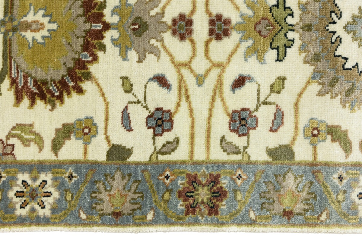 This authentic 2'5X8 cream new Oriental runner was crafted by the hands of skilled weavers enthused by a variety of lovely artistic designs, to recreate the aged look of the unique piece with a richness of color and beautifully elaborated background field. What set this vintage style Oriental area runner from the others are the material and dye used (wool pile and cotton foundation), knot count, ancient designs, fantastic grades, and its regional historical connection: it has deep roots, from the story of the people who produced it to the meaning of the symbols and colors displayed across its canvas that have been praised for centuries. This Indian home décor carpet will be completely cozy and inviting that never will go out of style! Also, this Oriental rug would be among your most valuable treasures, it is a great investment that increase in value over time, and it will last for generations because was woven with high-quality, all-natural wool. Environmentally friendly, opulent yet affordable; this runner will give you a thorough amount of character to help define your living space with sophistication and warmth that will capture the eyes and attention of your audience (homeowners, designers, decorators, family and friends). OT-8306