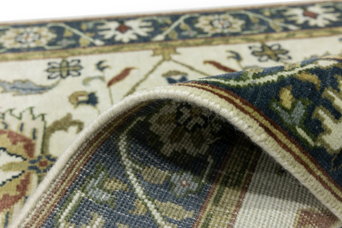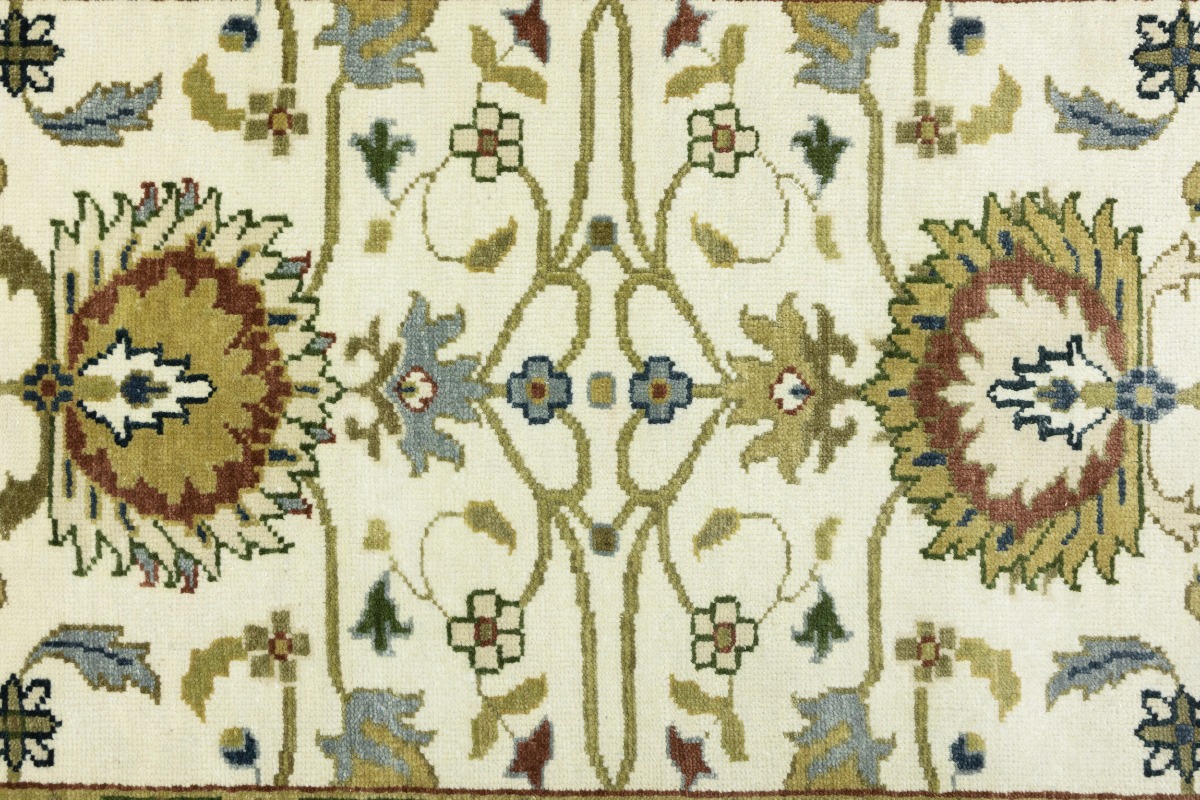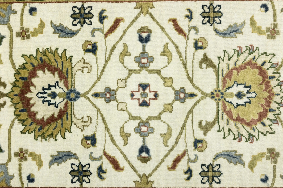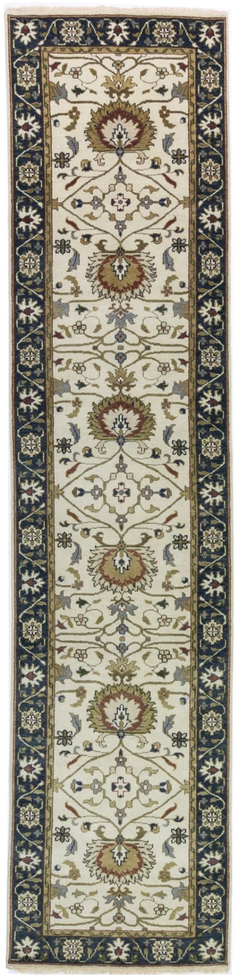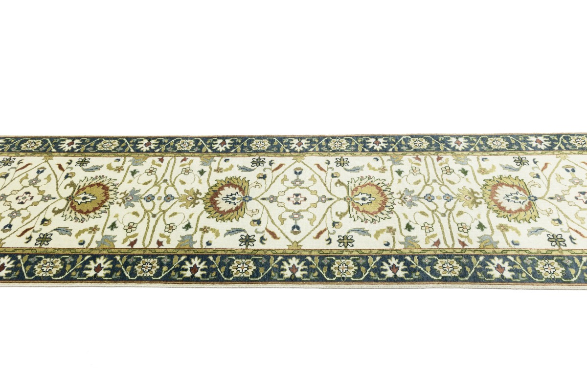 This authentic 3X13 cream new Oriental runner was crafted by the hands of skilled weavers enthused by a variety of lovely artistic designs, to recreate the aged look of the unique piece with a richness of color and beautifully elaborated background field. What set this vintage style Oriental area runner from the others are the material and dye used (wool pile and cotton foundation), knot count, ancient designs, fantastic grades, and its regional historical connection: it has deep roots, from the story of the people who produced it to the meaning of the symbols and colors displayed across its canvas that have been praised for centuries. This Indian home décor carpet will be completely cozy and inviting that never will go out of style! Also, this Oriental rug would be among your most valuable treasures, it is a great investment that increase in value over time, and it will last for generations because was woven with high-quality, all-natural wool. Environmentally friendly, opulent yet affordable; this runner will give you a thorough amount of character to help define your living space with sophistication and warmth that will capture the eyes and attention of your audience (homeowners, designers, decorators, family and friends). OT-8320