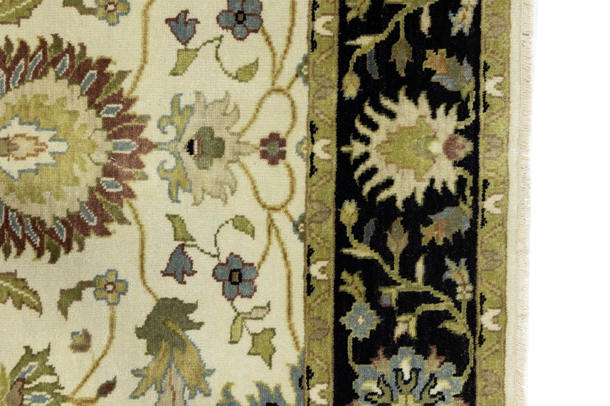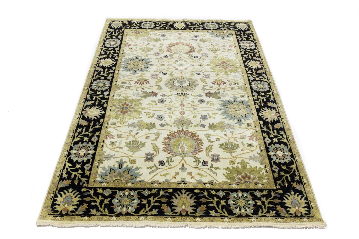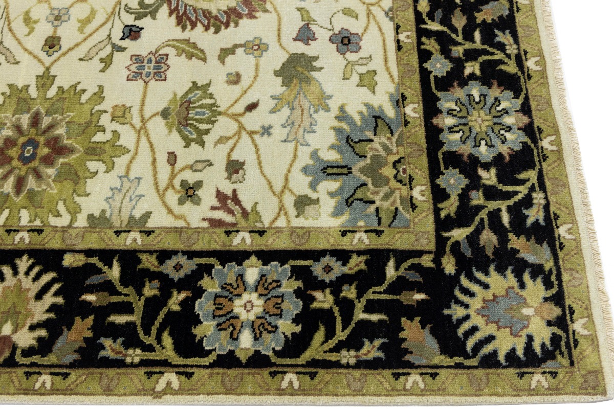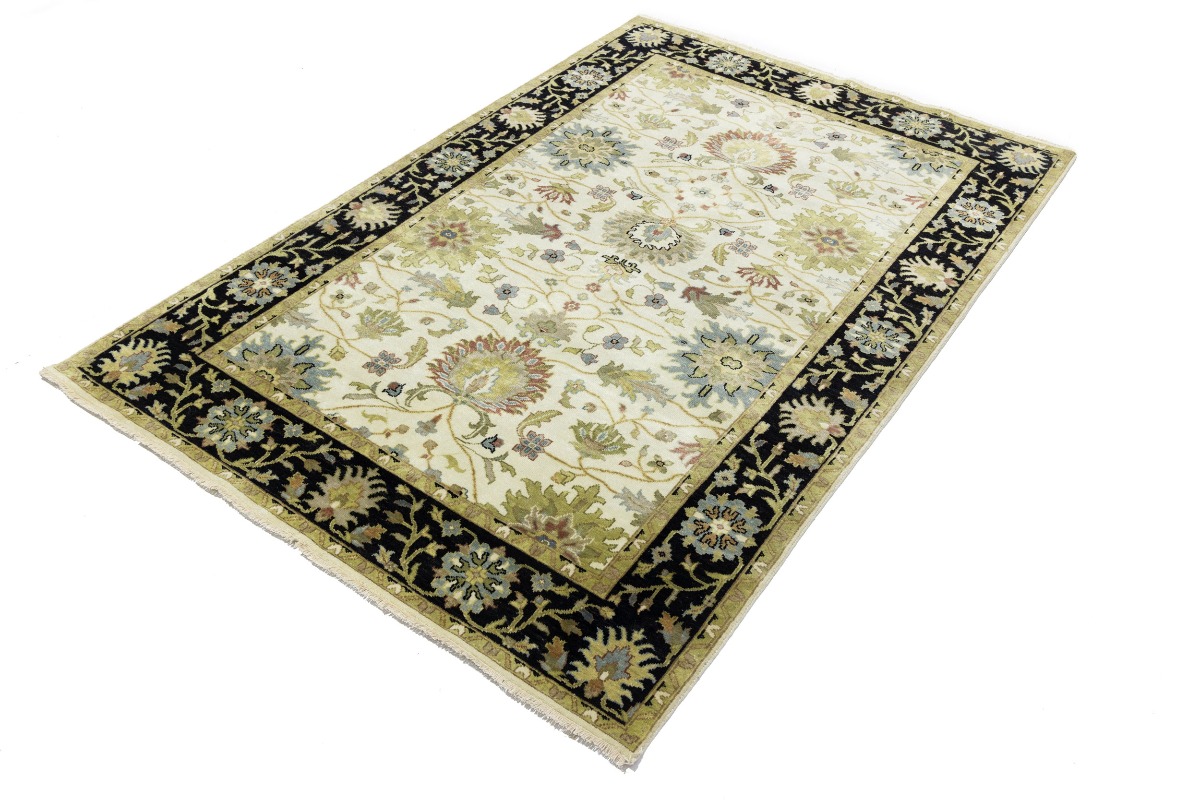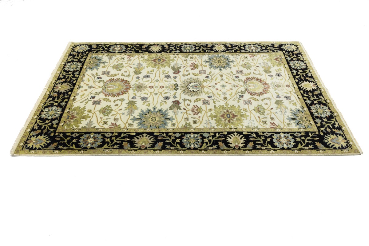 This genuine 6X9 cream new Oriental rug was made by the hands of gifted weavers inspired by a variety of spectacular artistic designs, to recreate the aged look of the original piece with a richness of color and ornately patterned background field. What set this vintage style Oriental area rug from the others are the material and dye used (wool pile and cotton foundation), knot count, ancient designs, fantastic grades, and its regional historical connection: it has deep roots, from the story of the people who produced it to the meaning of the symbols and colors displayed across its canvas that have been praised for centuries. This Indian home décor carpet will be completely cozy and inviting that never will go out of style! Also, this Oriental rug would be among your most valuable treasures, it is a great investment that accrues value over time, and it will last for generations because was woven with high-quality, all-natural wool. Environmentally friendly, opulent yet affordable; this rug will give you a thorough amount of character to help define your living space with elegance and warmth that will capture the eyes and attention of your audience (homeowners, designers, decorators, family and friends). OT-8693