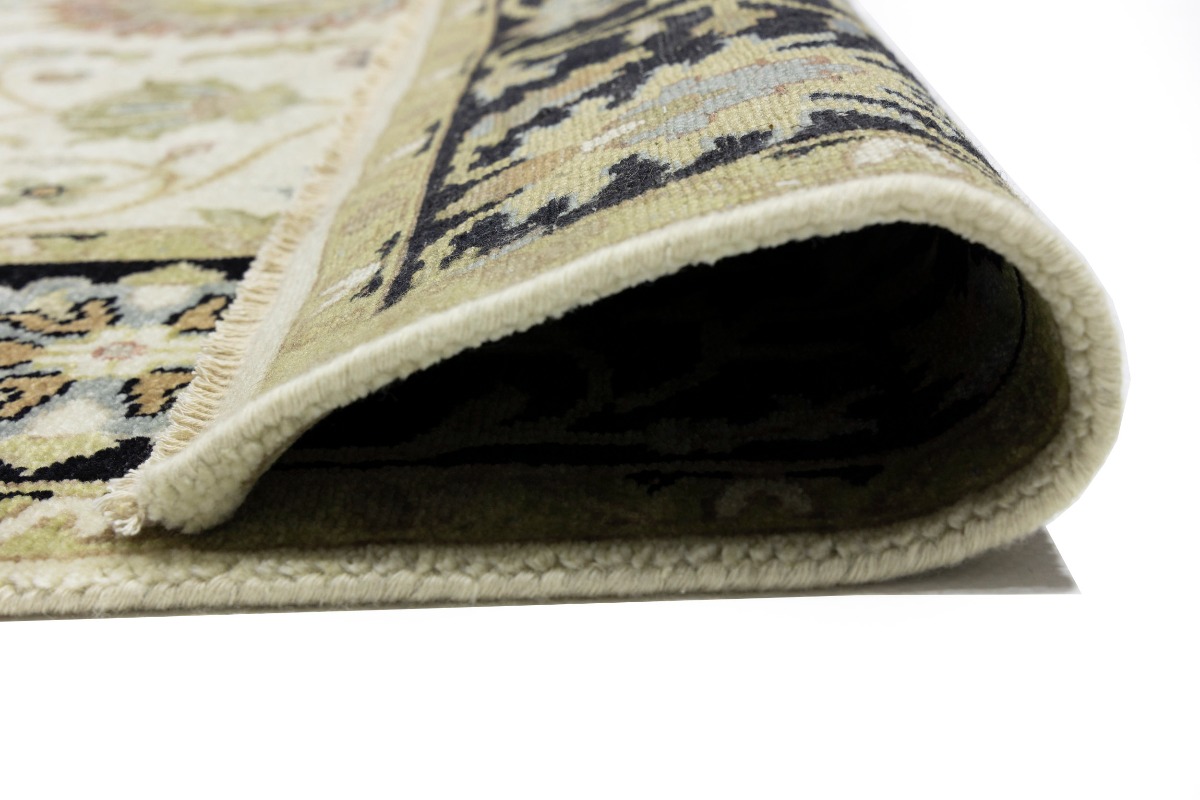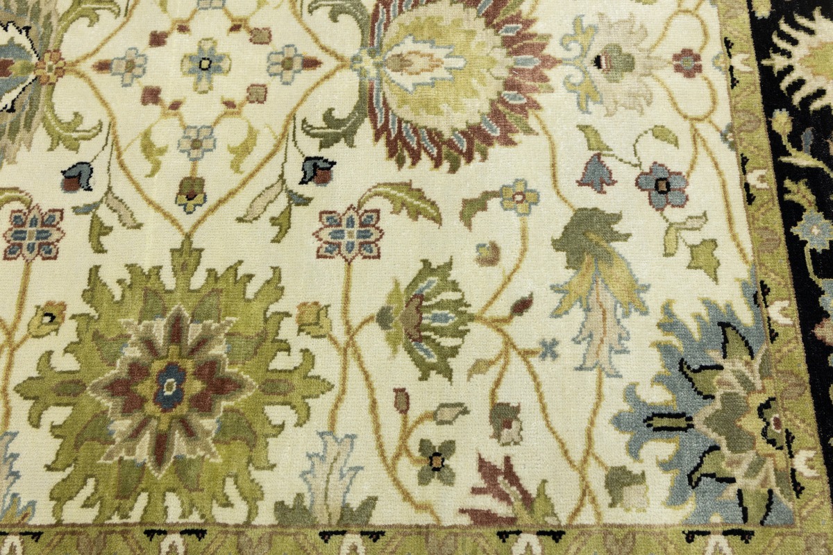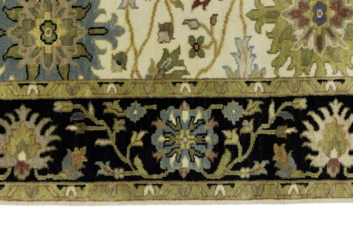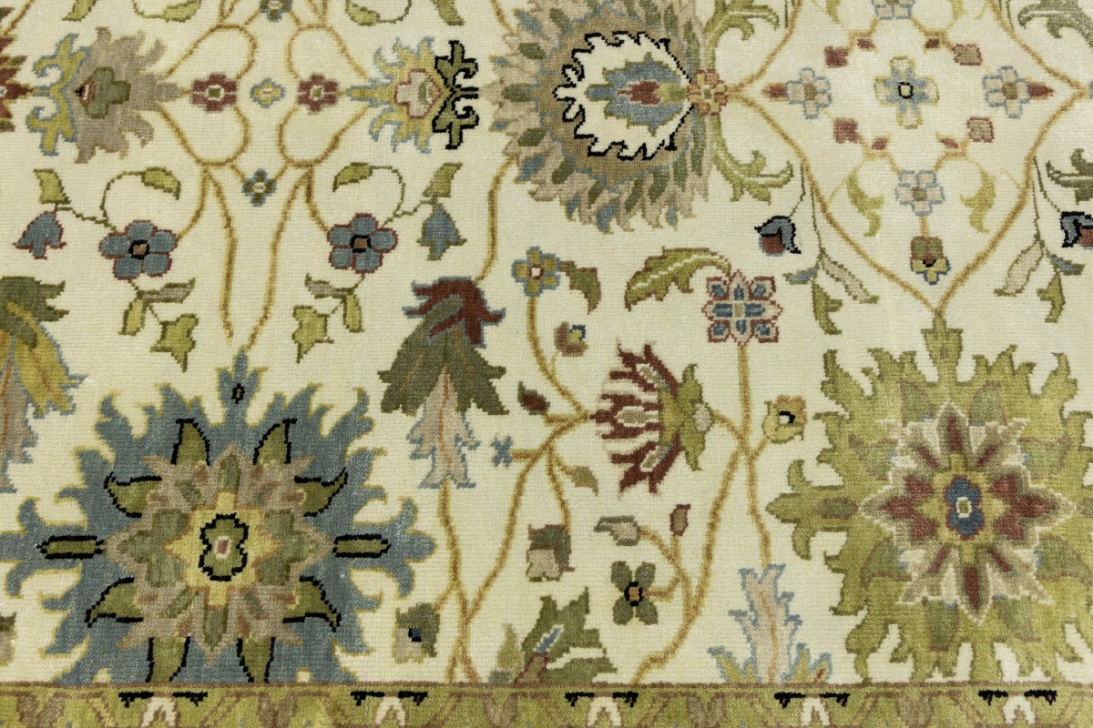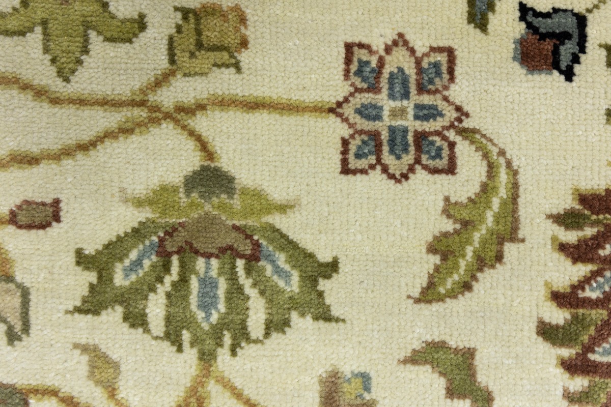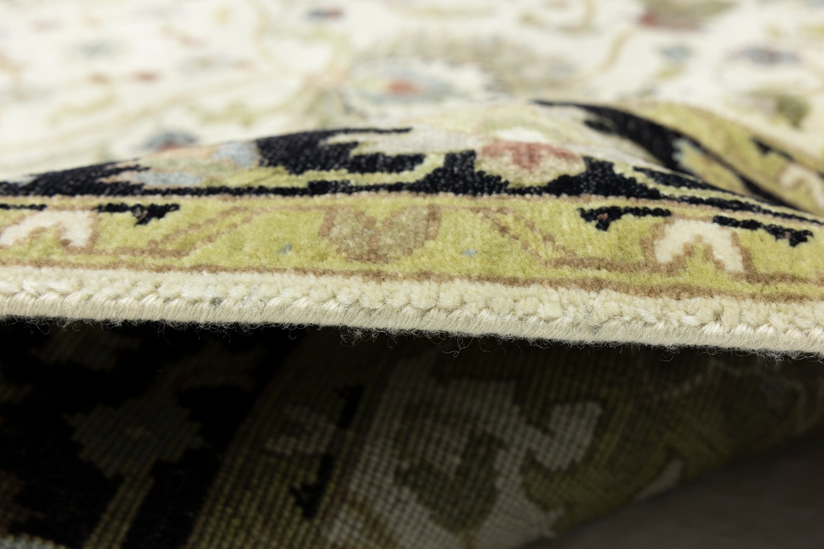 This genuine 6X9 cream new Oriental rug was made by the hands of gifted weavers inspired by a variety of spectacular artistic designs, to recreate the aged look of the original piece with a richness of color and ornately patterned background field. What set this vintage style Oriental area rug from the others are the material and dye used (wool pile and cotton foundation), knot count, ancient designs, fantastic grades, and its regional historical connection: it has deep roots, from the story of the people who produced it to the meaning of the symbols and colors displayed across its canvas that have been praised for centuries. This Indian home décor carpet will be completely cozy and inviting that never will go out of style! Also, this Oriental rug would be among your most valuable treasures, it is a great investment that accrues value over time, and it will last for generations because was woven with high-quality, all-natural wool. Environmentally friendly, opulent yet affordable; this rug will give you a thorough amount of character to help define your living space with elegance and warmth that will capture the eyes and attention of your audience (homeowners, designers, decorators, family and friends). OT-8693