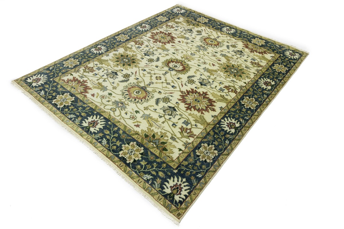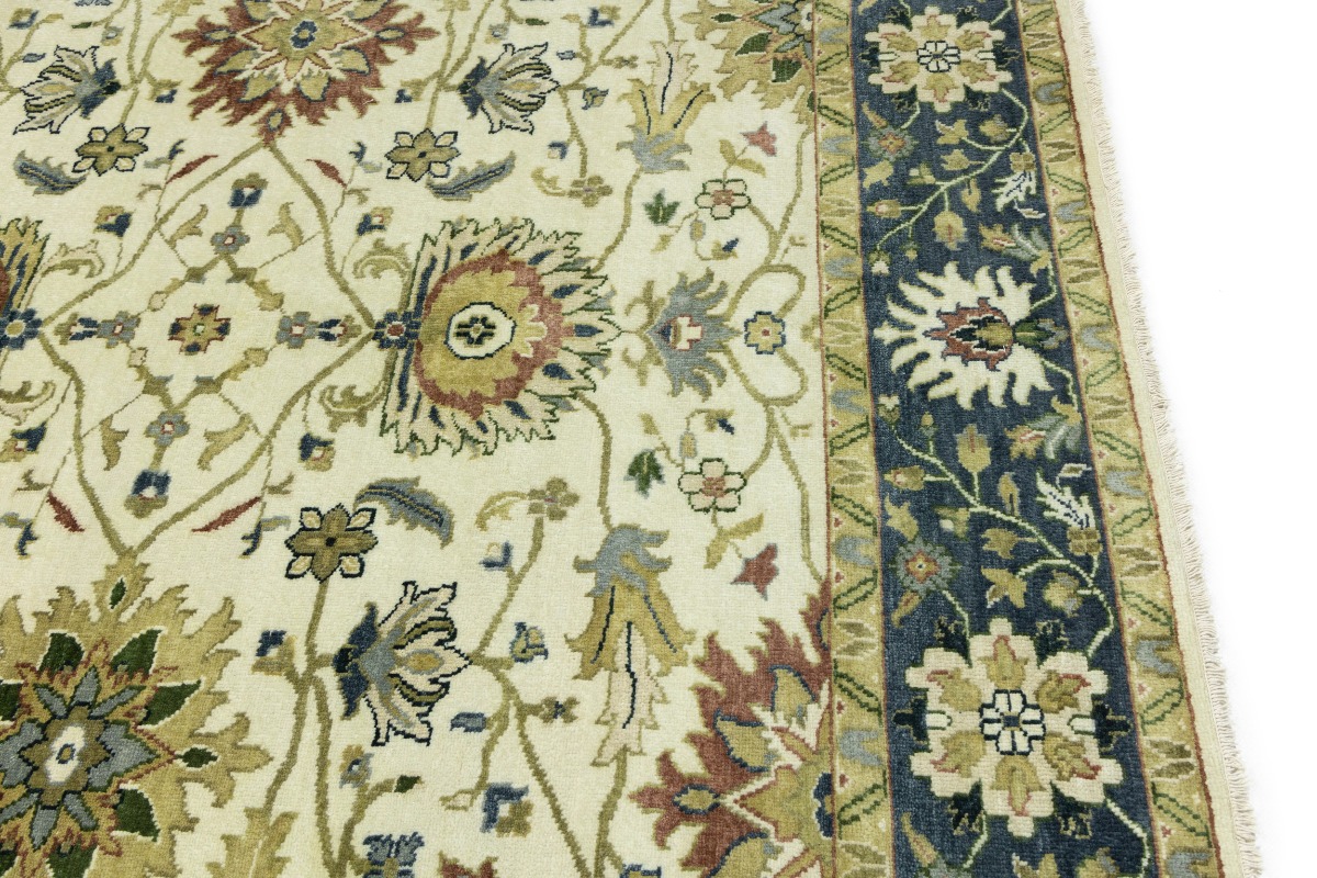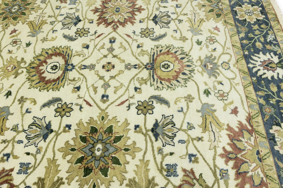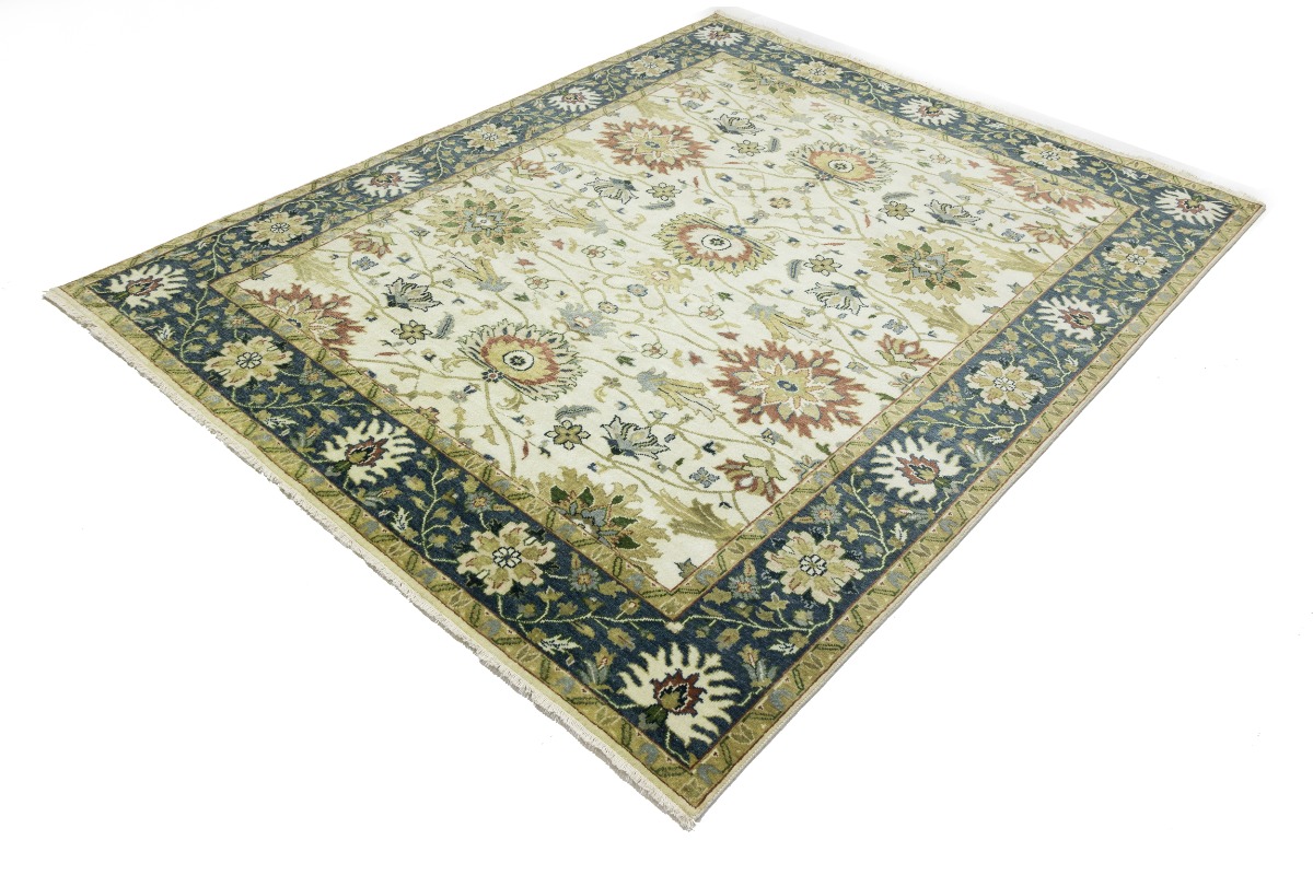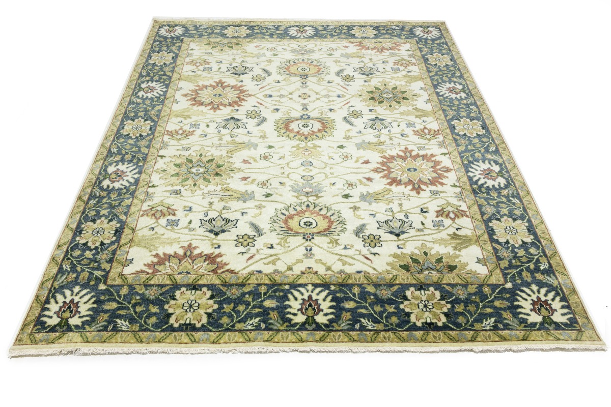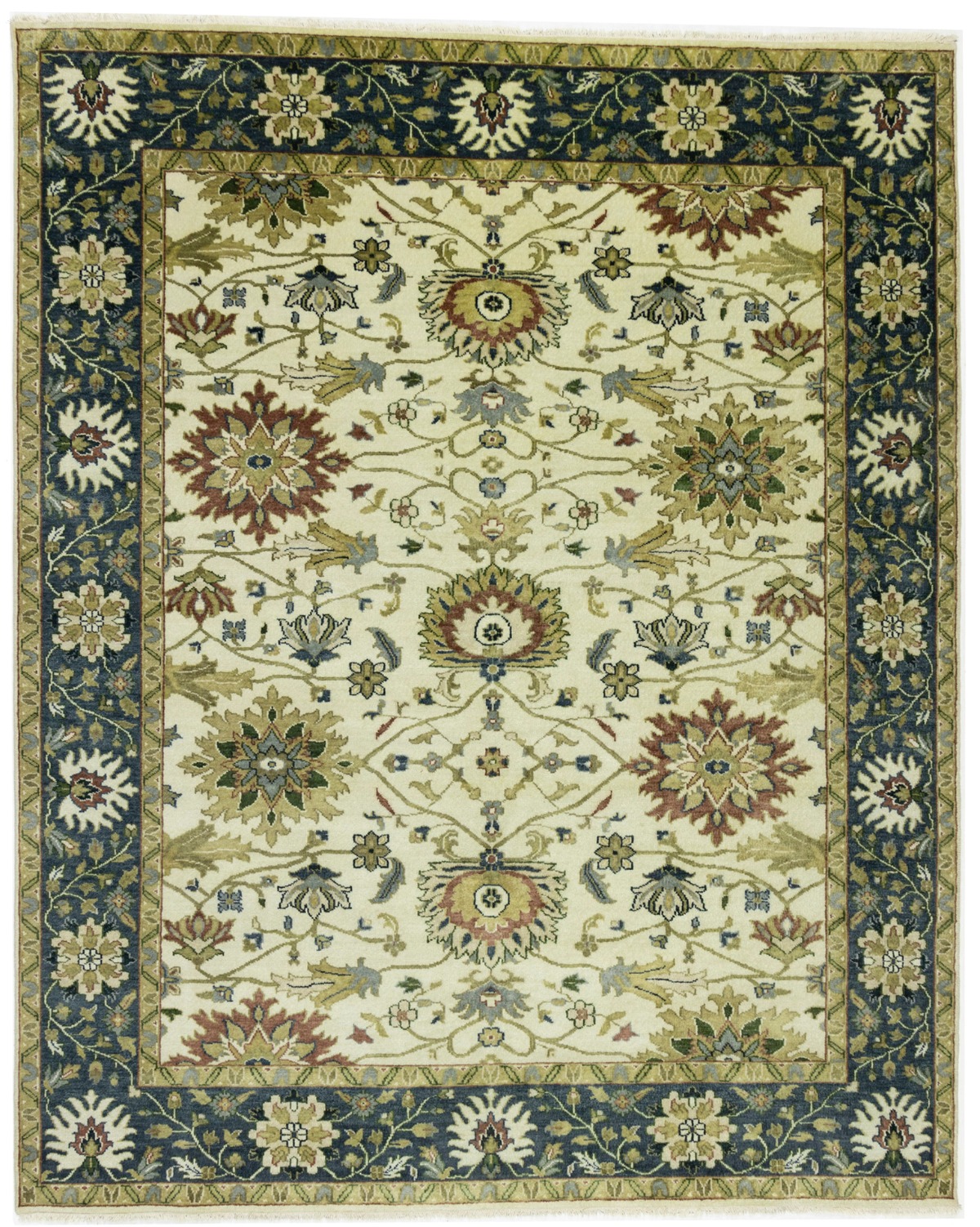 This genuine 8X10 cream new Oriental rug was made by the hands of gifted weavers inspired by a variety of spectacular artistic designs, to recreate the aged look of the original piece with a richness of color and ornately patterned background field. What set this vintage style Oriental area rug from the others are the material and dye used (wool pile and cotton foundation), knot count, ancient designs, fantastic grades, and its regional historical connection: it has deep roots, from the story of the people who produced it to the meaning of the symbols and colors displayed across its canvas that have been praised for centuries. This Indian home décor carpet will be completely cozy and inviting that never will go out of style! Also, this Oriental rug would be among your most valuable treasures, it is a great investment that accrues value over time, and it will last for generations because was woven with high-quality, all-natural wool. Environmentally friendly, opulent yet affordable; this rug will give you a thorough amount of character to help define your living space with elegance and warmth that will capture the eyes and attention of your audience (homeowners, designers, decorators, family and friends). OT-8313