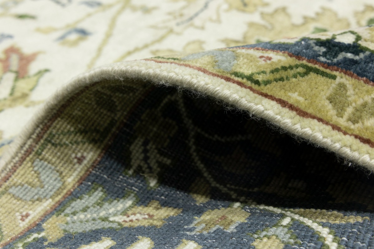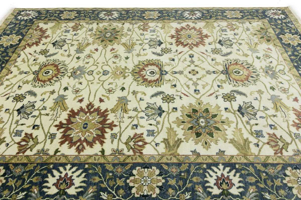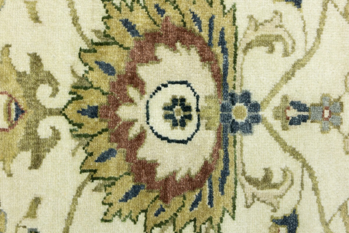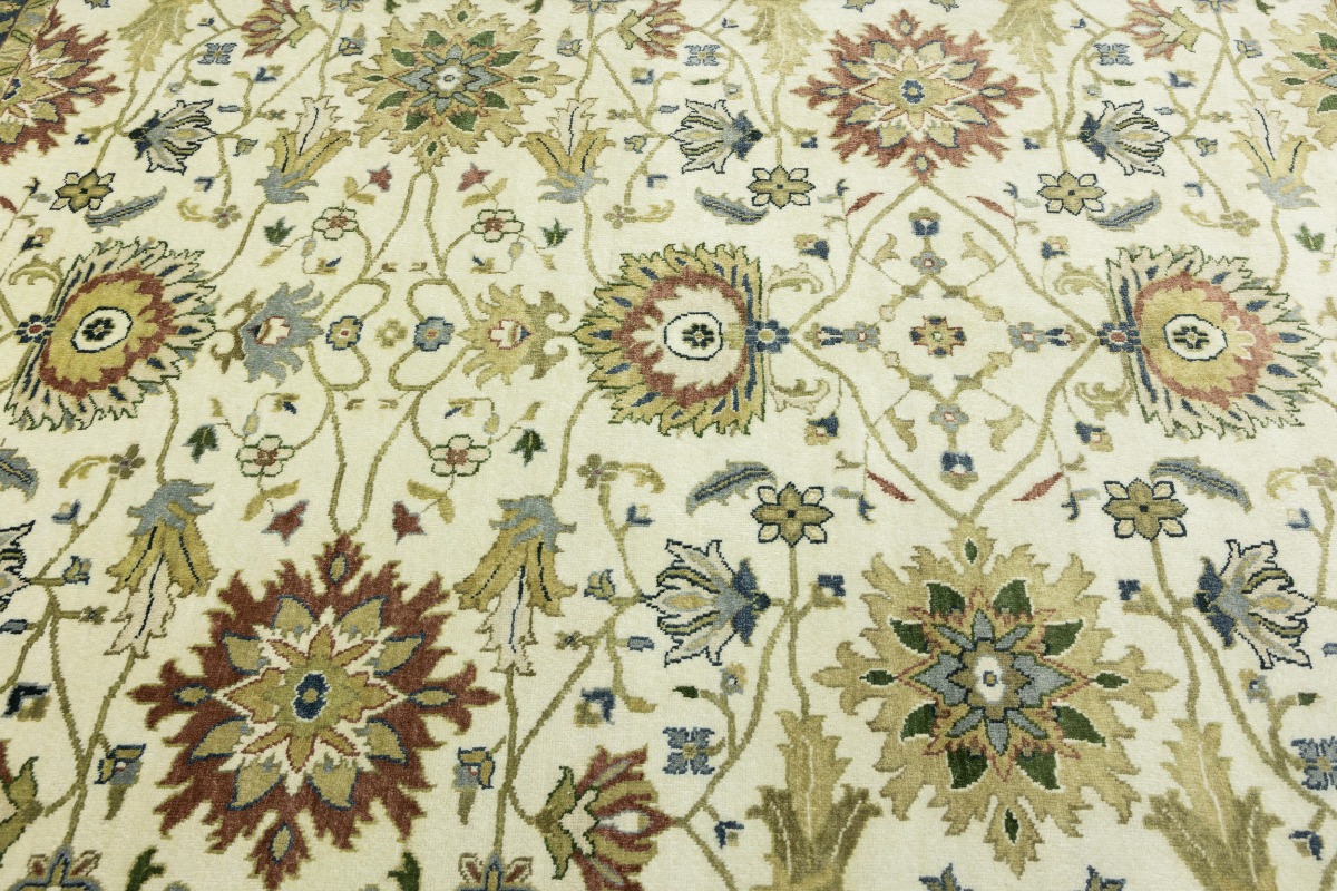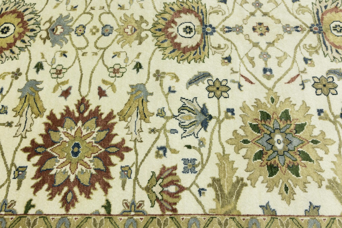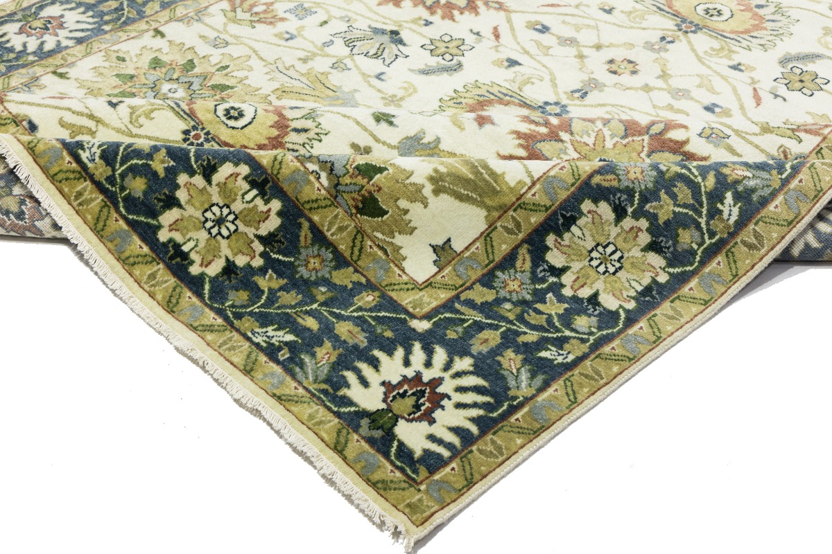 This genuine 8X10 cream new Oriental rug was made by the hands of gifted weavers inspired by a variety of spectacular artistic designs, to recreate the aged look of the original piece with a richness of color and ornately patterned background field. What set this vintage style Oriental area rug from the others are the material and dye used (wool pile and cotton foundation), knot count, ancient designs, fantastic grades, and its regional historical connection: it has deep roots, from the story of the people who produced it to the meaning of the symbols and colors displayed across its canvas that have been praised for centuries. This Indian home décor carpet will be completely cozy and inviting that never will go out of style! Also, this Oriental rug would be among your most valuable treasures, it is a great investment that accrues value over time, and it will last for generations because was woven with high-quality, all-natural wool. Environmentally friendly, opulent yet affordable; this rug will give you a thorough amount of character to help define your living space with elegance and warmth that will capture the eyes and attention of your audience (homeowners, designers, decorators, family and friends). OT-8313