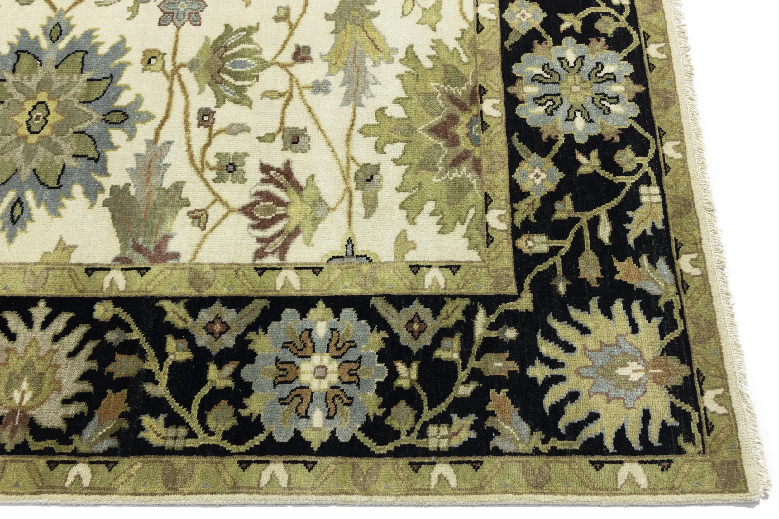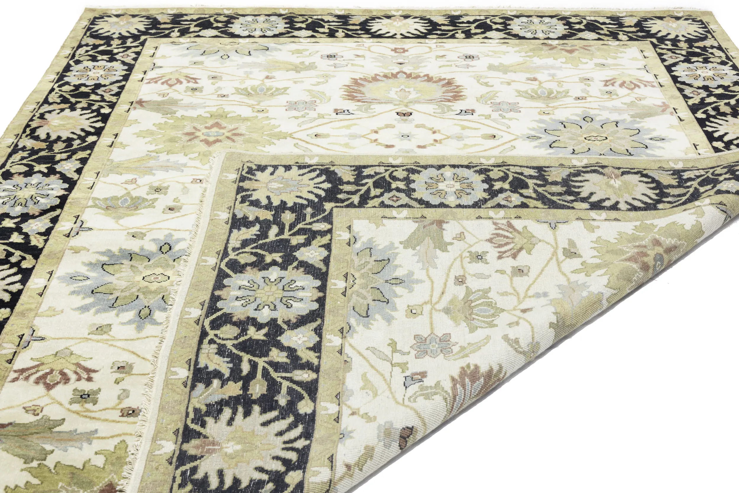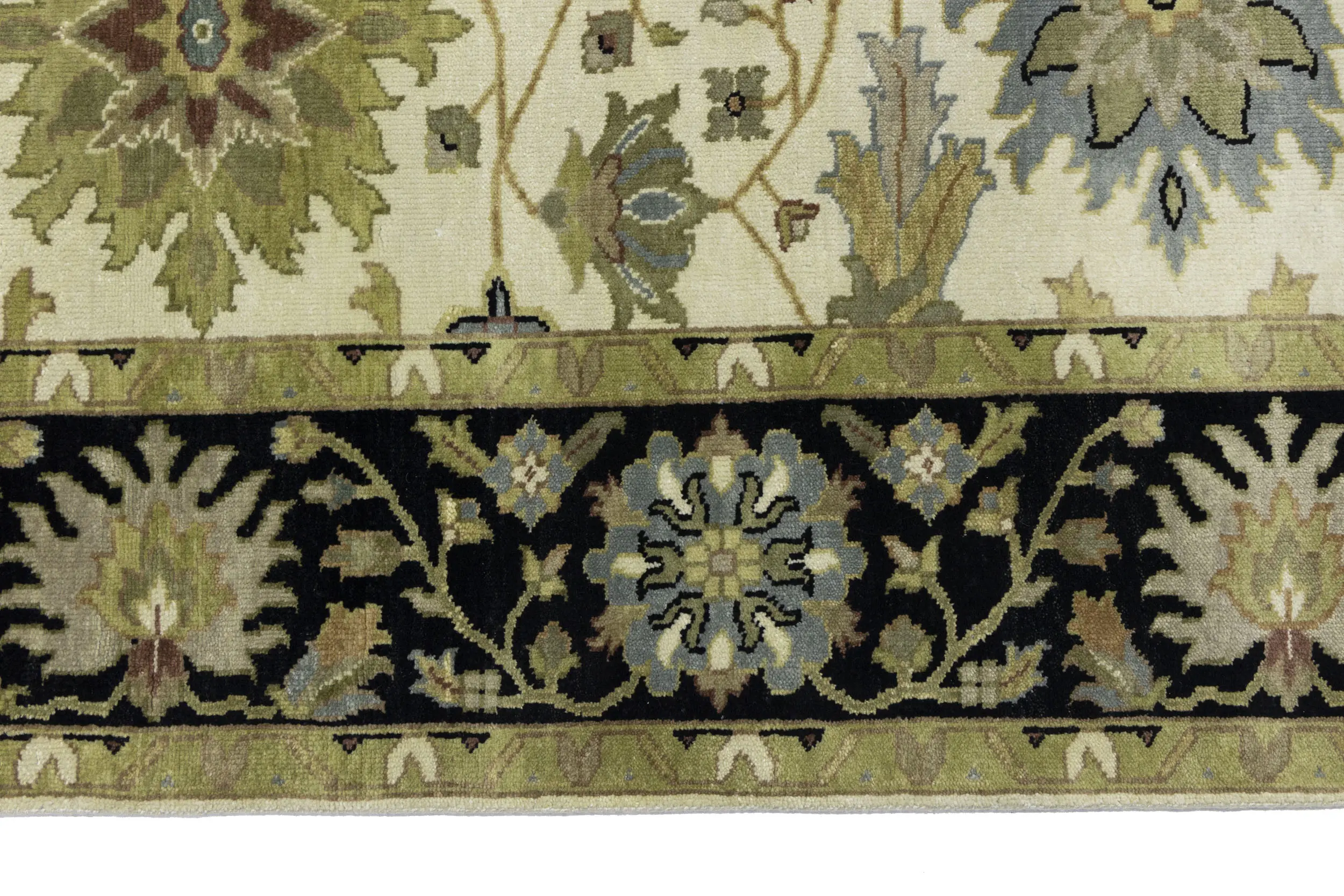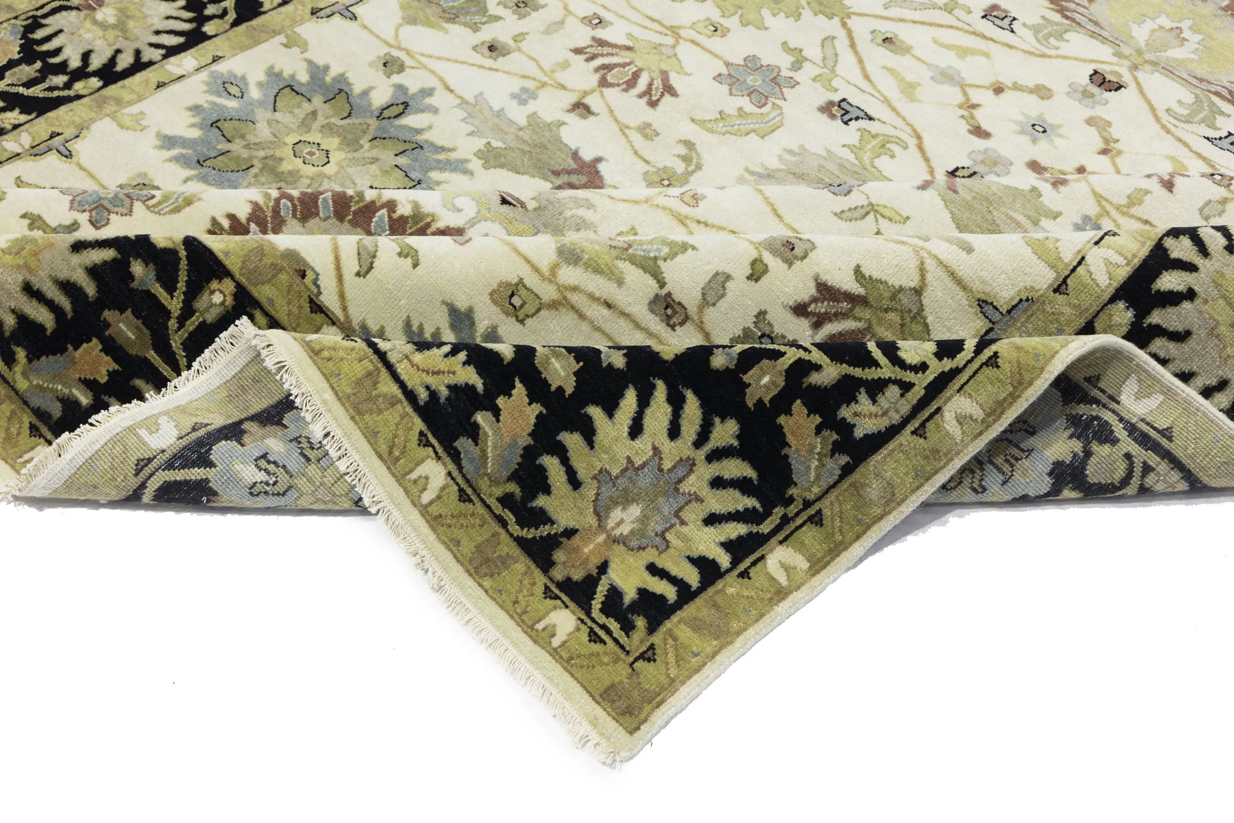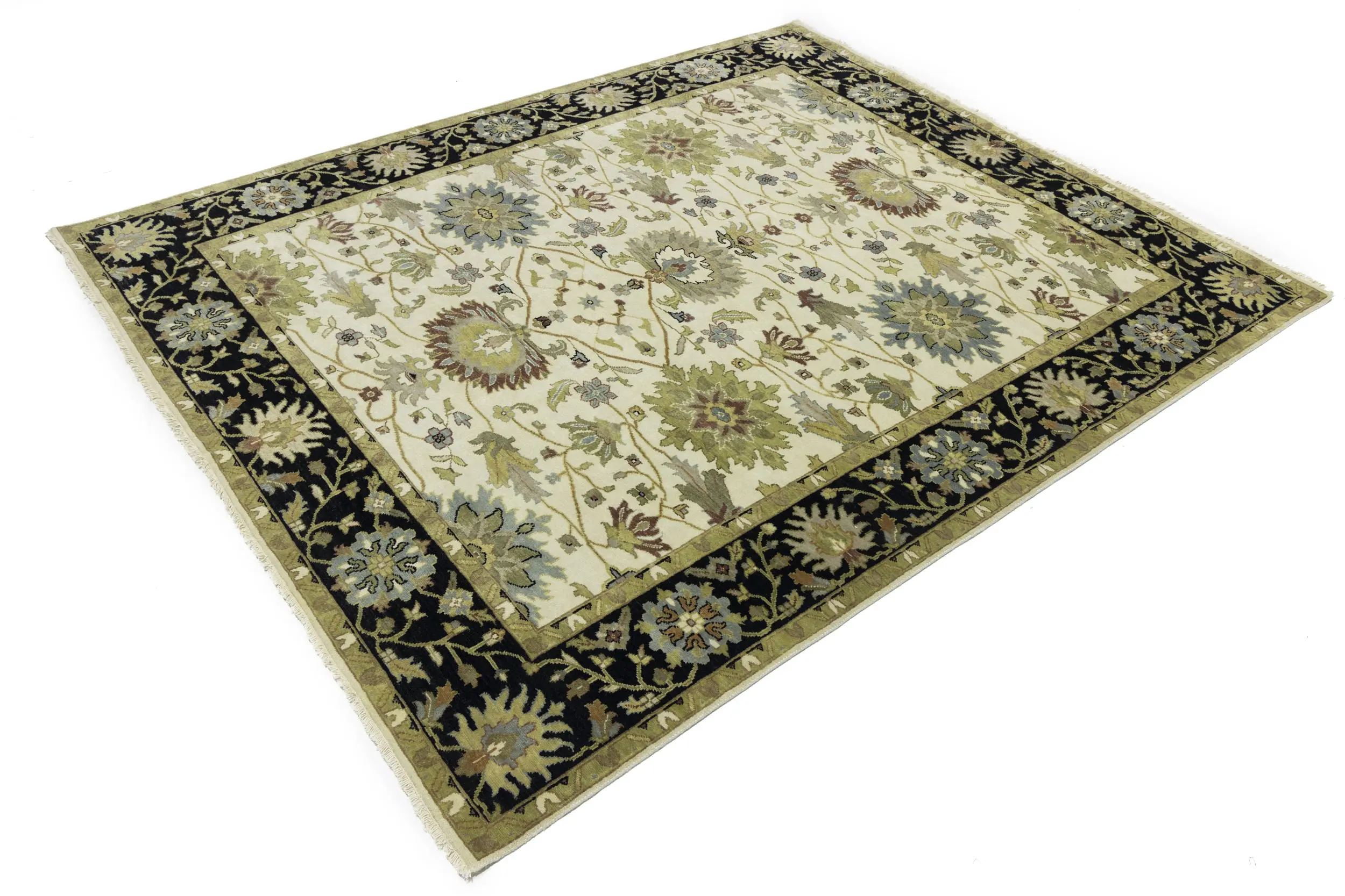 This genuine 8X10 cream new Oriental rug was made by the hands of gifted weavers inspired by a variety of spectacular artistic designs, to recreate the aged look of the original piece with a richness of color and ornately patterned background field. What set this vintage style Oriental area rug from the others are the material and dye used (wool pile and cotton foundation), knot count, ancient designs, fantastic grades, and its regional historical connection: it has deep roots, from the story of the people who produced it to the meaning of the symbols and colors displayed across its canvas that have been praised for centuries. This Indian home décor carpet will be completely cozy and inviting that never will go out of style! Also, this Oriental rug would be among your most valuable treasures, it is a great investment that accrues value over time, and it will last for generations because was woven with high-quality, all-natural wool. Environmentally friendly, opulent yet affordable; this rug will give you a thorough amount of character to help define your living space with elegance and warmth that will capture the eyes and attention of your audience (homeowners, designers, decorators, family and friends). OT-9048