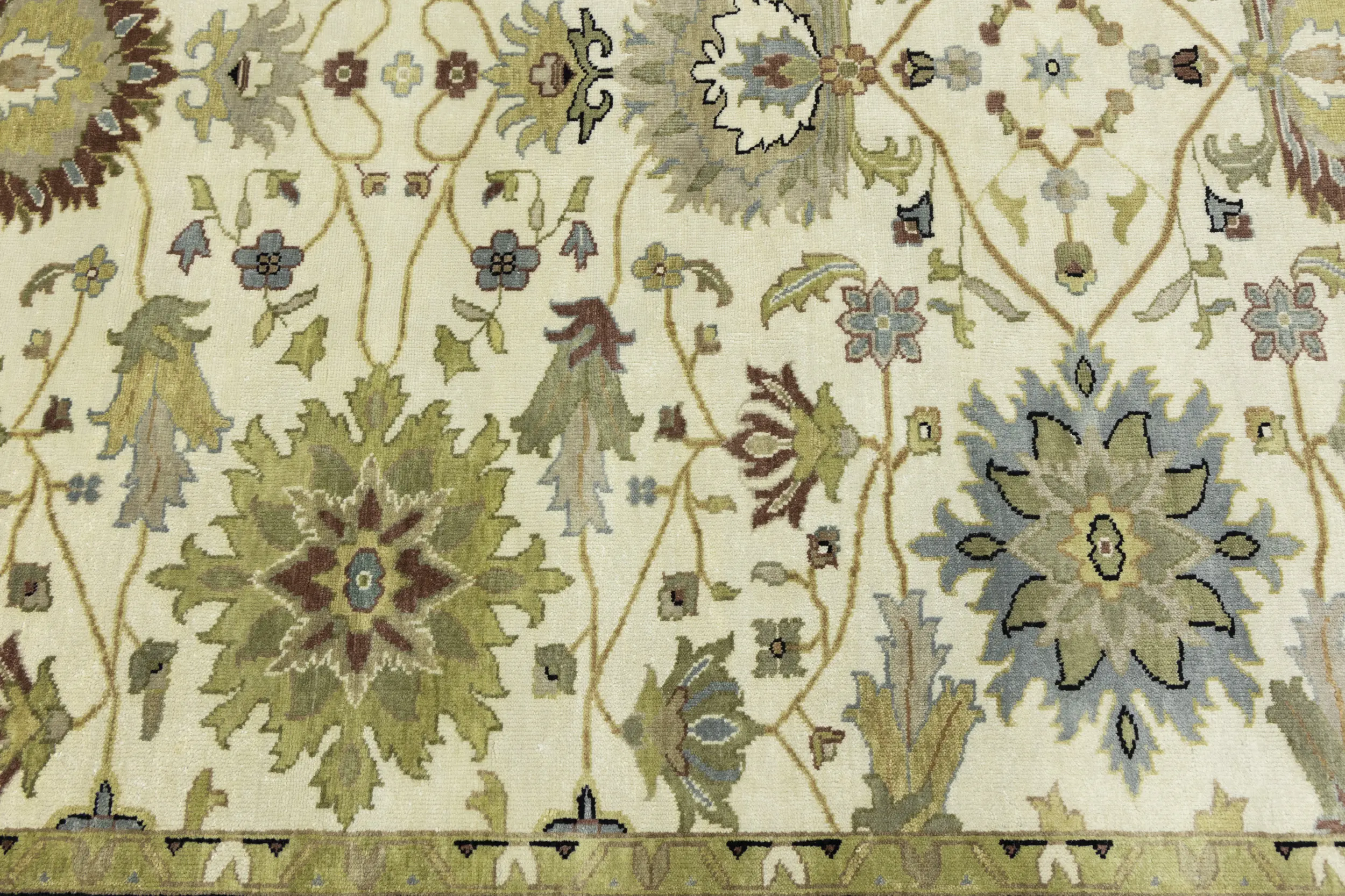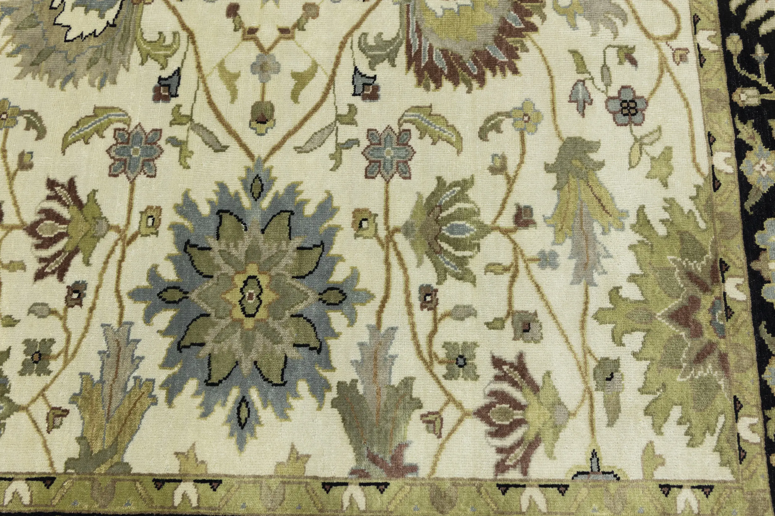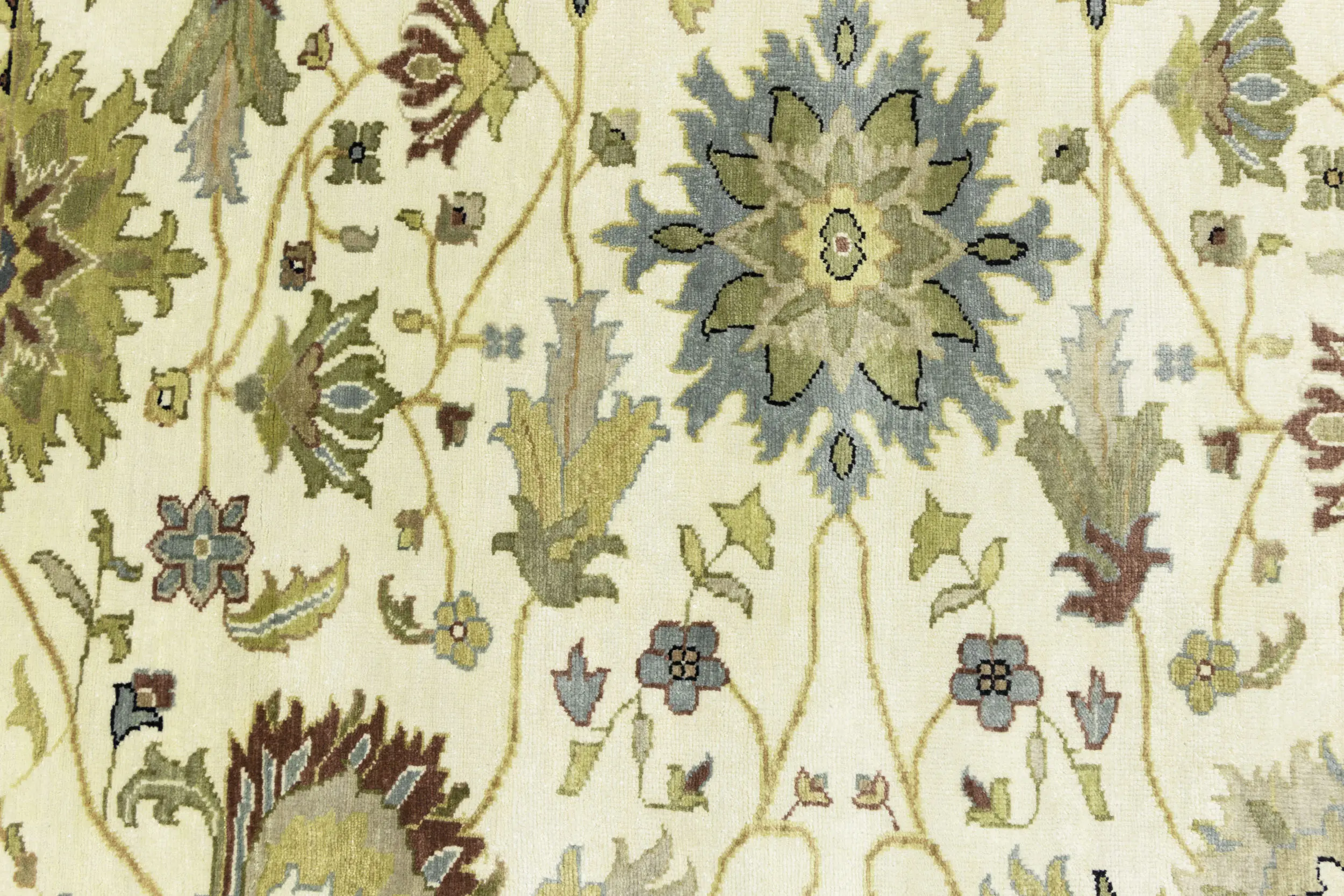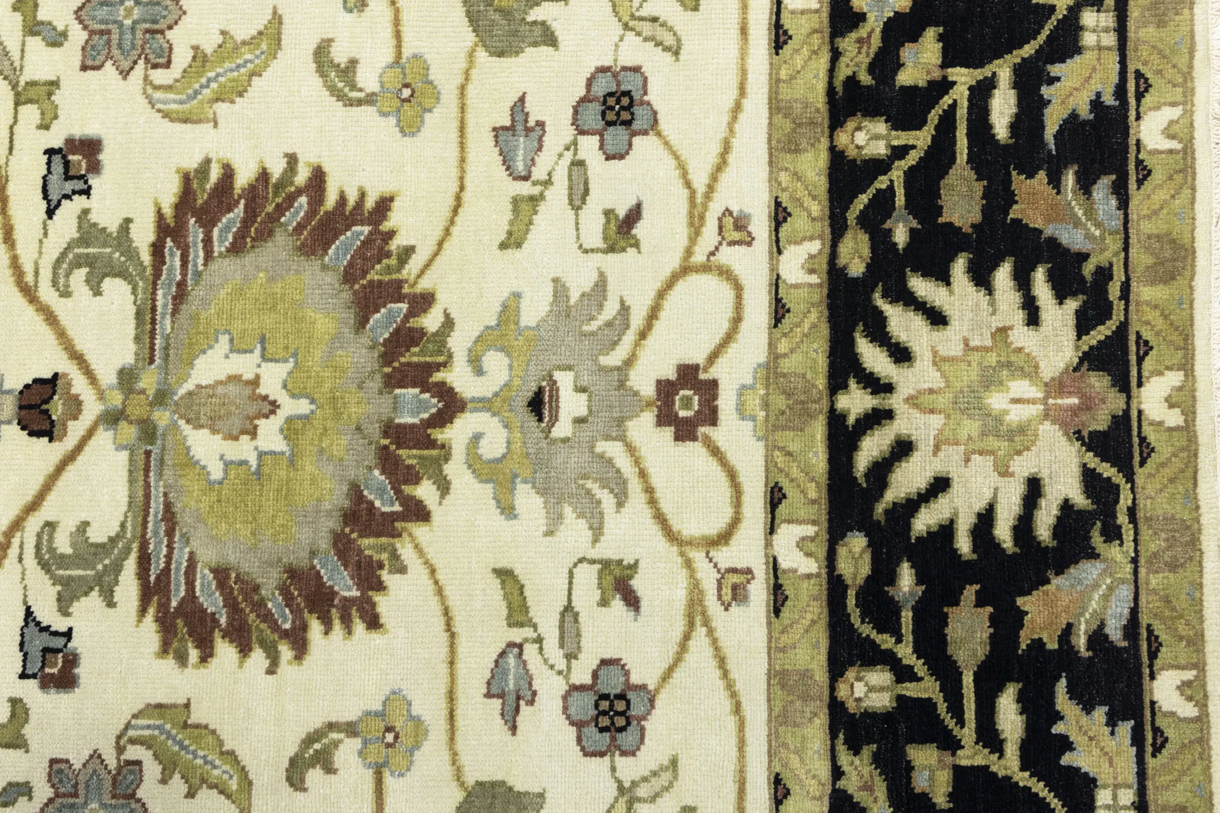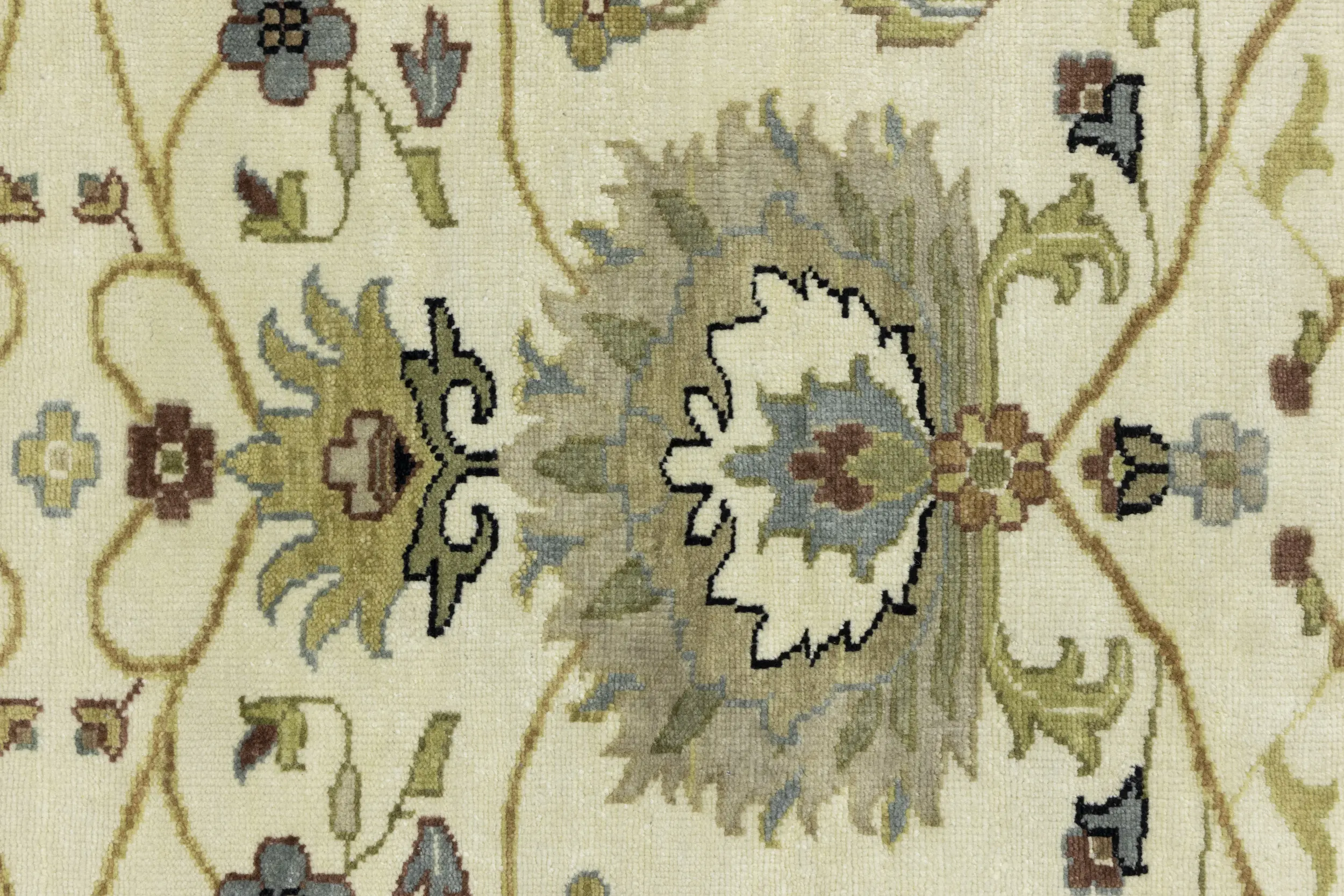 This genuine 8X10 cream new Oriental rug was made by the hands of gifted weavers inspired by a variety of spectacular artistic designs, to recreate the aged look of the original piece with a richness of color and ornately patterned background field. What set this vintage style Oriental area rug from the others are the material and dye used (wool pile and cotton foundation), knot count, ancient designs, fantastic grades, and its regional historical connection: it has deep roots, from the story of the people who produced it to the meaning of the symbols and colors displayed across its canvas that have been praised for centuries. This Indian home décor carpet will be completely cozy and inviting that never will go out of style! Also, this Oriental rug would be among your most valuable treasures, it is a great investment that accrues value over time, and it will last for generations because was woven with high-quality, all-natural wool. Environmentally friendly, opulent yet affordable; this rug will give you a thorough amount of character to help define your living space with elegance and warmth that will capture the eyes and attention of your audience (homeowners, designers, decorators, family and friends). OT-9048