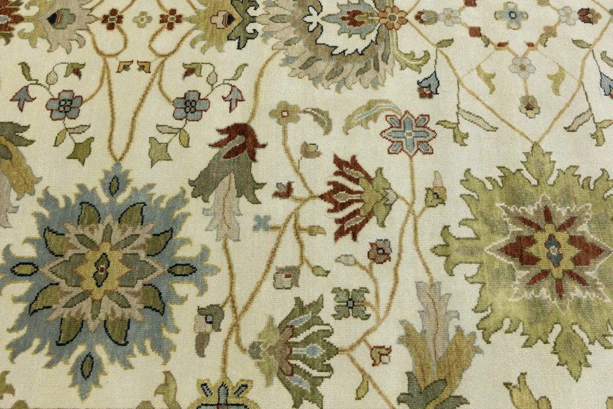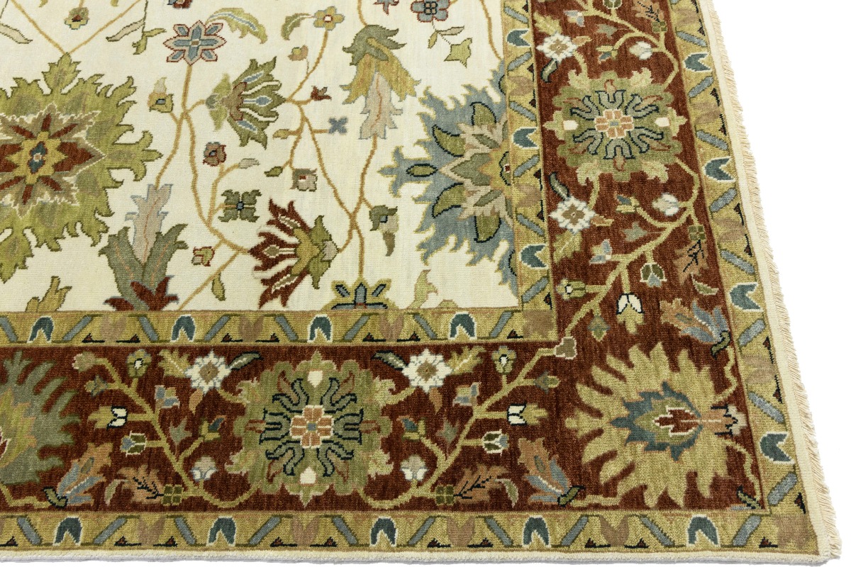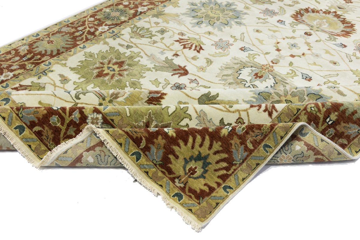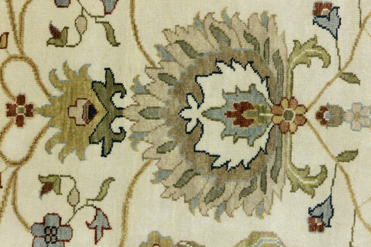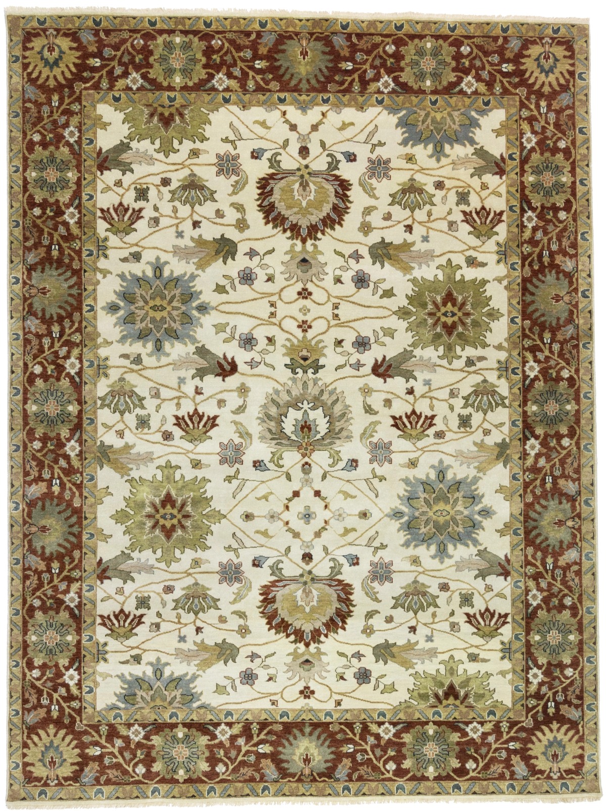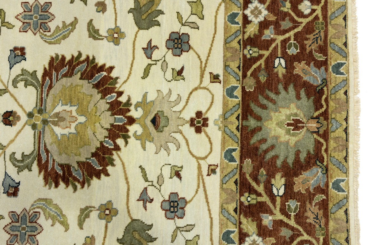 This genuine 9X12 cream new Oriental rug was made by the hands of gifted weavers inspired by a variety of spectacular artistic designs, to recreate the aged look of the original piece with a richness of color and ornately patterned background field. What set this vintage style Oriental area rug from the others are the material and dye used (wool pile and cotton foundation), knot count, ancient designs, fantastic grades, and its regional historical connection: it has deep roots, from the story of the people who produced it to the meaning of the symbols and colors displayed across its canvas that have been praised for centuries. This Indian home décor carpet will be completely cozy and inviting that never will go out of style! Also, this Oriental rug would be among your most valuable treasures, it is a great investment that accrues value over time, and it will last for generations because was woven with high-quality, all-natural wool. Environmentally friendly, opulent yet affordable; this rug will give you a thorough amount of character to help define your living space with elegance and warmth that will capture the eyes and attention of your audience (homeowners, designers, decorators, family and friends). OT-9073