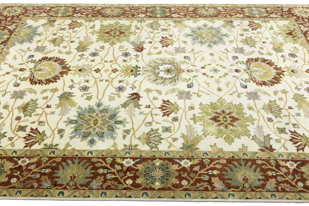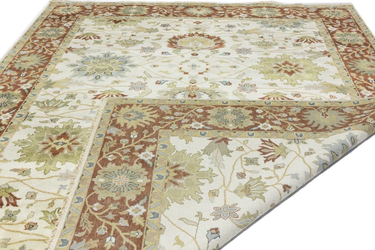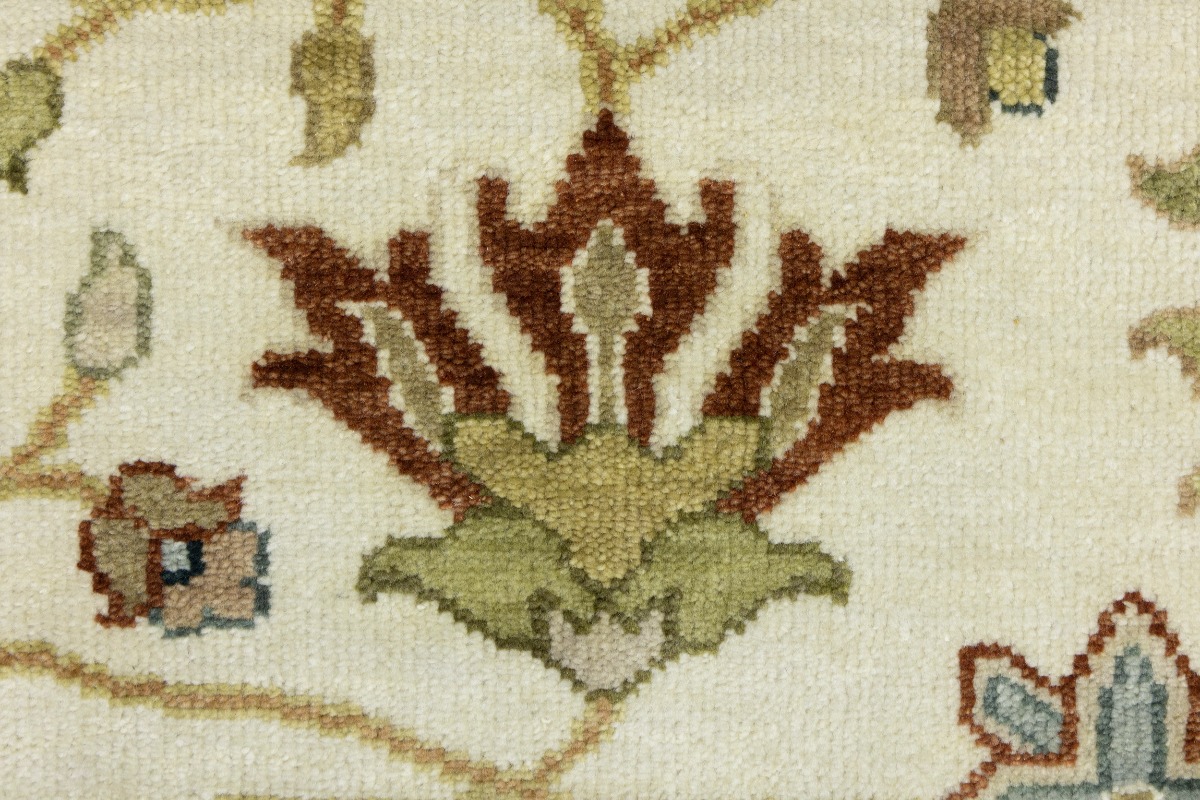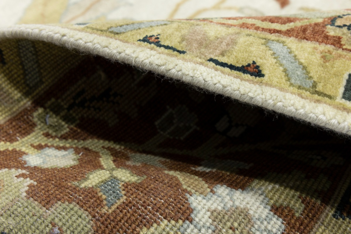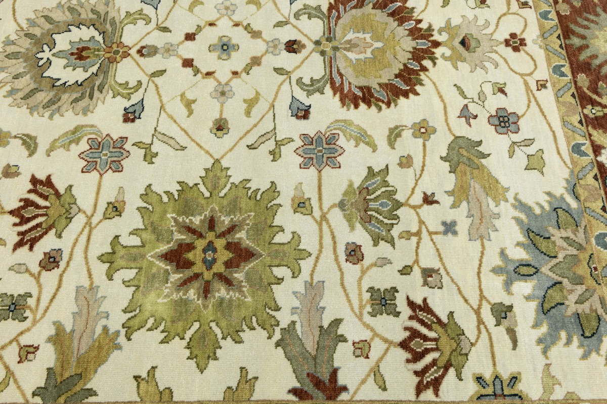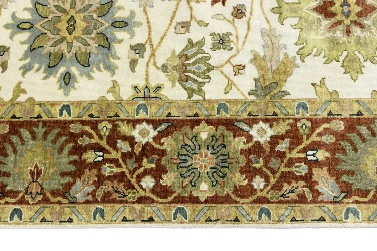 This genuine 9X12 cream new Oriental rug was made by the hands of gifted weavers inspired by a variety of spectacular artistic designs, to recreate the aged look of the original piece with a richness of color and ornately patterned background field. What set this vintage style Oriental area rug from the others are the material and dye used (wool pile and cotton foundation), knot count, ancient designs, fantastic grades, and its regional historical connection: it has deep roots, from the story of the people who produced it to the meaning of the symbols and colors displayed across its canvas that have been praised for centuries. This Indian home décor carpet will be completely cozy and inviting that never will go out of style! Also, this Oriental rug would be among your most valuable treasures, it is a great investment that accrues value over time, and it will last for generations because was woven with high-quality, all-natural wool. Environmentally friendly, opulent yet affordable; this rug will give you a thorough amount of character to help define your living space with elegance and warmth that will capture the eyes and attention of your audience (homeowners, designers, decorators, family and friends). OT-9073