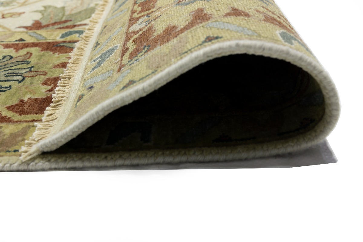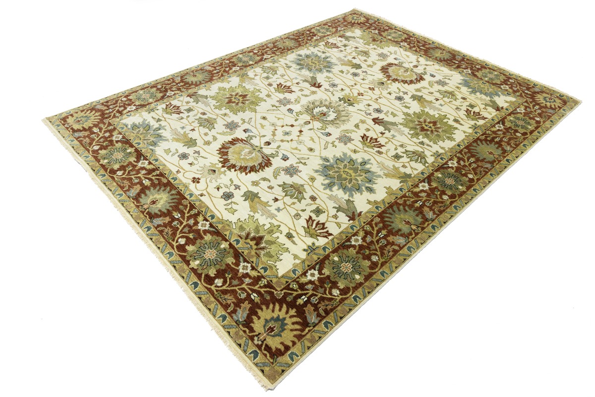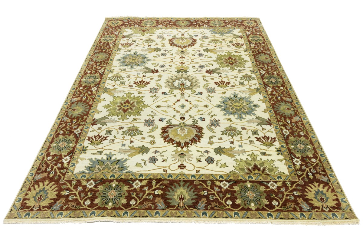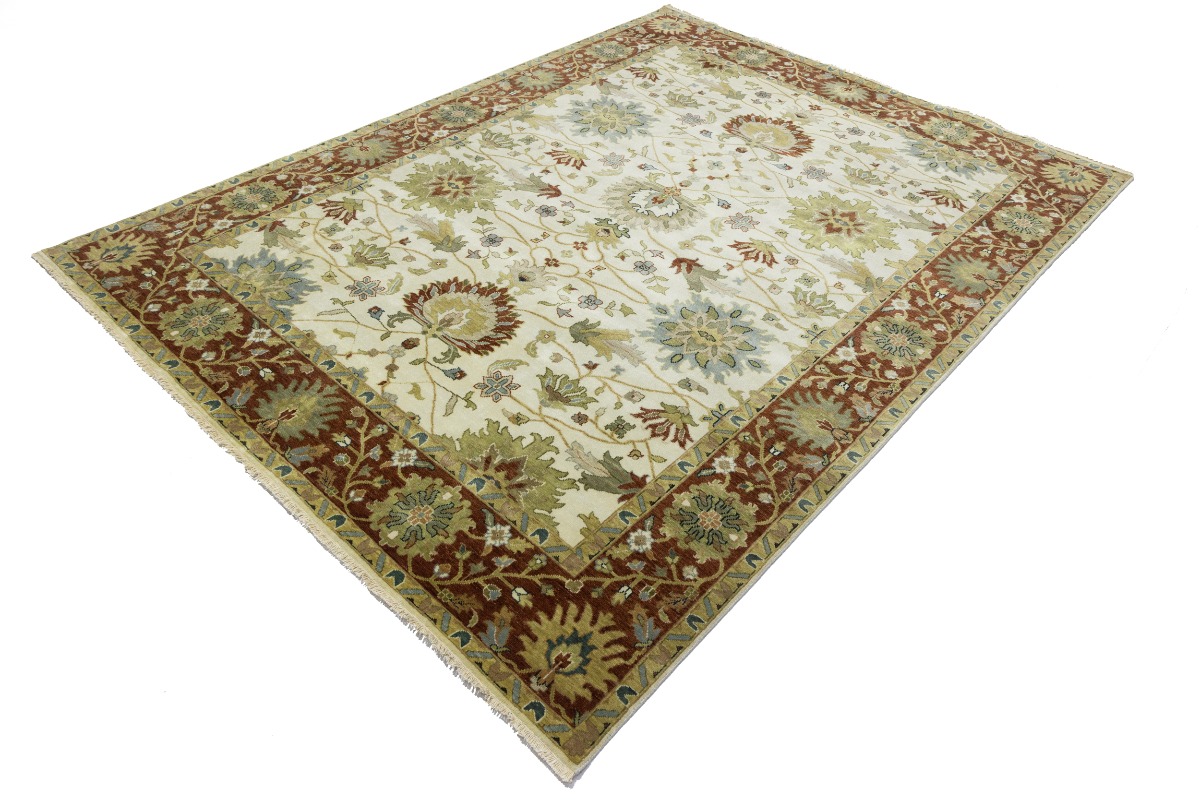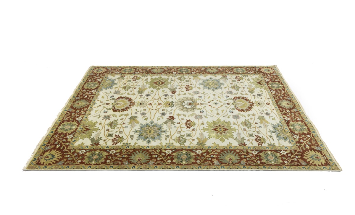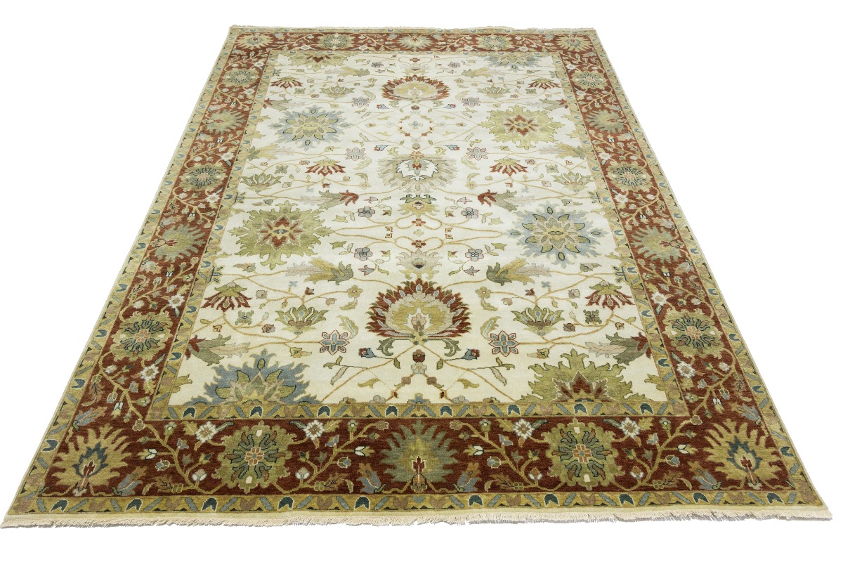 This genuine 9X12 cream new Oriental rug was made by the hands of gifted weavers inspired by a variety of spectacular artistic designs, to recreate the aged look of the original piece with a richness of color and ornately patterned background field. What set this vintage style Oriental area rug from the others are the material and dye used (wool pile and cotton foundation), knot count, ancient designs, fantastic grades, and its regional historical connection: it has deep roots, from the story of the people who produced it to the meaning of the symbols and colors displayed across its canvas that have been praised for centuries. This Indian home décor carpet will be completely cozy and inviting that never will go out of style! Also, this Oriental rug would be among your most valuable treasures, it is a great investment that accrues value over time, and it will last for generations because was woven with high-quality, all-natural wool. Environmentally friendly, opulent yet affordable; this rug will give you a thorough amount of character to help define your living space with elegance and warmth that will capture the eyes and attention of your audience (homeowners, designers, decorators, family and friends). OT-9073